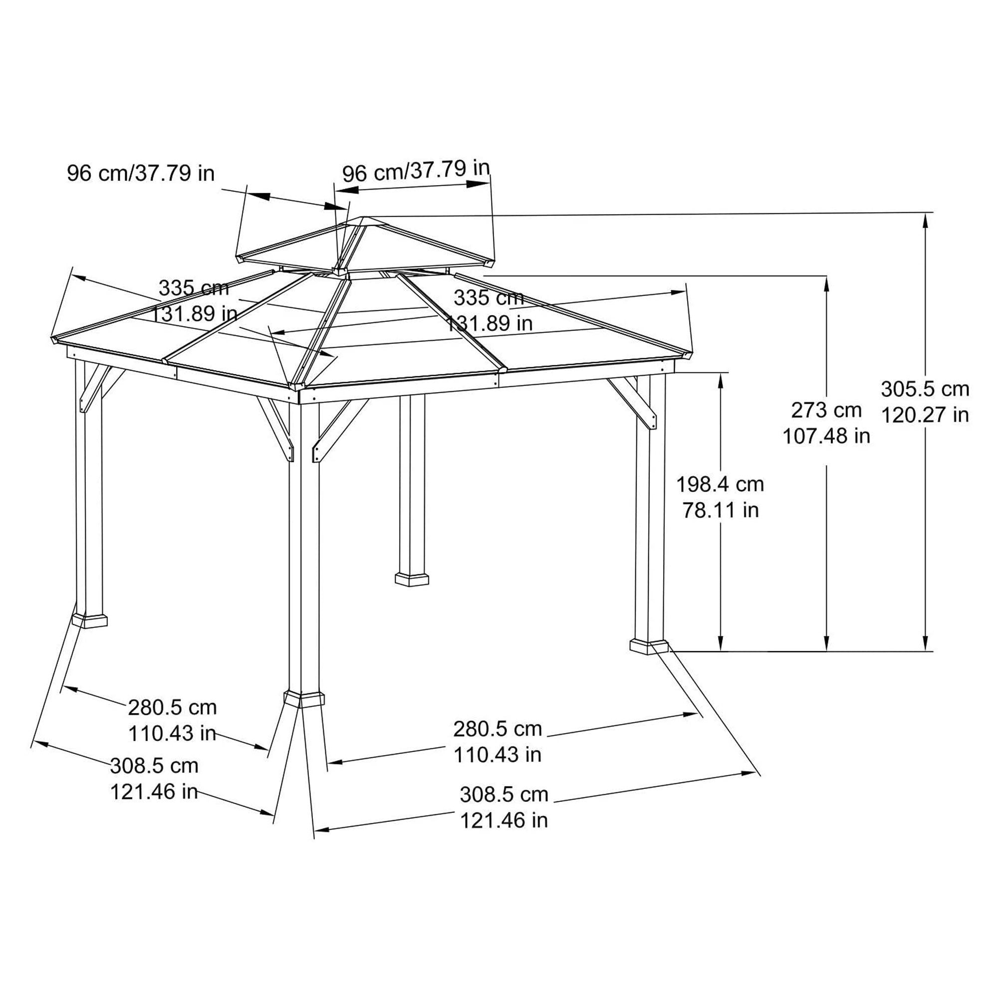Gazebo con struttura in cedro da 10 piedi x 10 piedi e tetto a padiglione in acciaio a 2 livelli