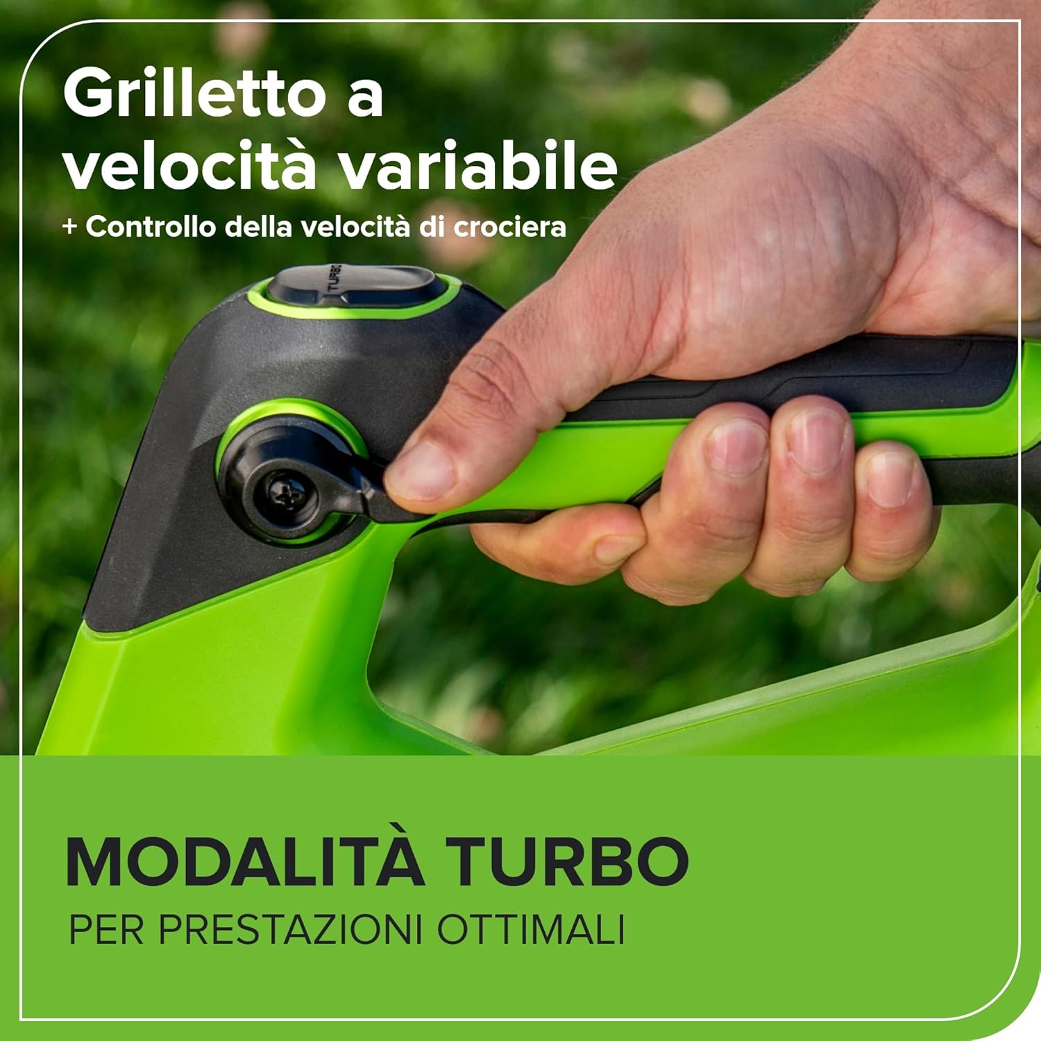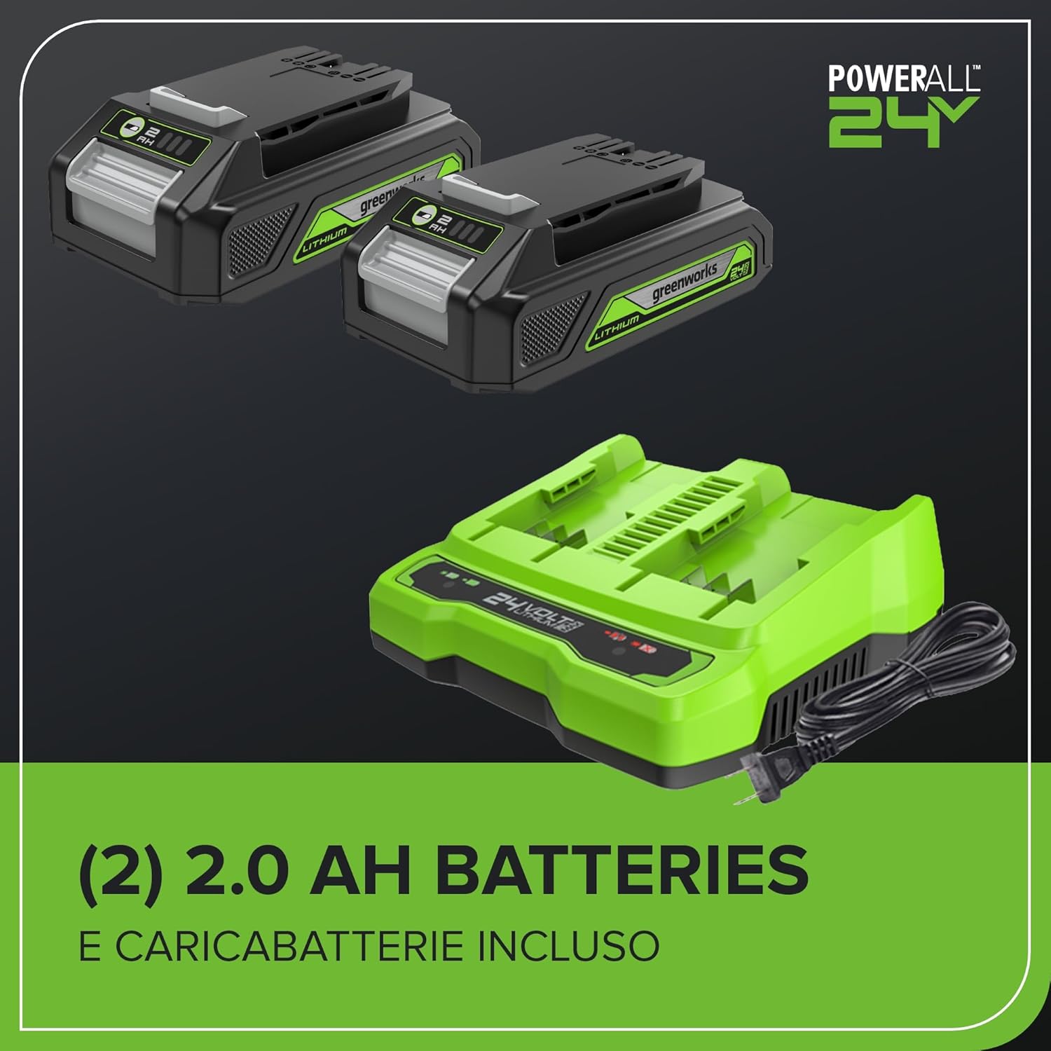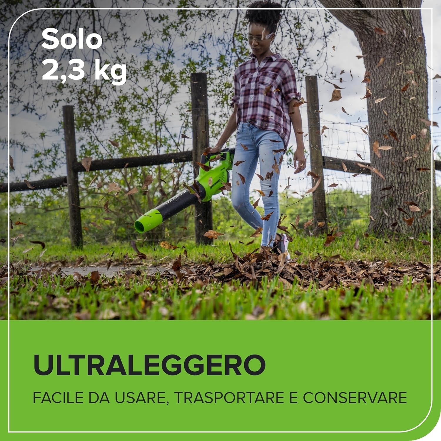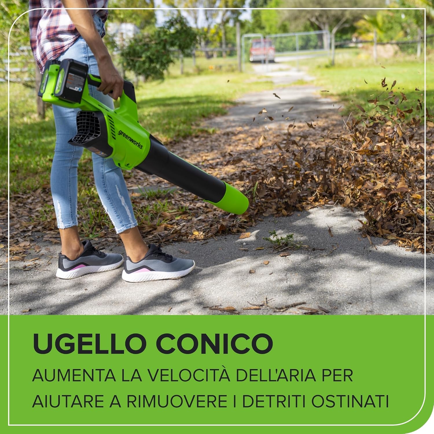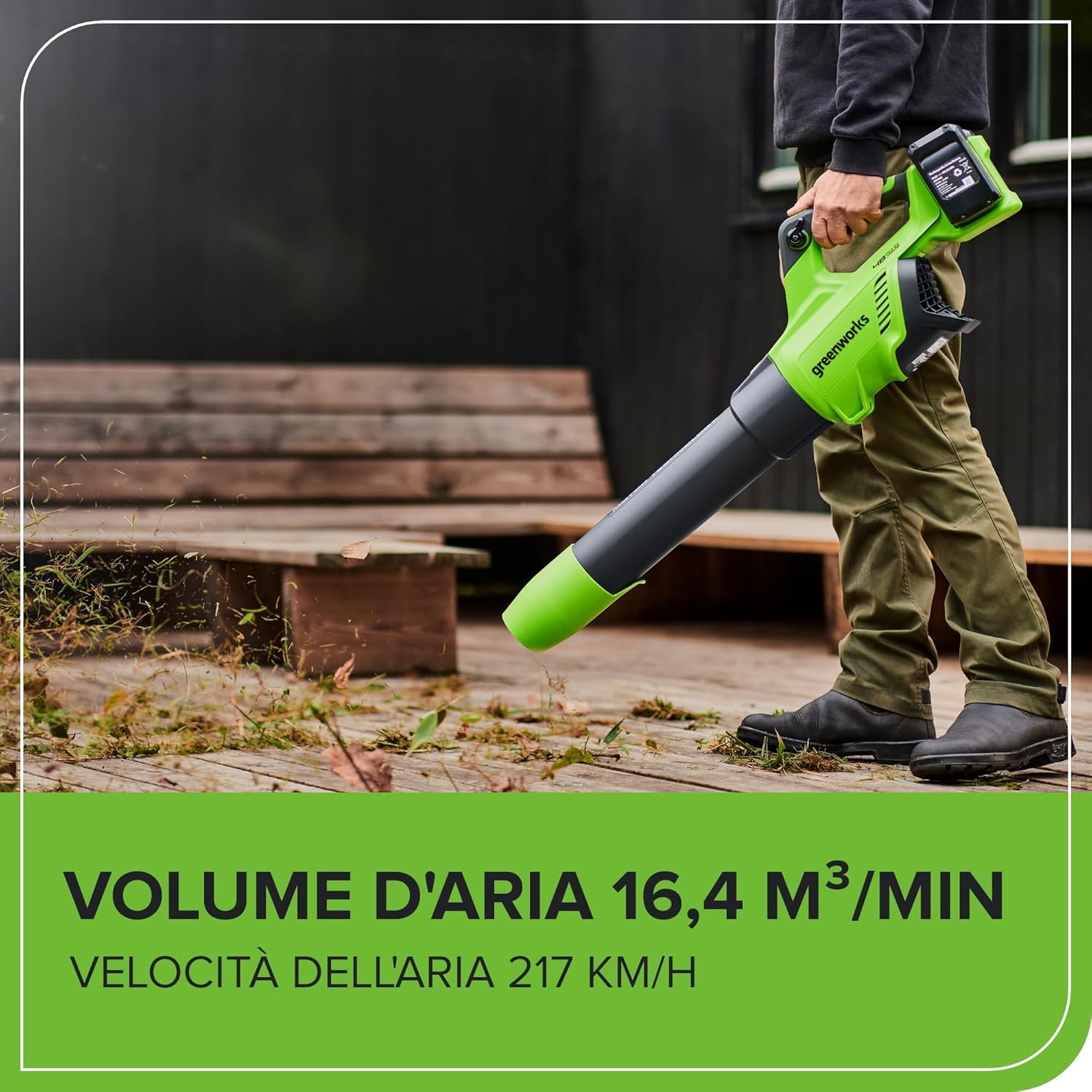 Greenworks 48V(2x24V) Battery Axial Leaf Blower with Brushless Motor, Turbo Function, 217 km/h, 16.4m³/min, with 2 24V 2Ah Batteries and Charger, 3 Year Warranty GD24X2ABK2X