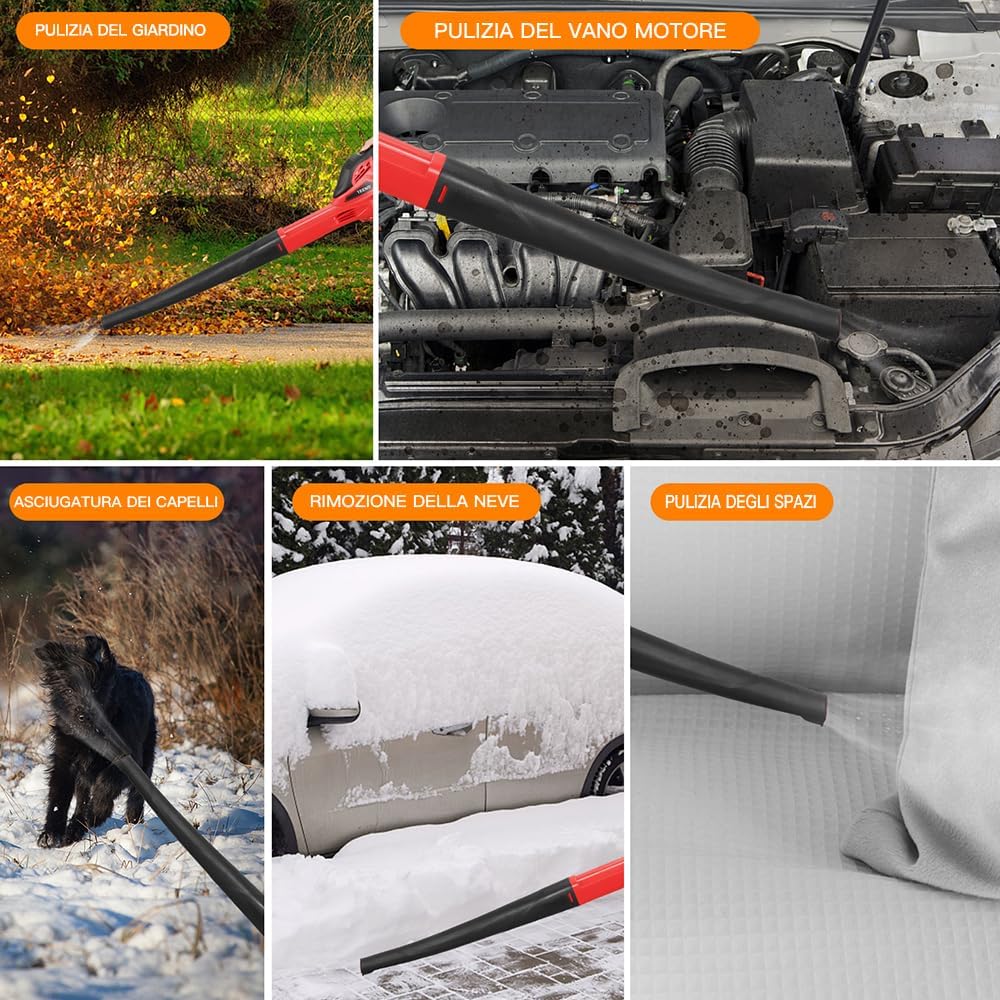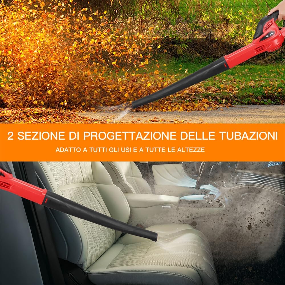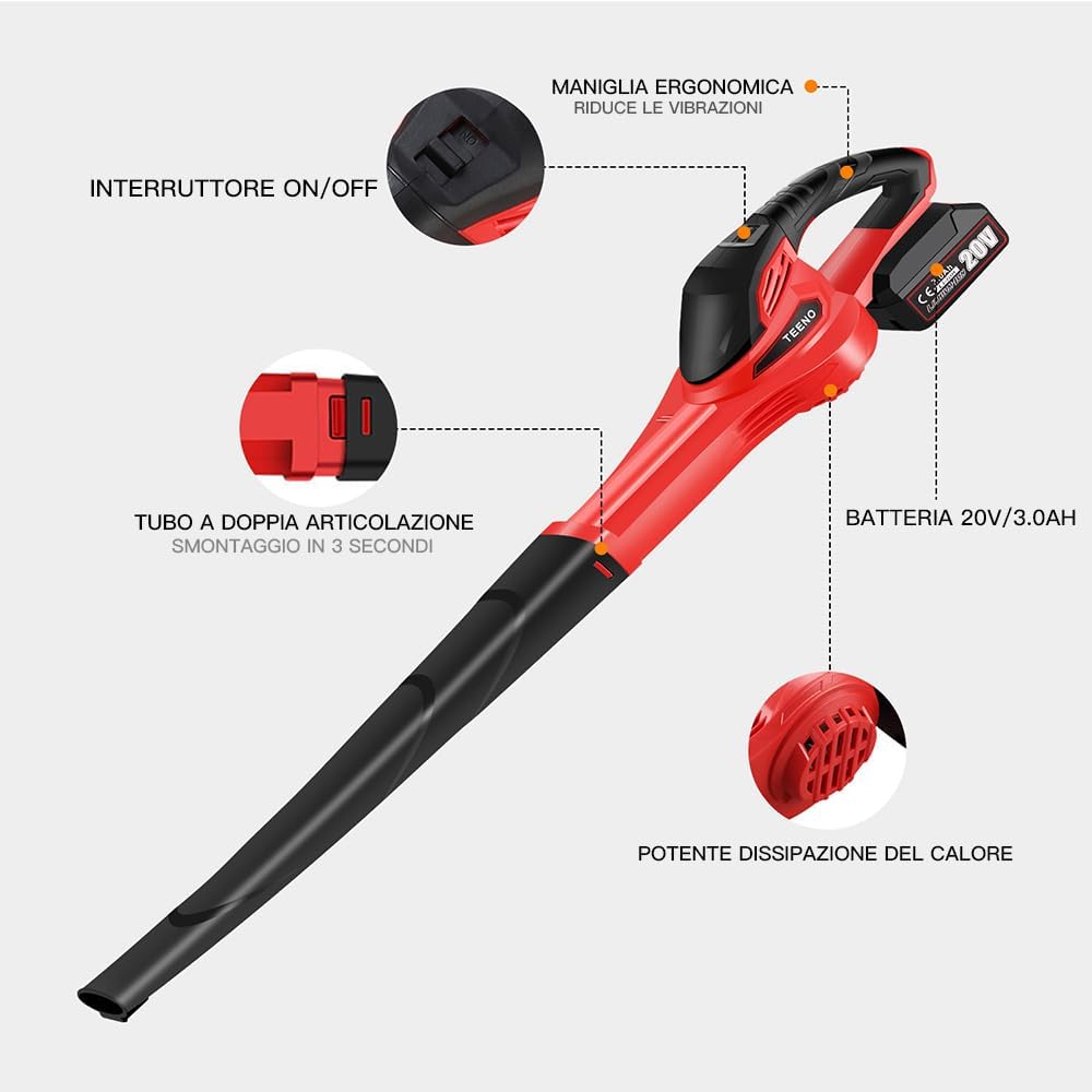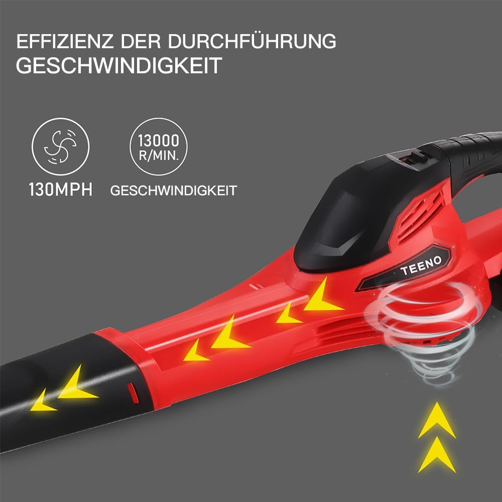 TEENO 300W Wireless Sheet Blower Tools 20 V with 3.0 Ah Battery and Charger Included | Adjustable Air Speed Up to 288 km/h | 13000 RPM | Red Design | Electric Garden Tool