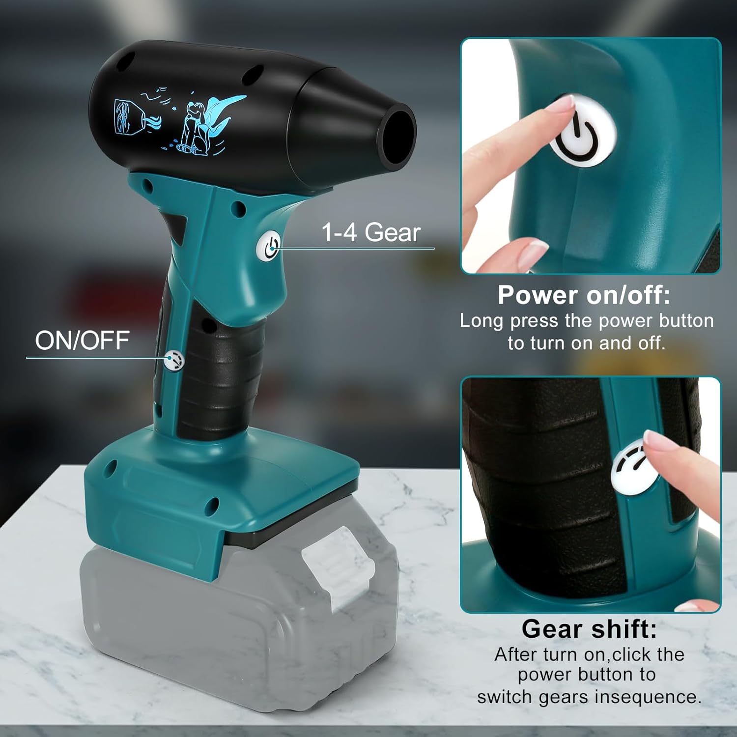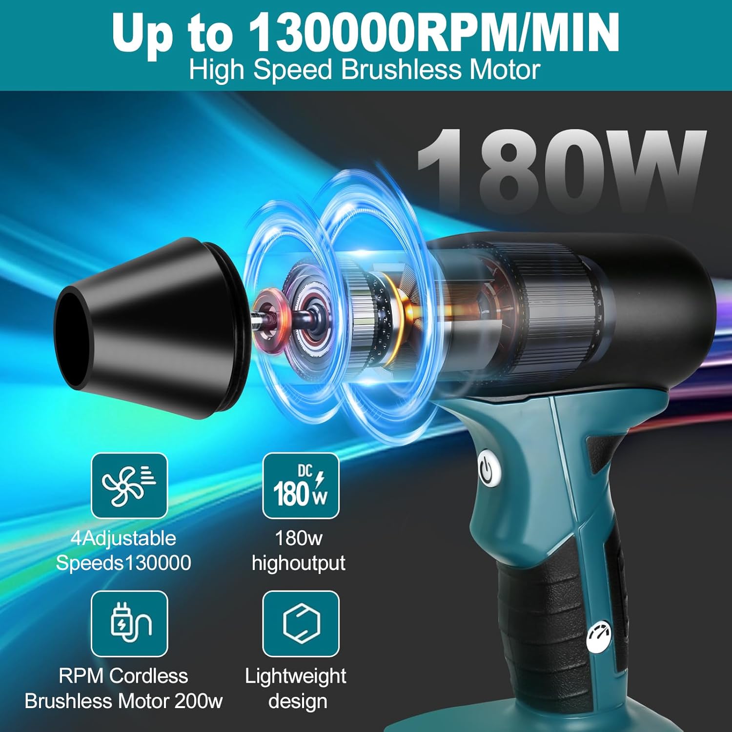 Lieberwell Mini Blower for Makita Battery 18 V, Leaf Blower 130000 RPM 180 W, Portable 4 Speed Dust Blower, Industrial Jet Dry Turbo Fan (Without Battery)