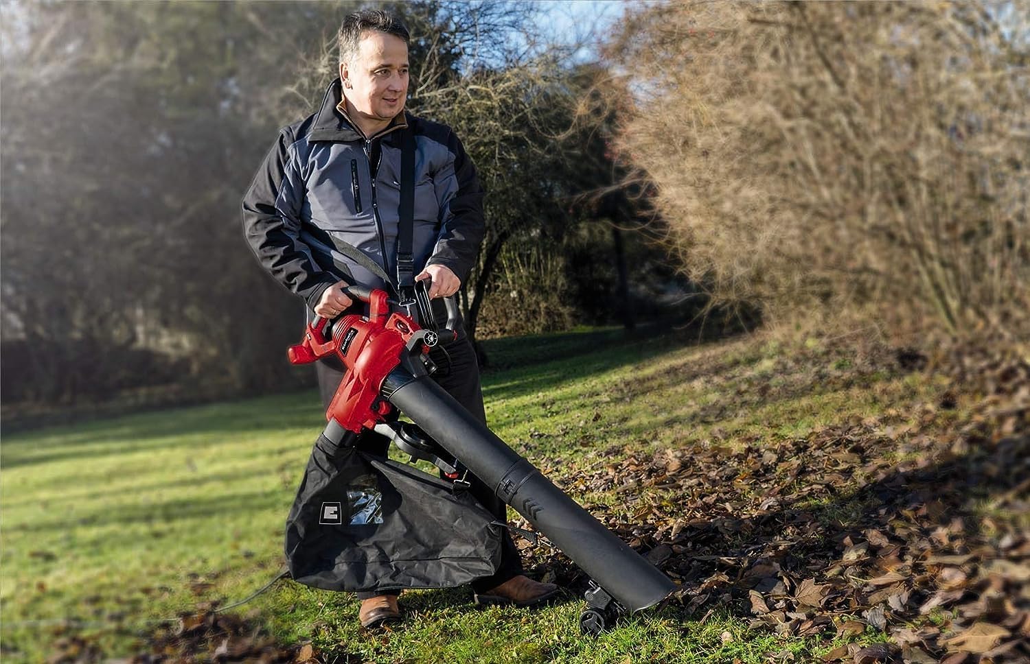 Einhell GC-EL 3000 E Electric Vacuum Blower Air Speed Max 300 km/h, Air Flow Rate 840 mq/h, Bag Capacity 45L, Leaf Shredding 10 to 1, with Wheels, Incl. Shoulder Strap