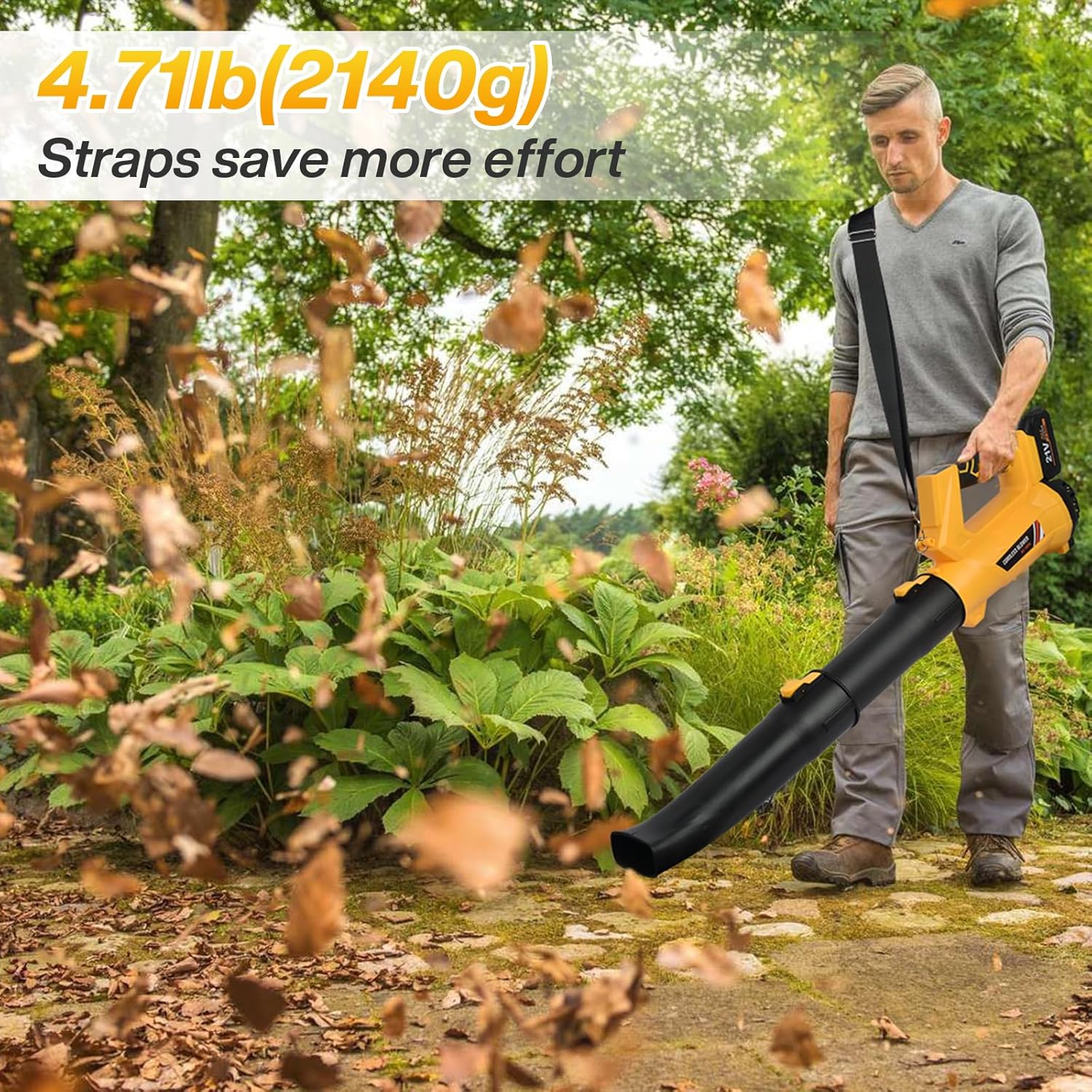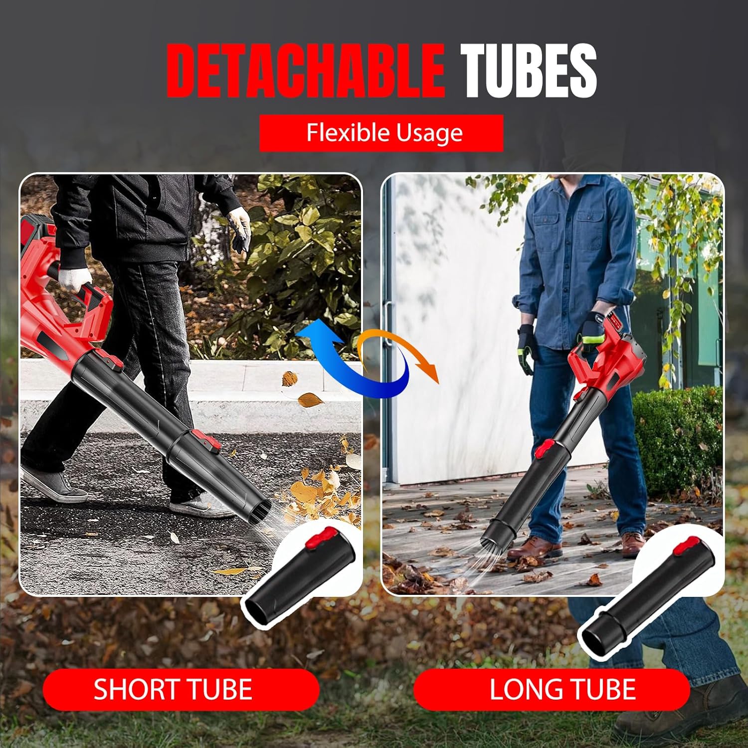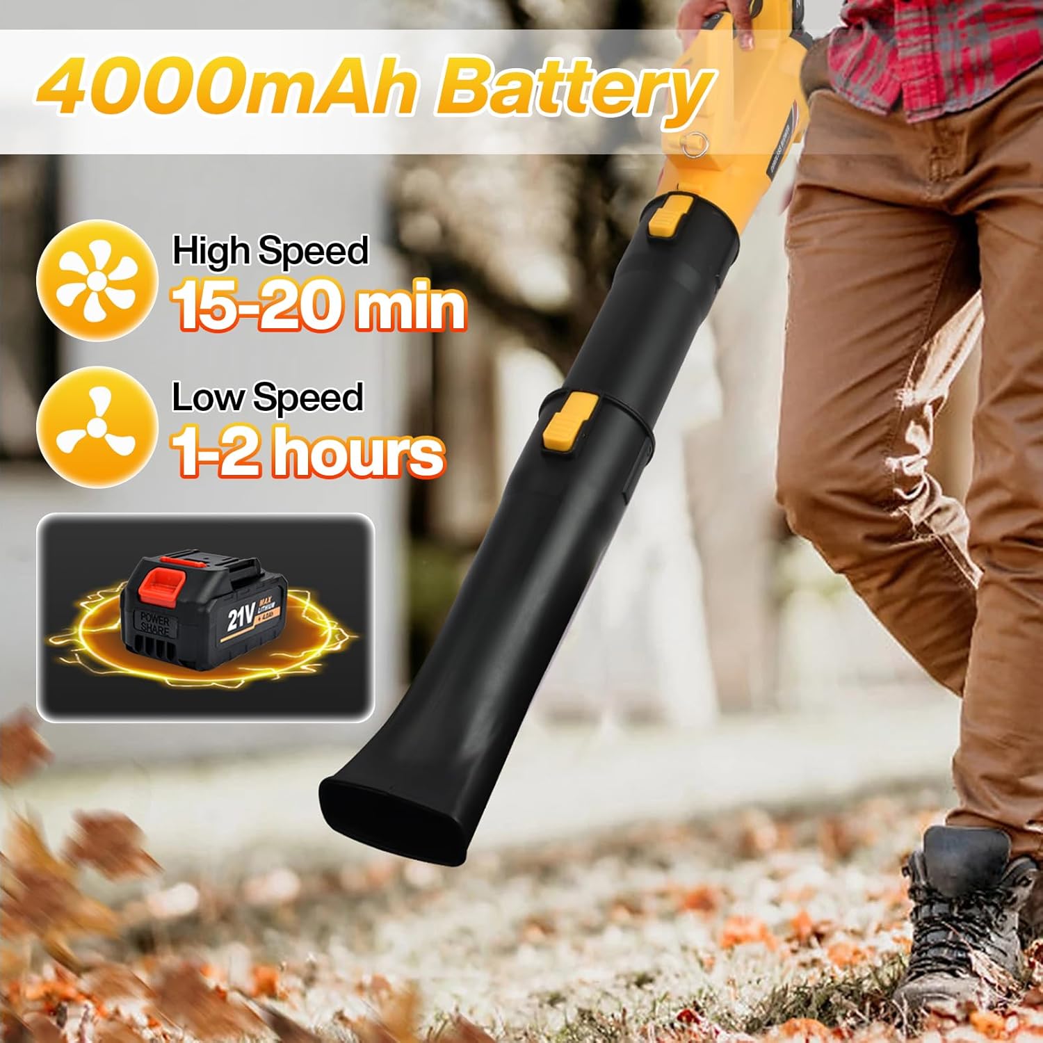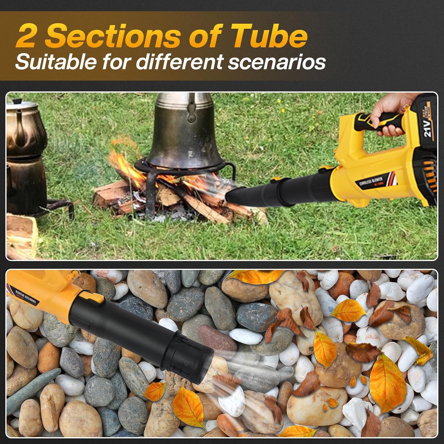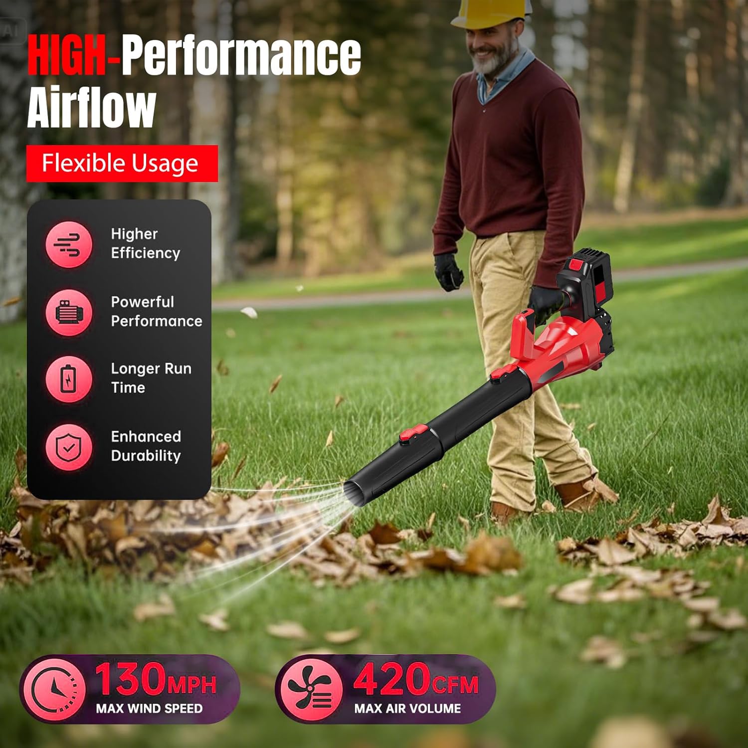 Battery Powered Blower with 2 x 21V Batteries, 250000 Tr/min Motor, Turbo 130MPH Air Debt, Lightweight and Portable for Garden, Patio, Car and Camping