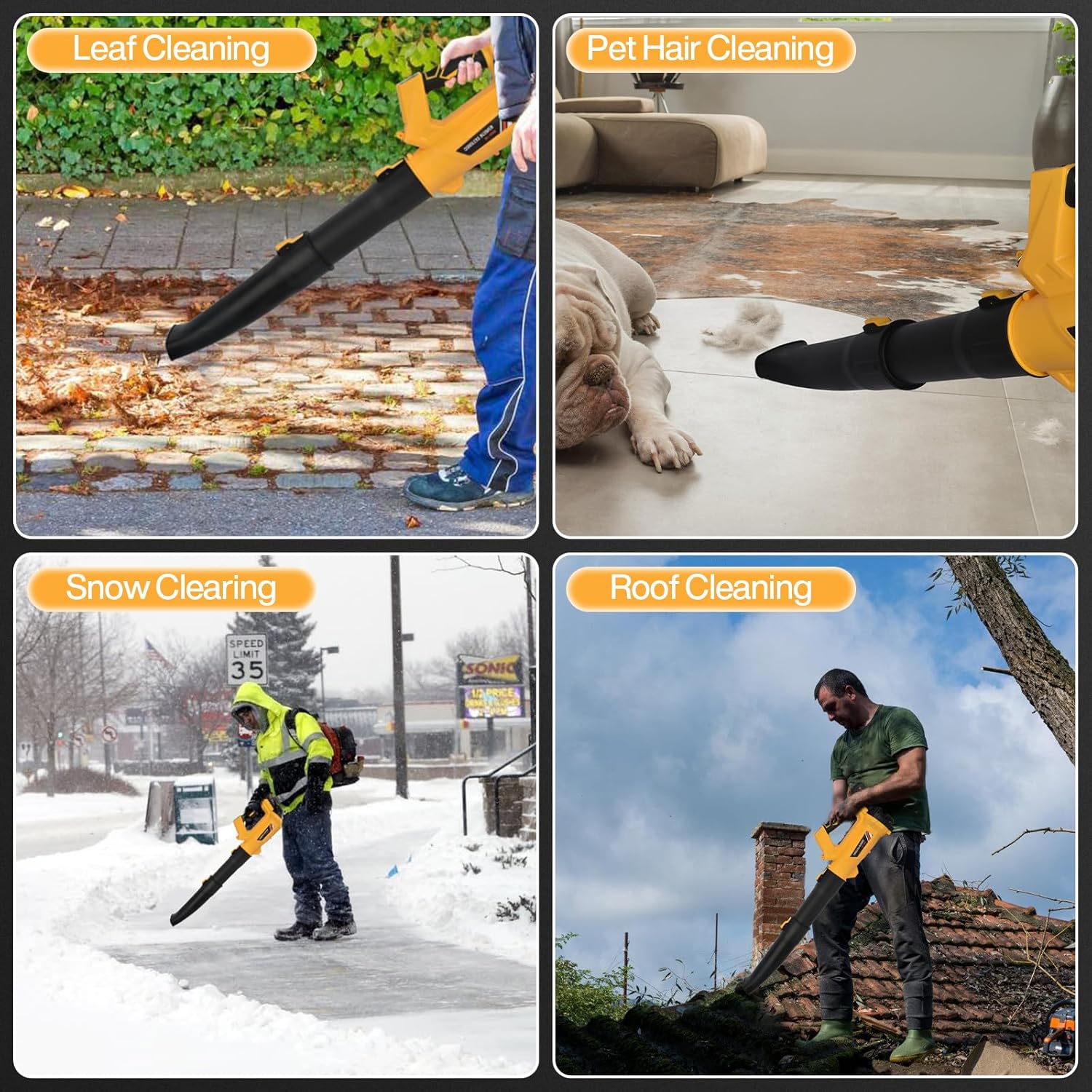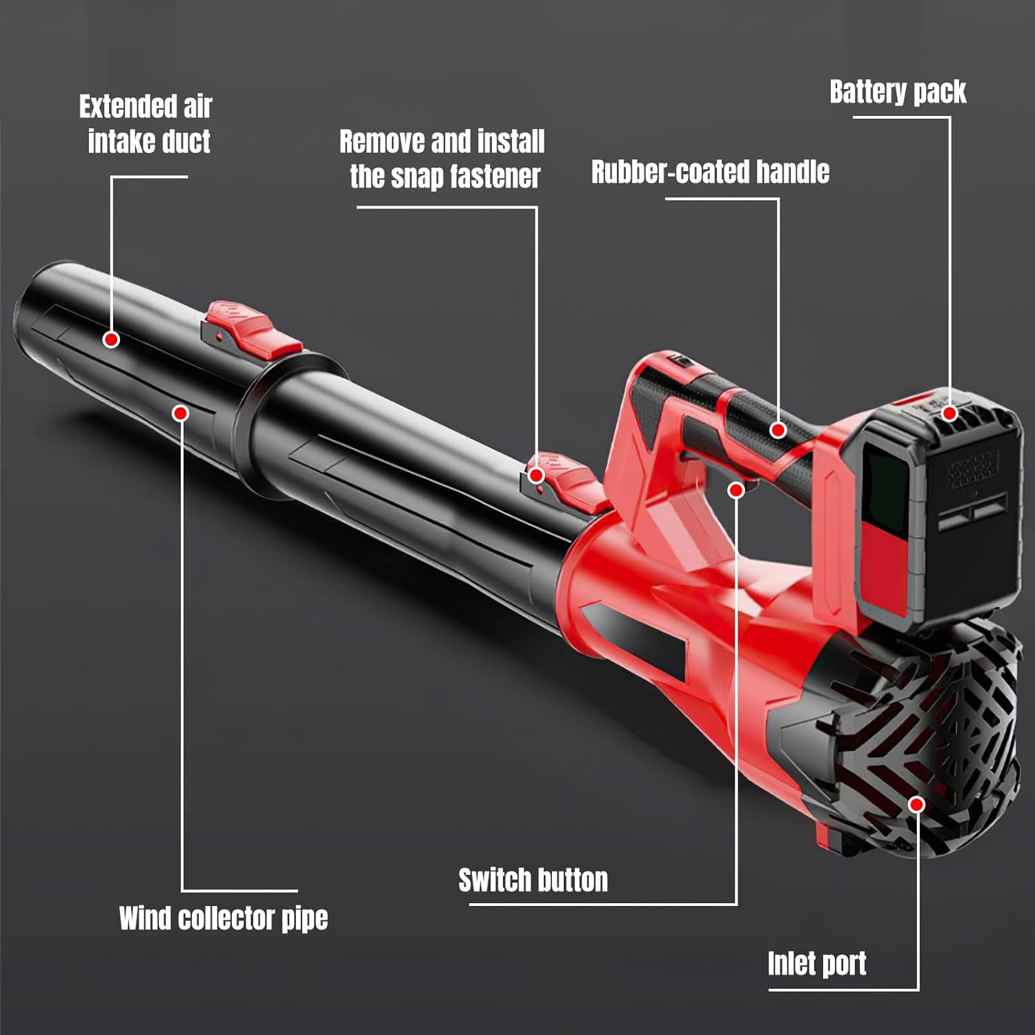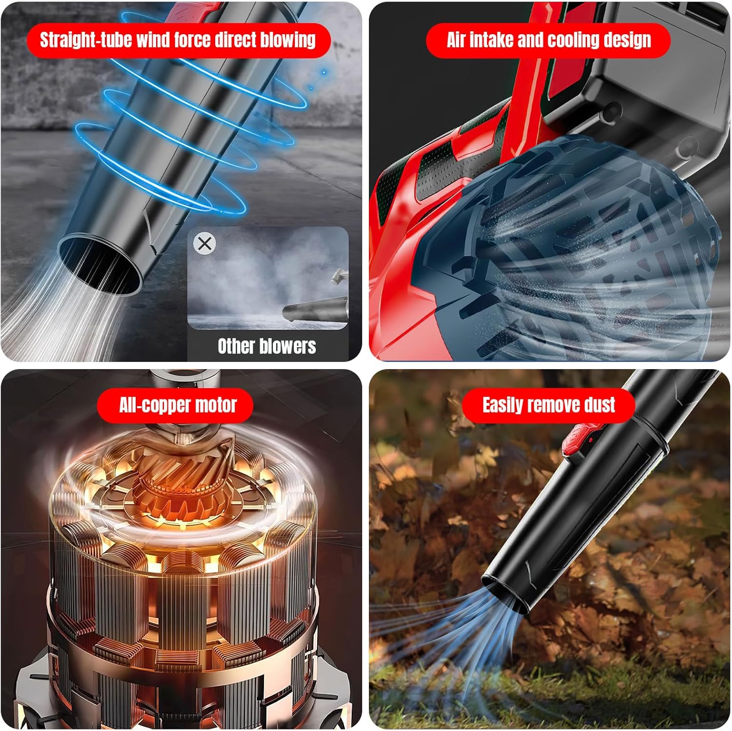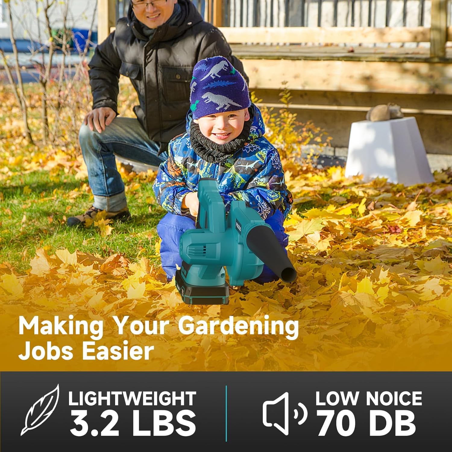 Battery Powered Blower with 2 x 21V Batteries, 250000 Tr/min Motor, Turbo 130MPH Air Debt, Lightweight and Portable for Garden, Patio, Car and Camping