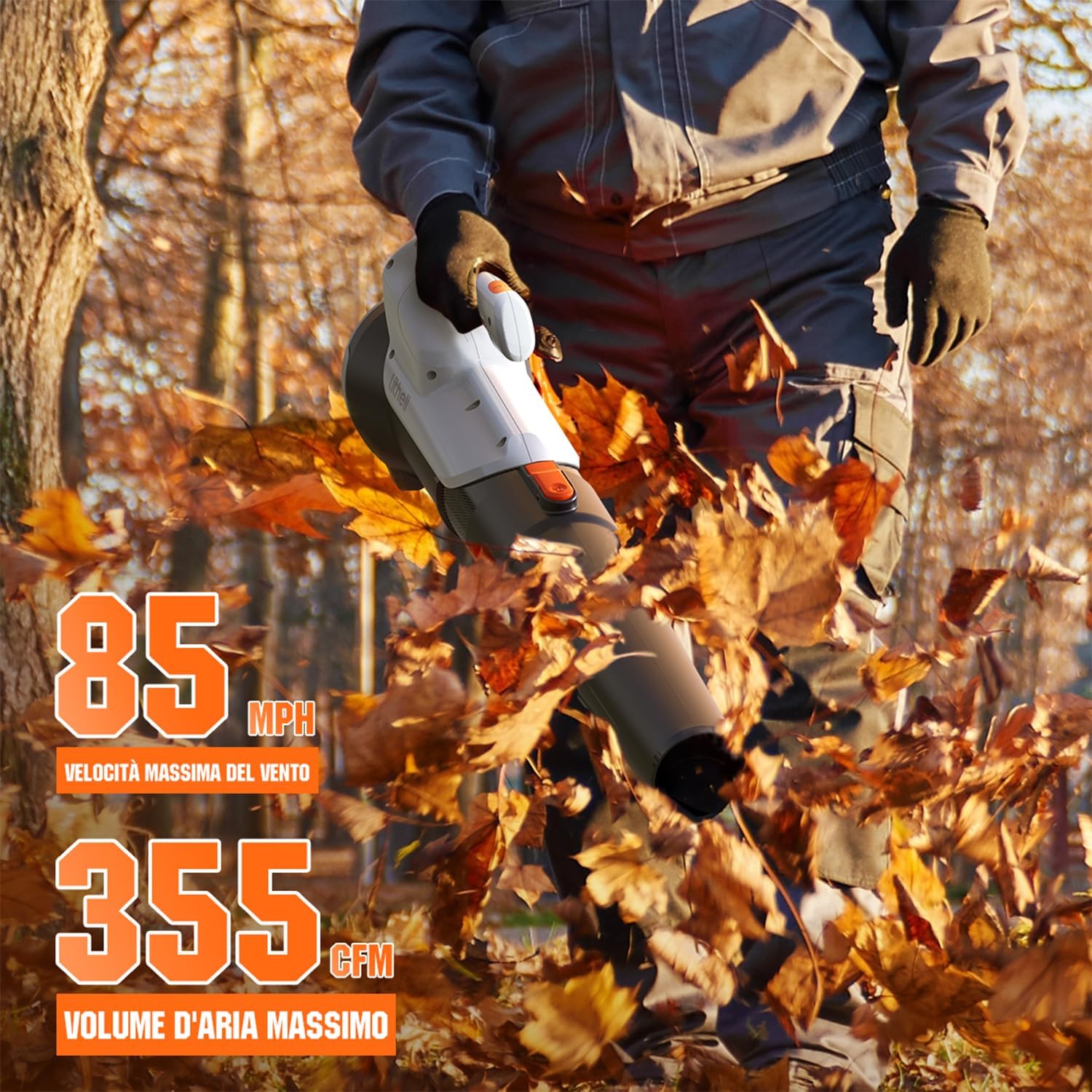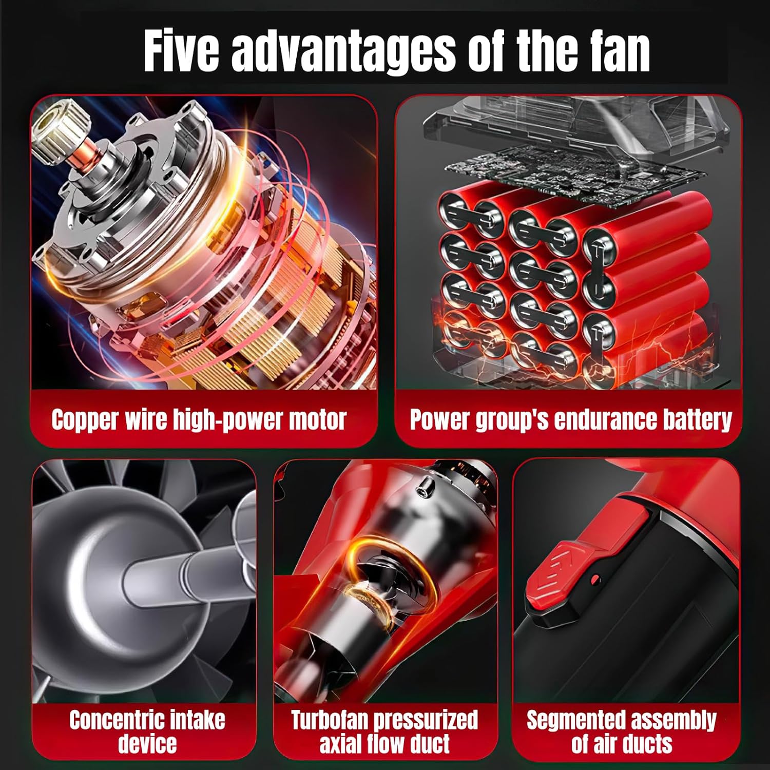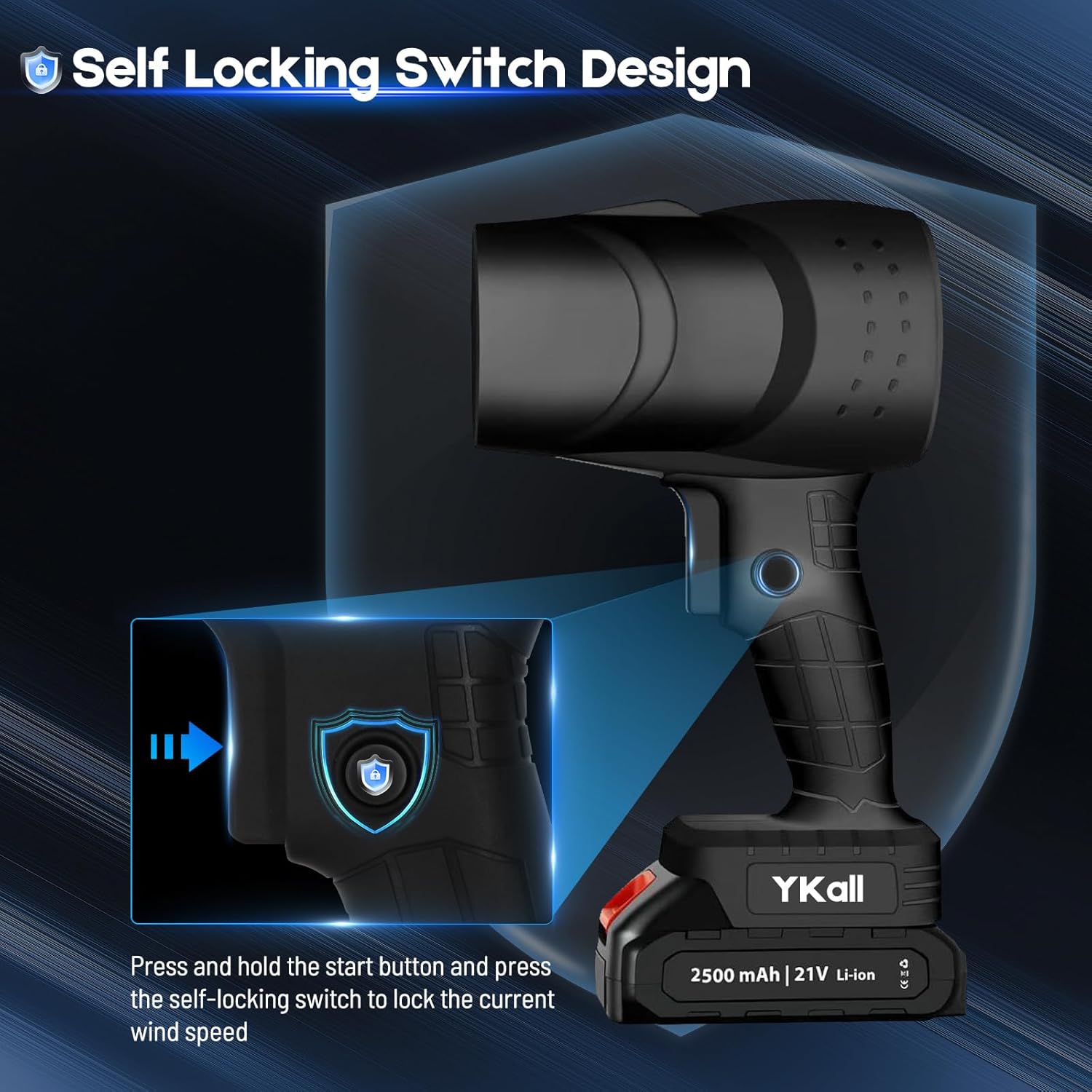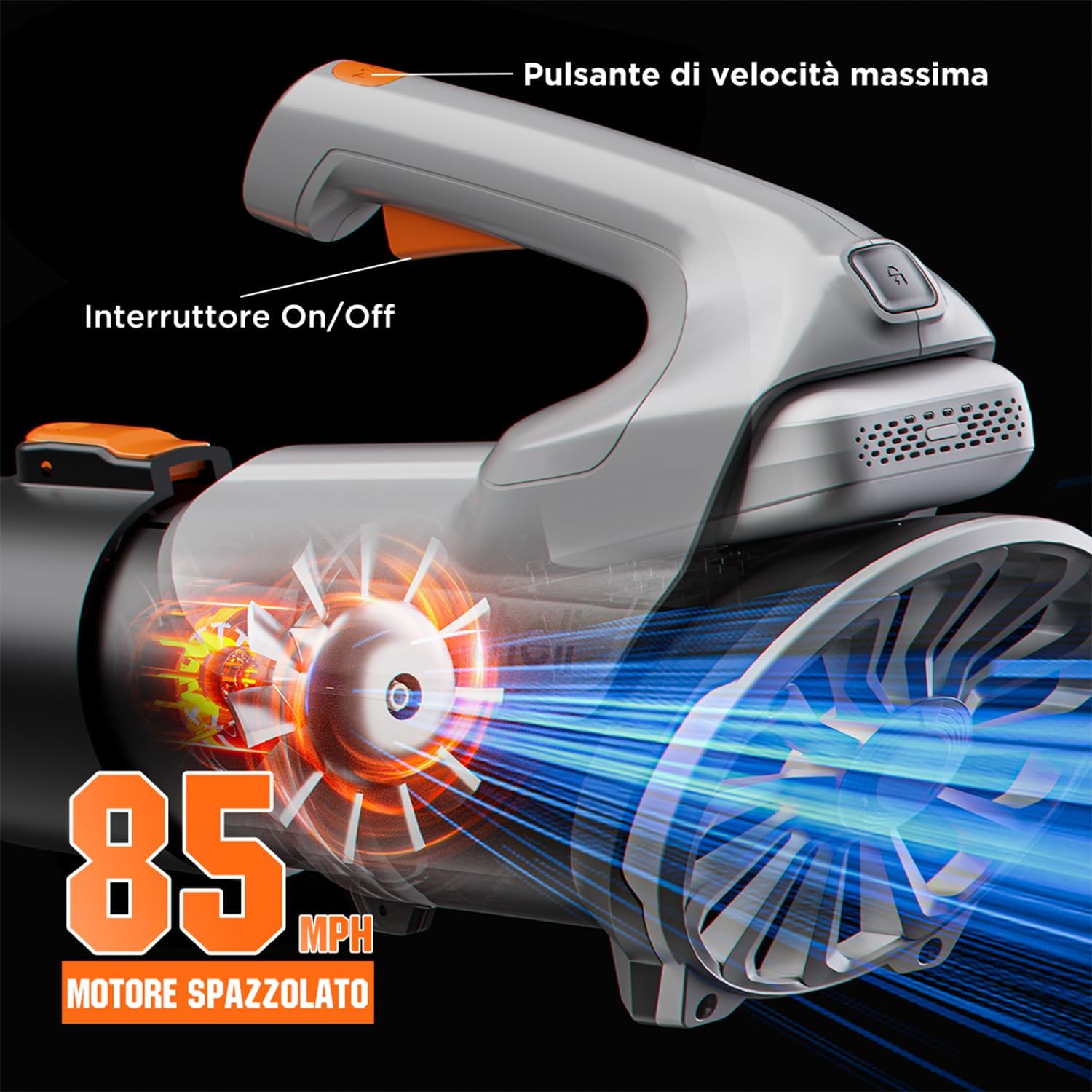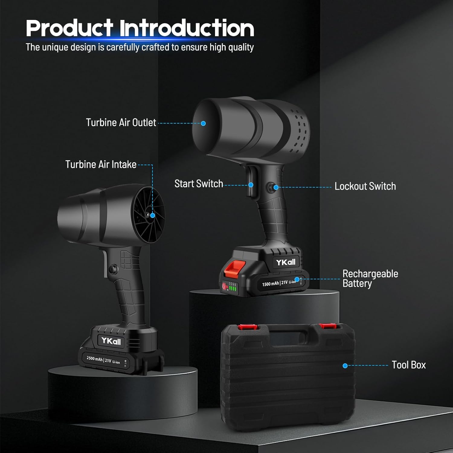 Battery Powered Blower with 2 x 21V Batteries, 250000 Tr/min Motor, Turbo 130MPH Air Debt, Lightweight and Portable for Garden, Patio, Car and Camping