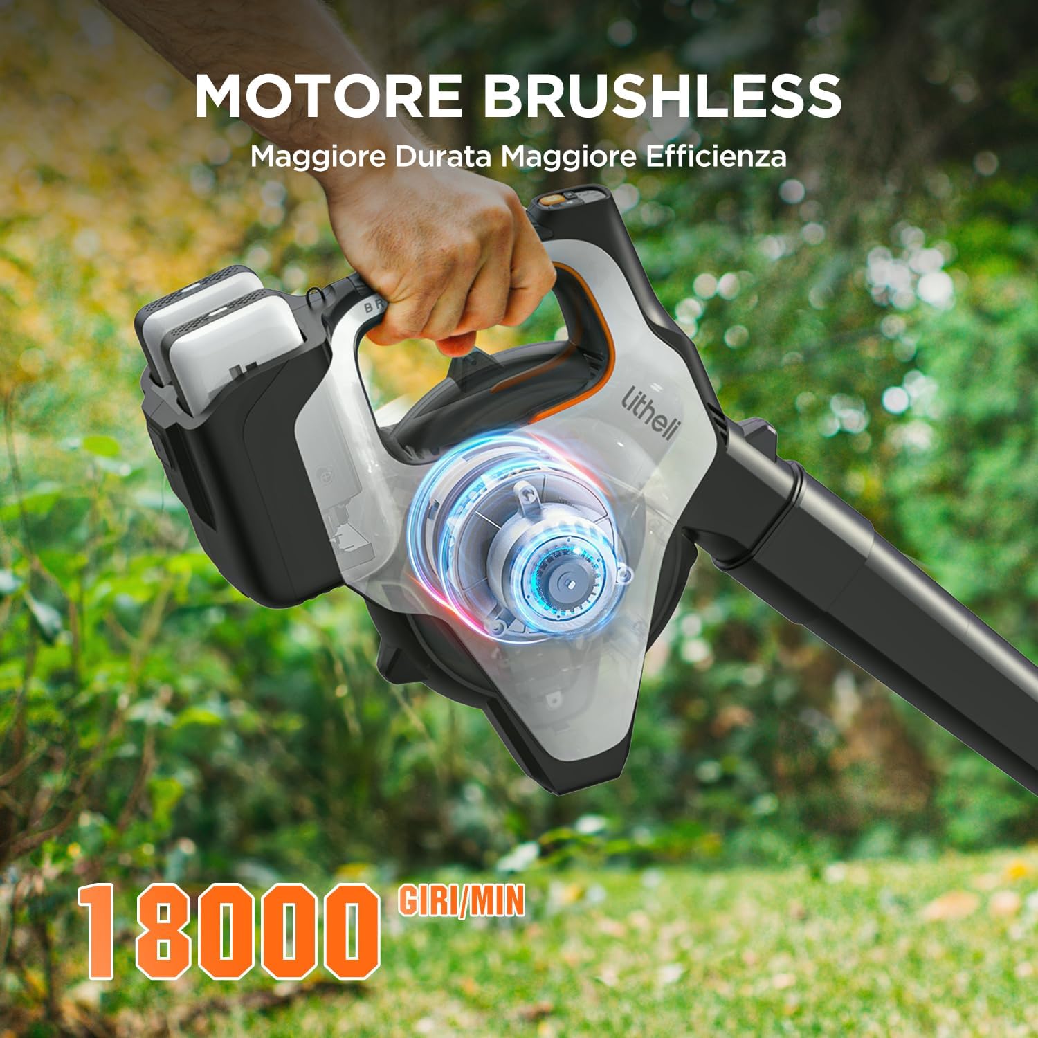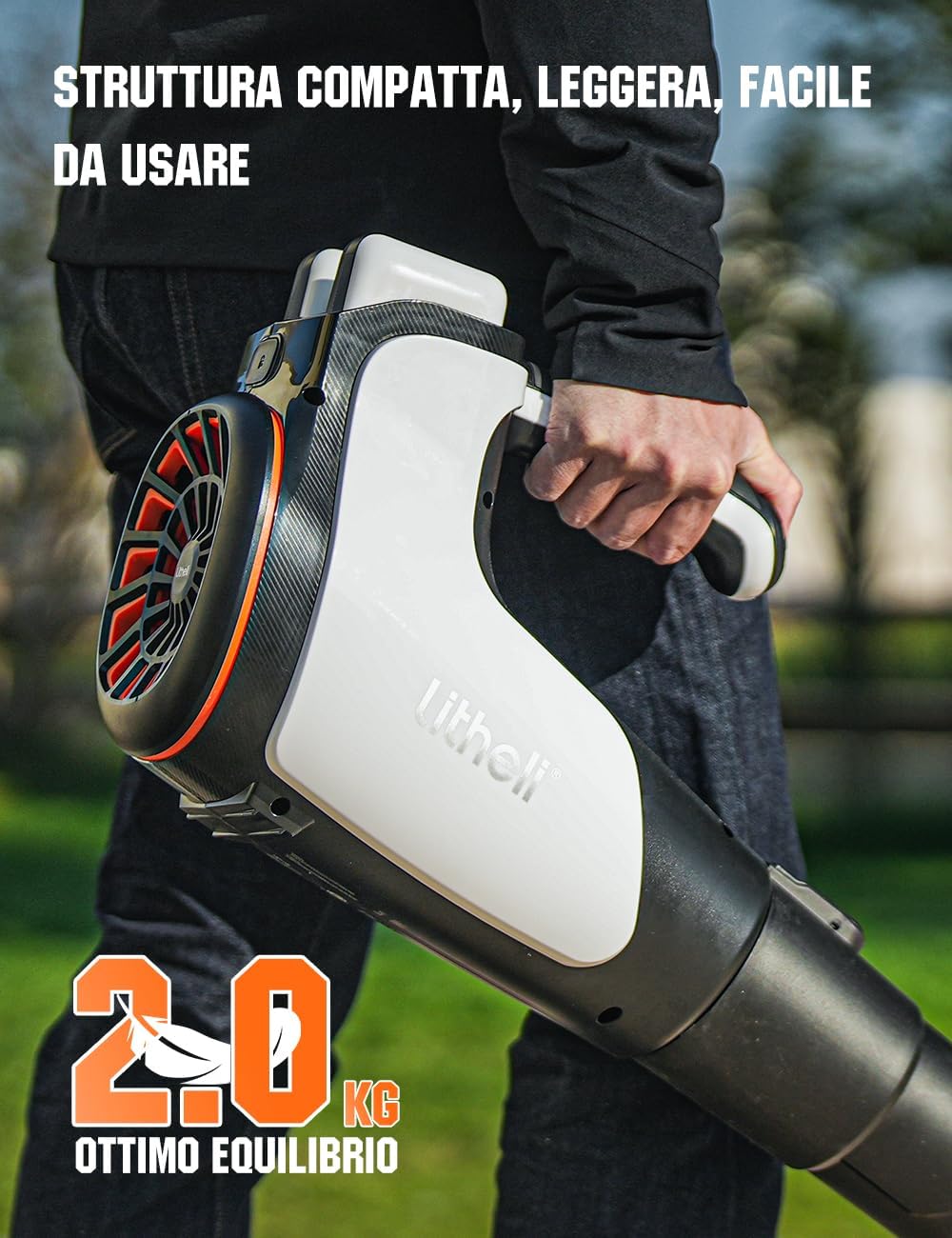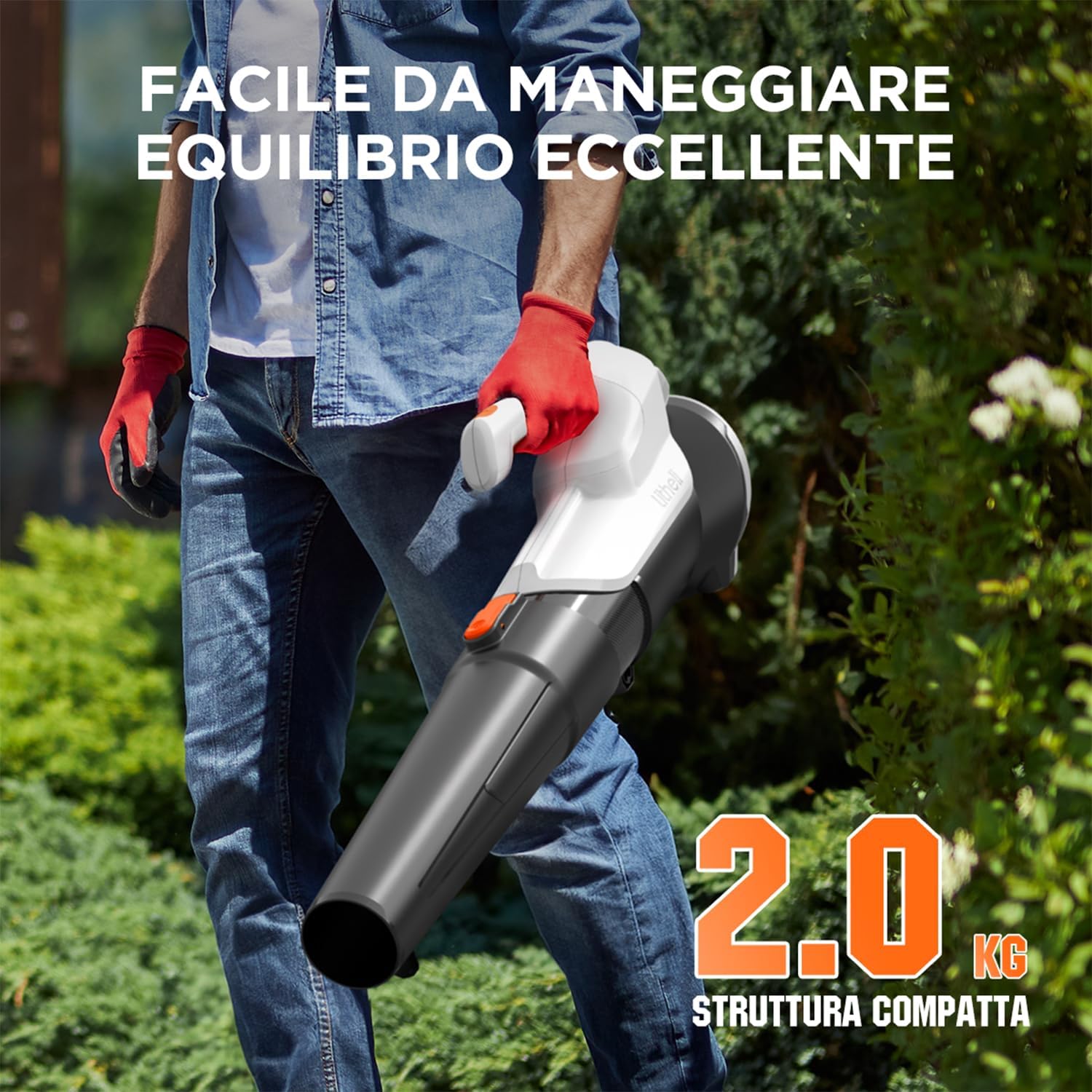 Litheli Battery Blower, 137 km/h, 604 m³/h, Garden Leaf Collector with 20 V 2.0 Ah Battery, Lightweight Design, Double Speed