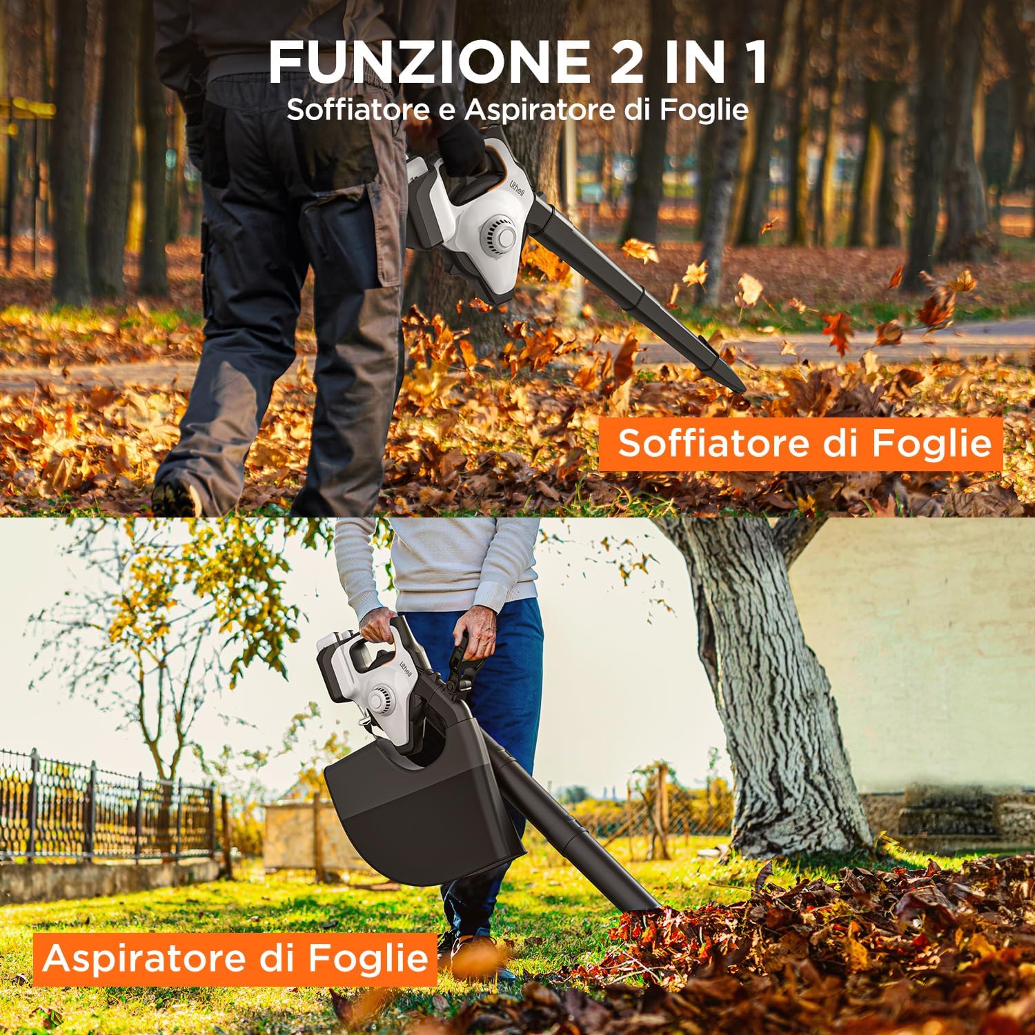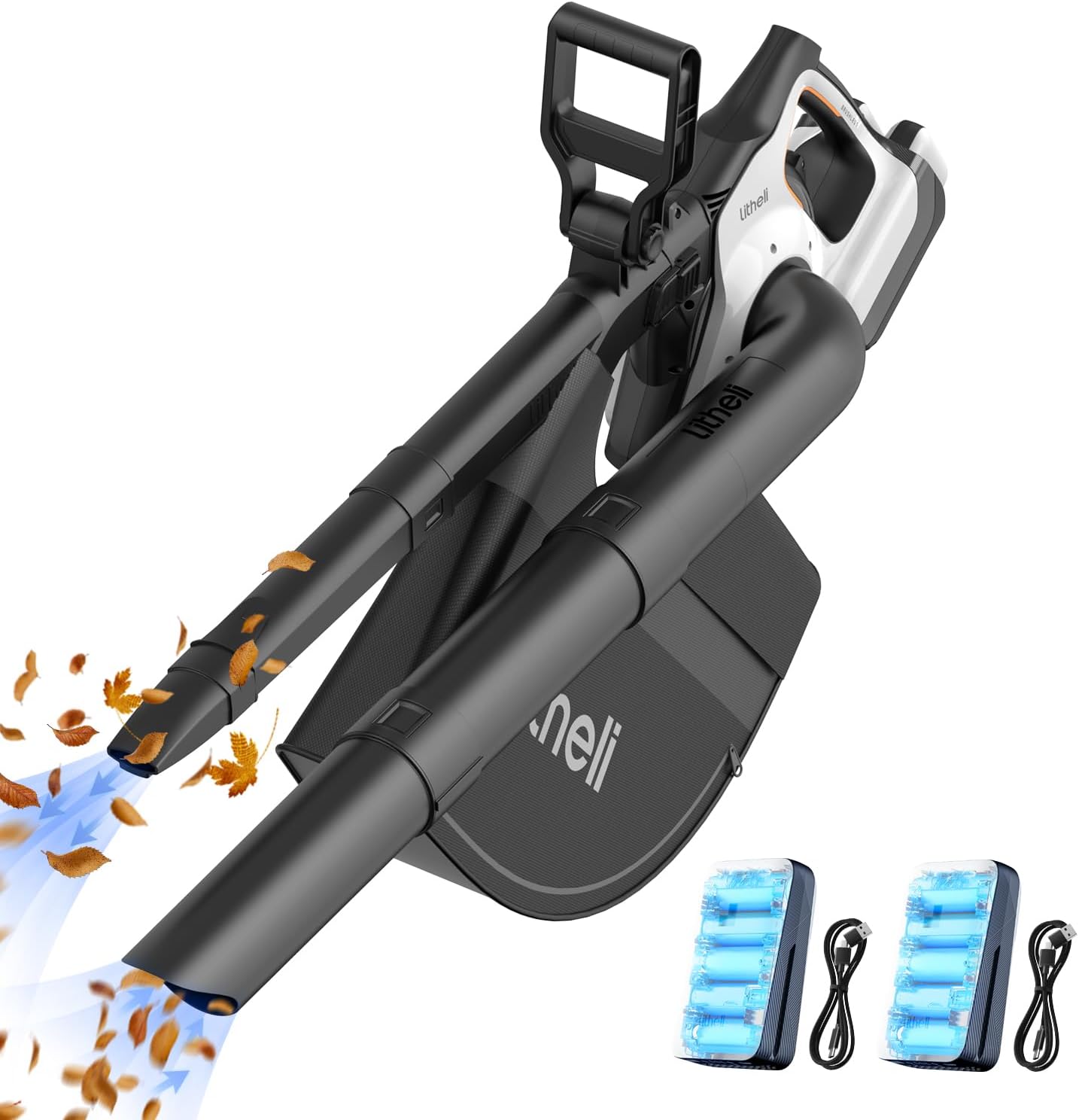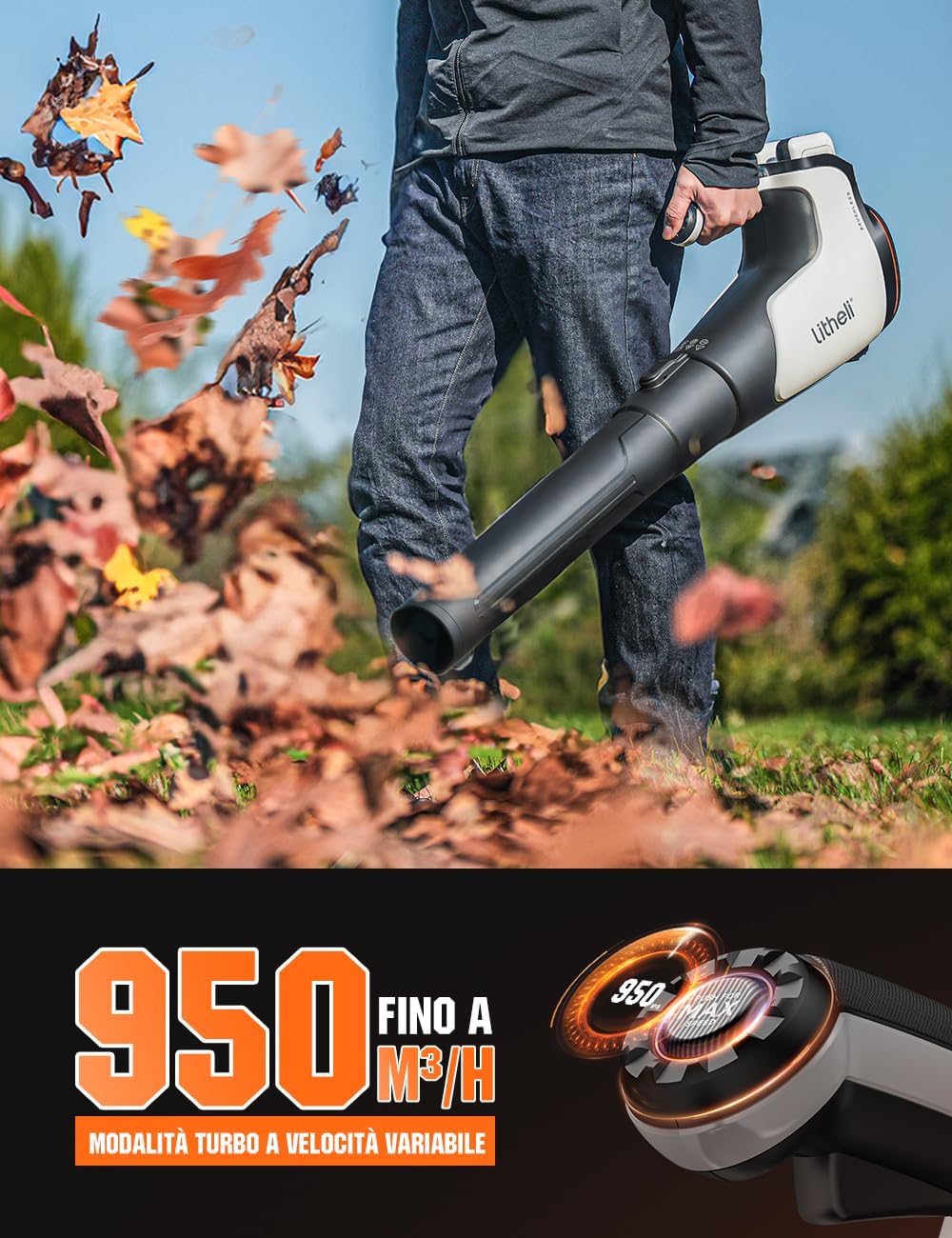 Litheli Battery Blower, 137 km/h, 604 m³/h, Garden Leaf Collector with 20 V 2.0 Ah Battery, Lightweight Design, Double Speed