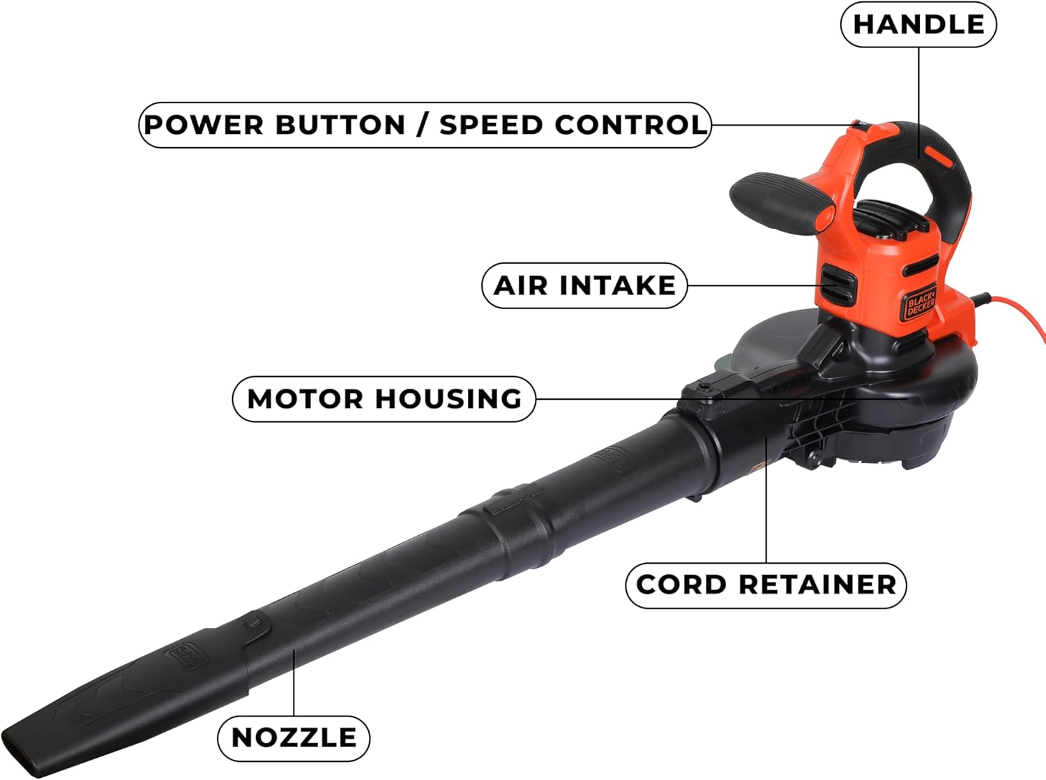 BLACK+DECKER BEBLV300-QS 3 in 1 Leaf Blower 3000W with 72L Collection Backpack