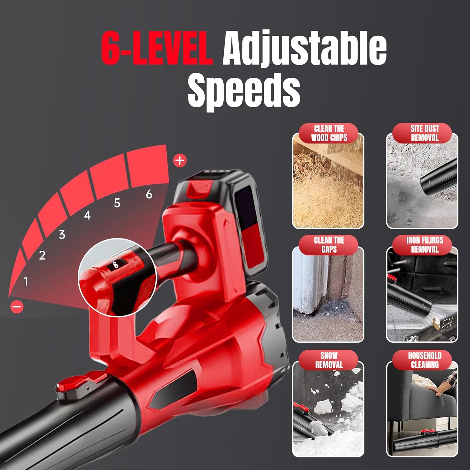 Battery Blower, 20V Electric Blower with Battery, 257KM/H Leaf Blower with 6 Speed Modes, Lightweight for Lawn, Patio, Blowing Leaves and Dust