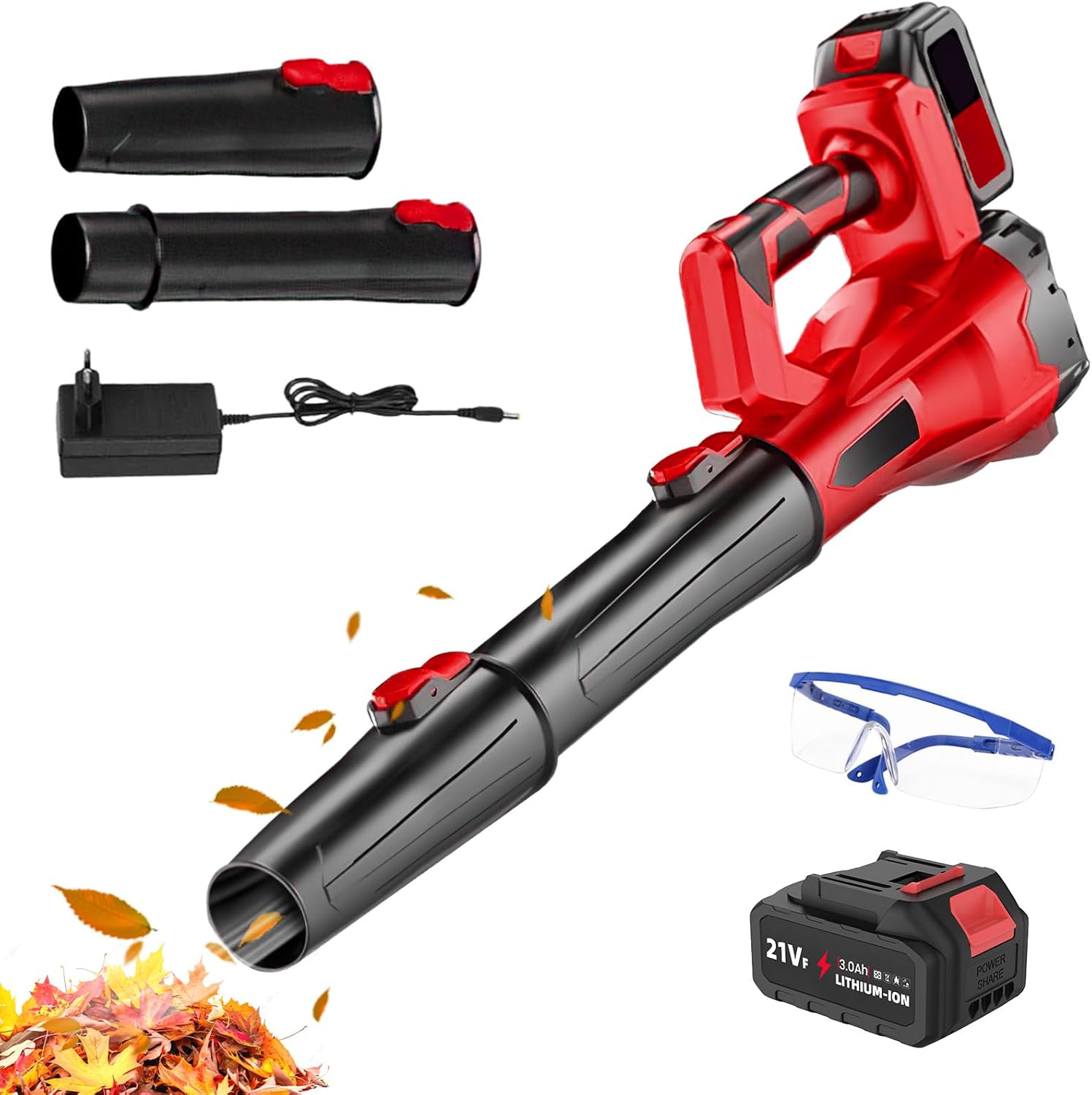 Battery Blower for Leaves: 21 V Leaf Blower with 4.0 Ah Battery, 218 km/h, 20000 RPM, 6 Speed, 2 Nozzles, Electric Blower for Cleaning Leaves, Removing Dust