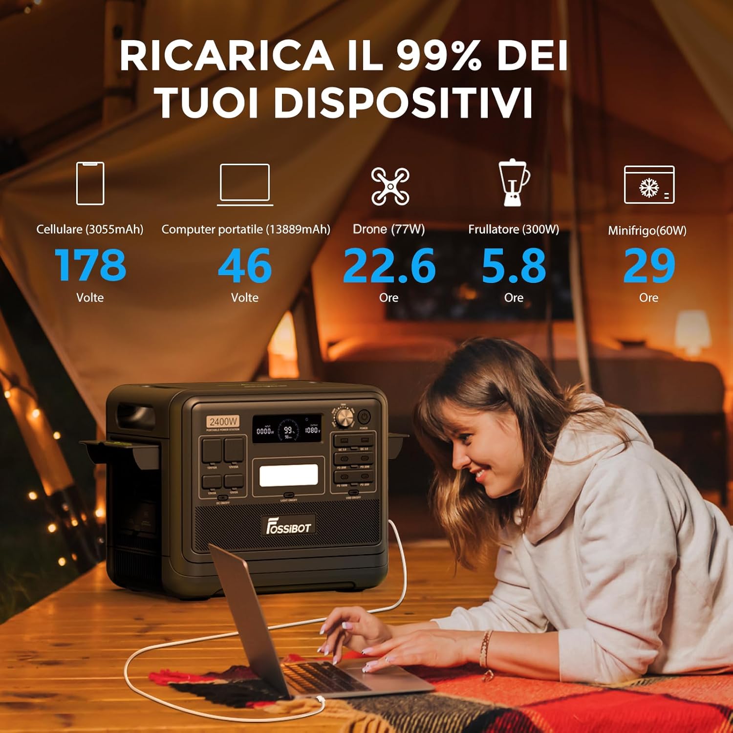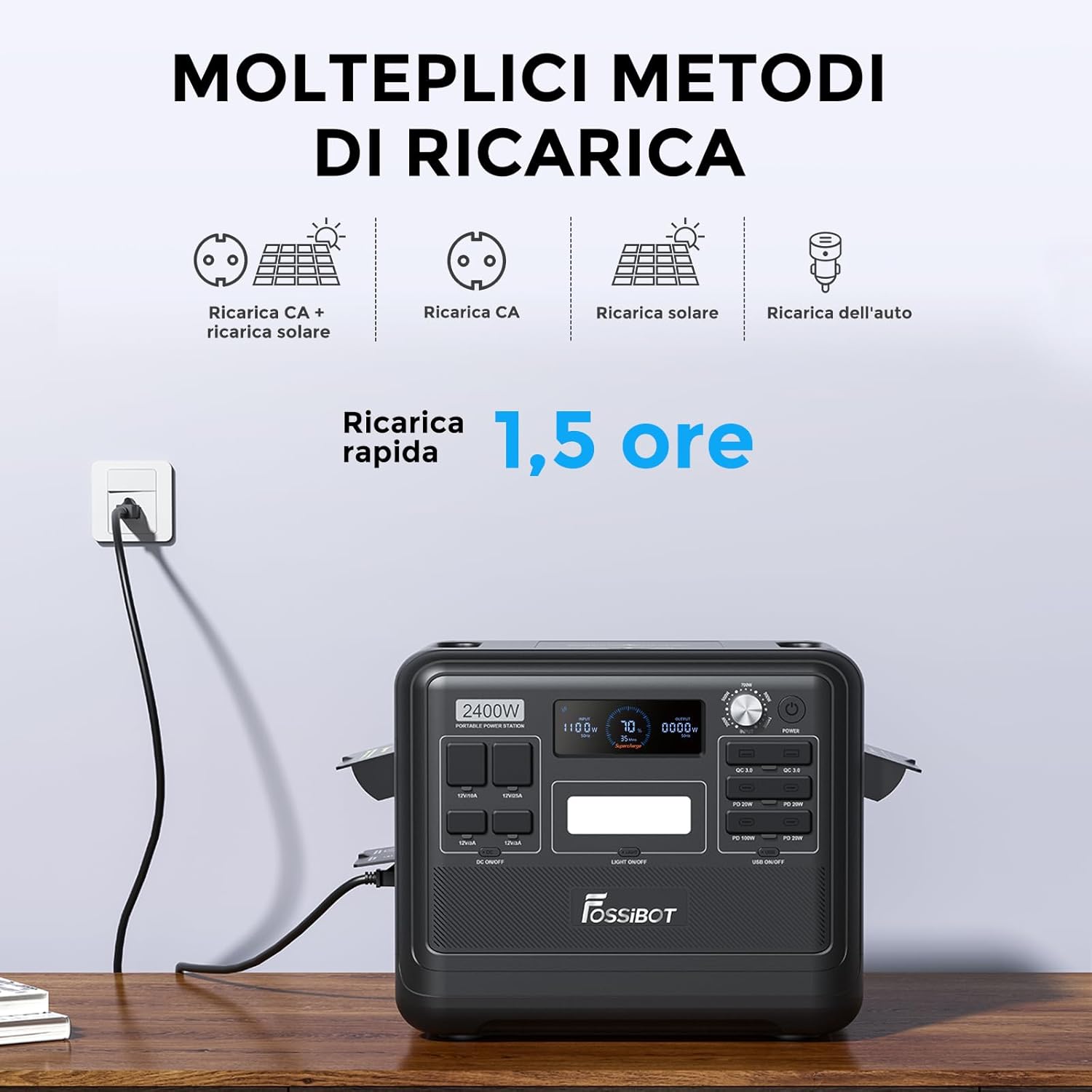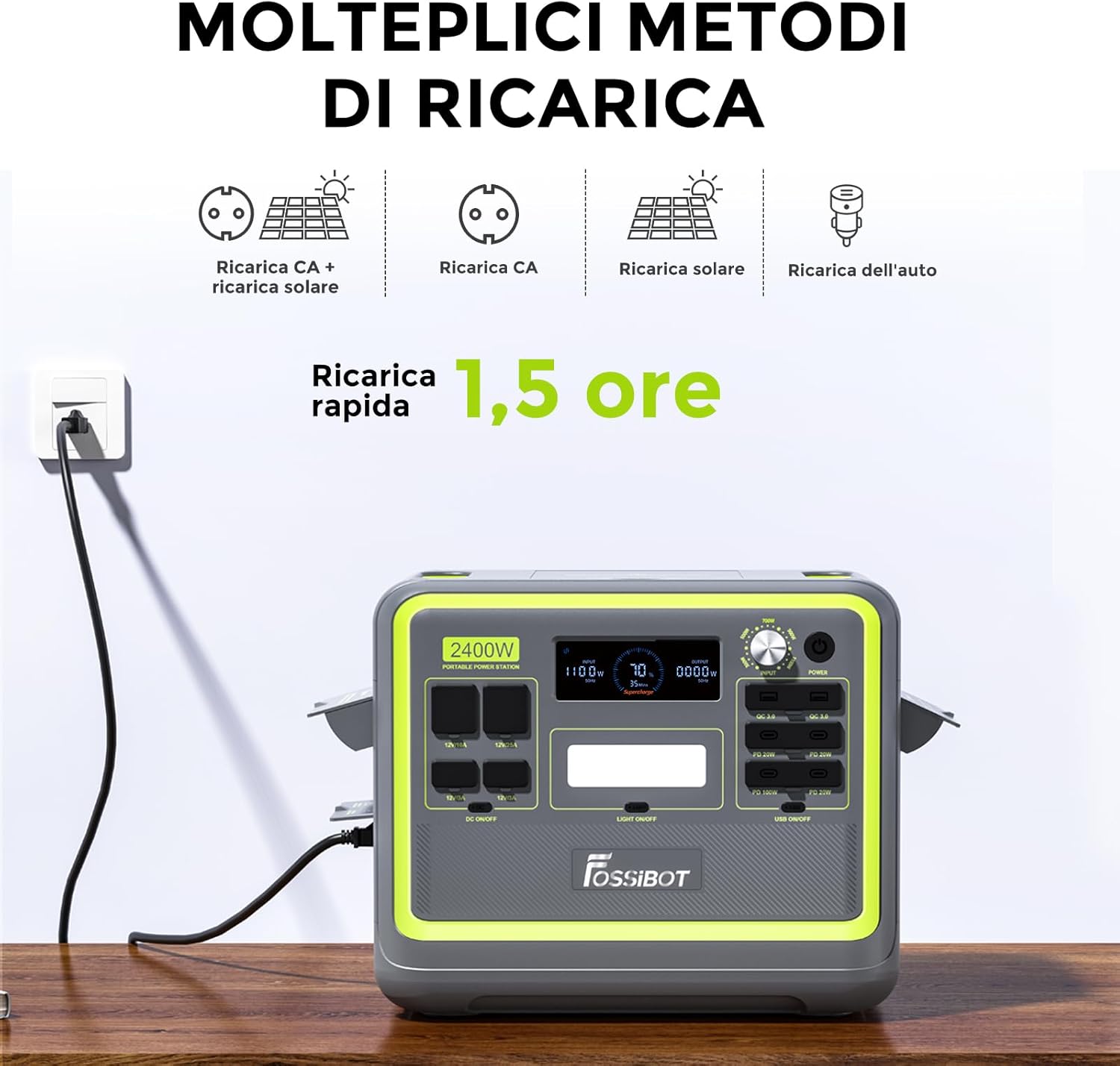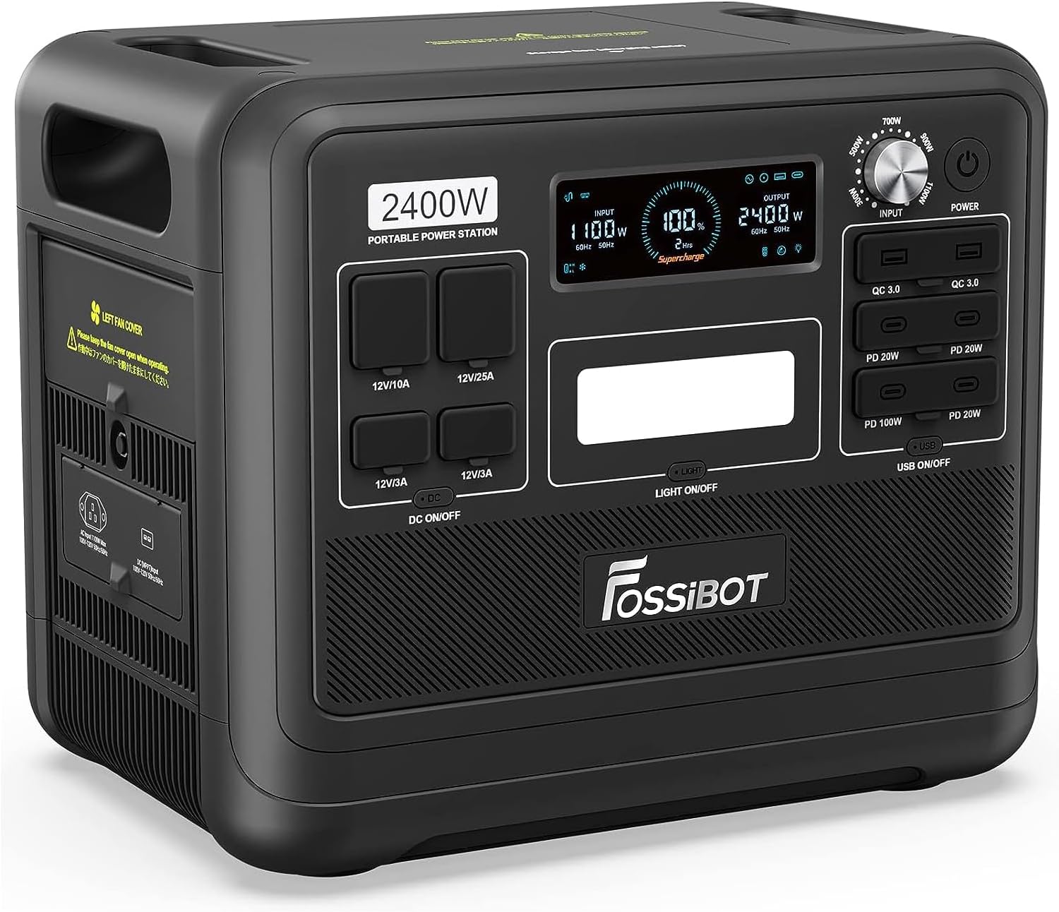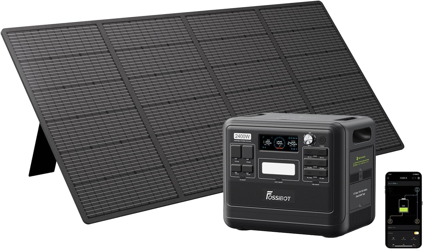 FOSSiBOT F2400 Portable Power Station & Solar Generator, 2048Wh LiFePO4 Backup Battery, 2400W AC Output (Peak 4800W) AC DC USB Plug Suitable for Camper and Outdoor Travel