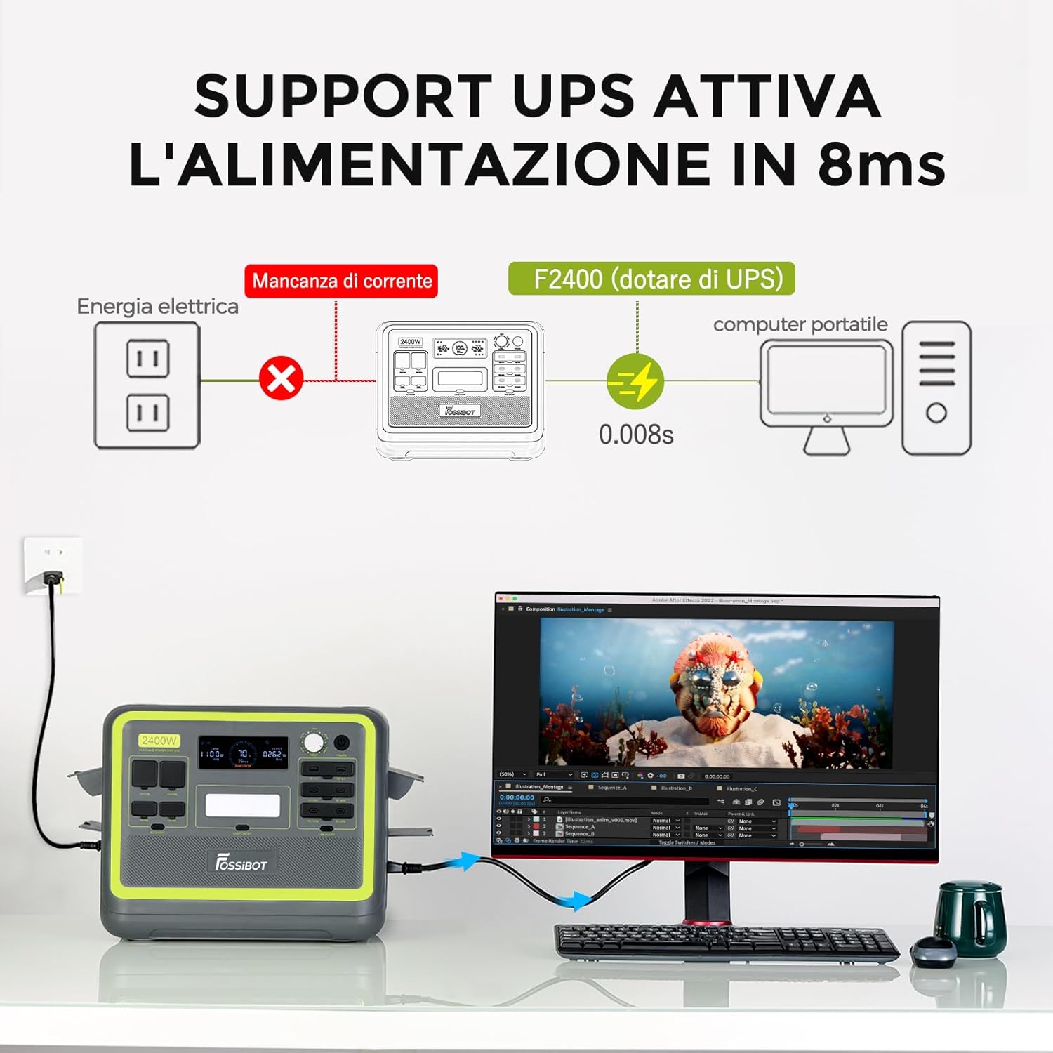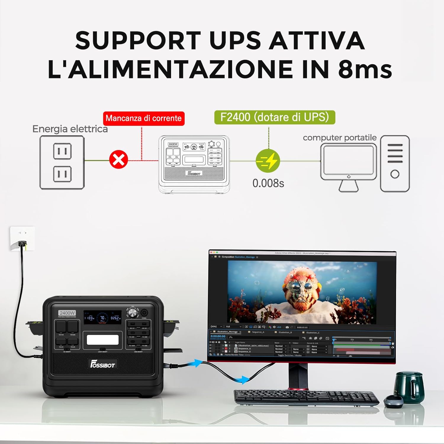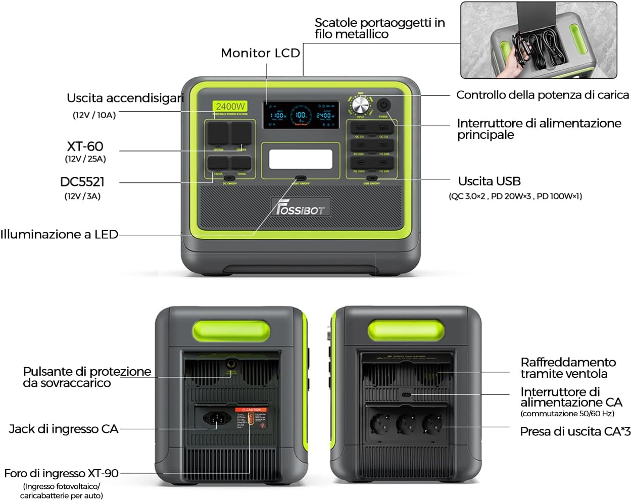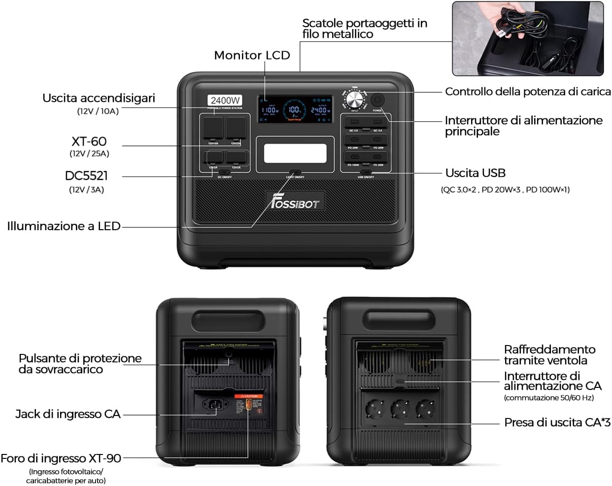 FOSSiBOT F2400 Portable Power Station & Solar Generator, 2048Wh LiFePO4 Backup Battery, 2400W AC Output (Peak 4800W) AC DC USB Plug Suitable for Camper and Outdoor Travel