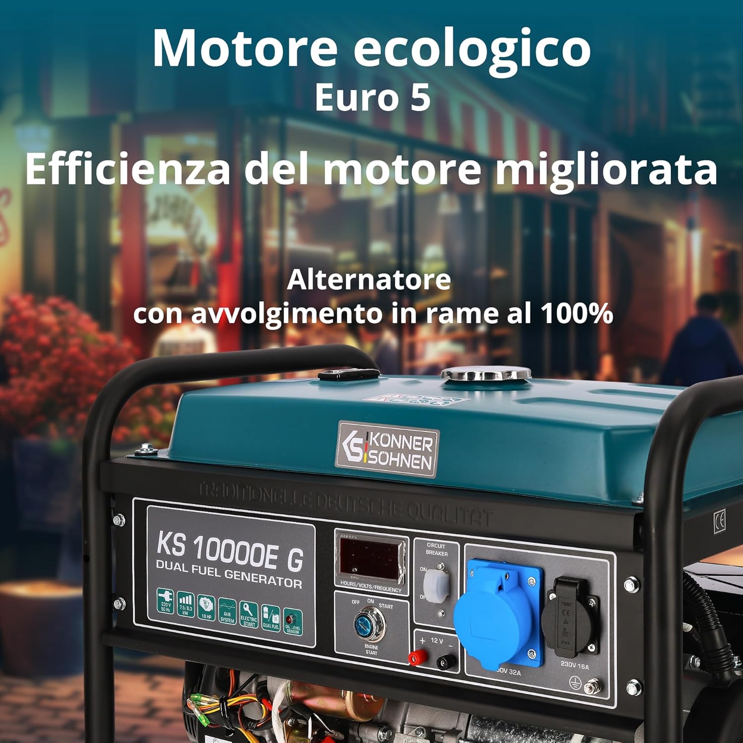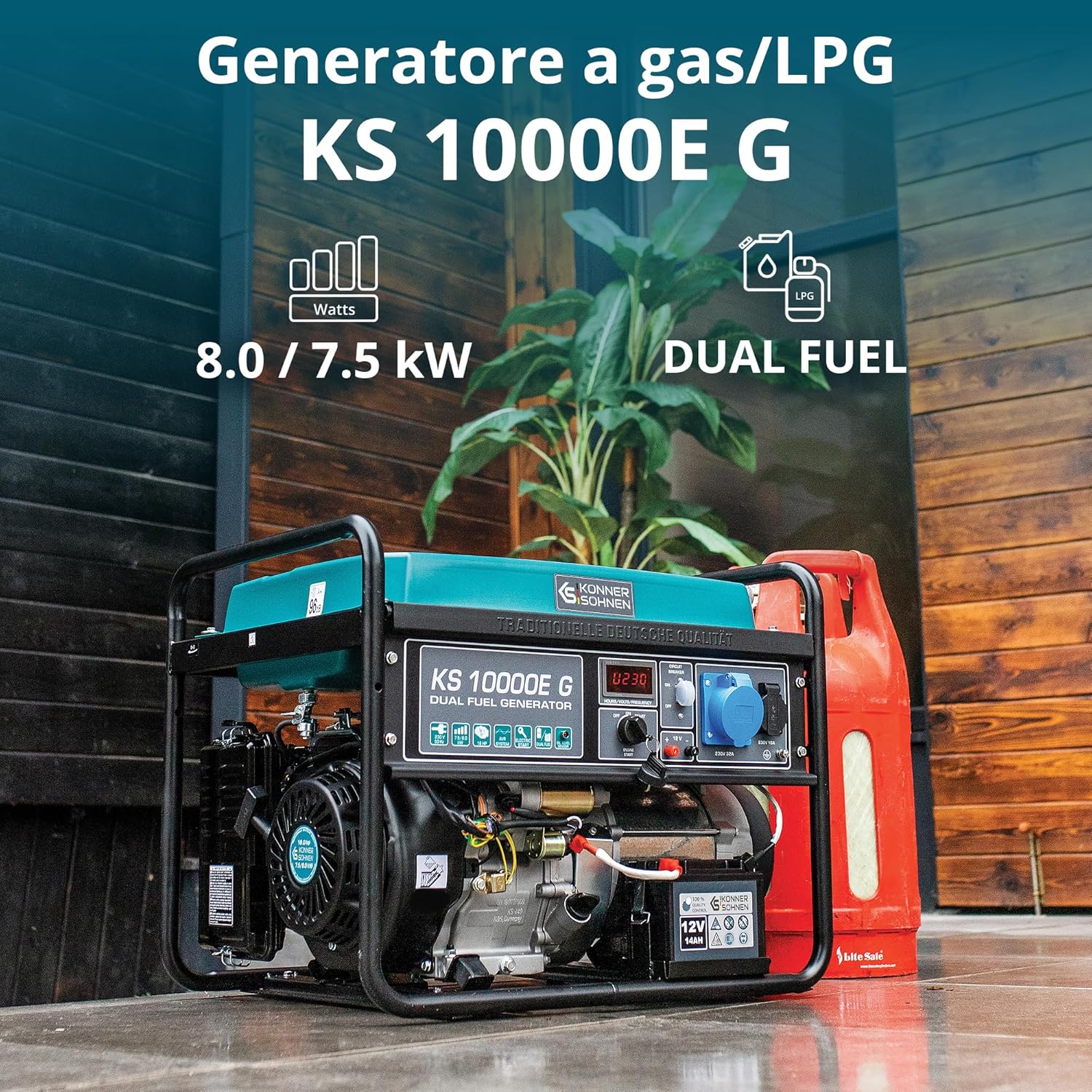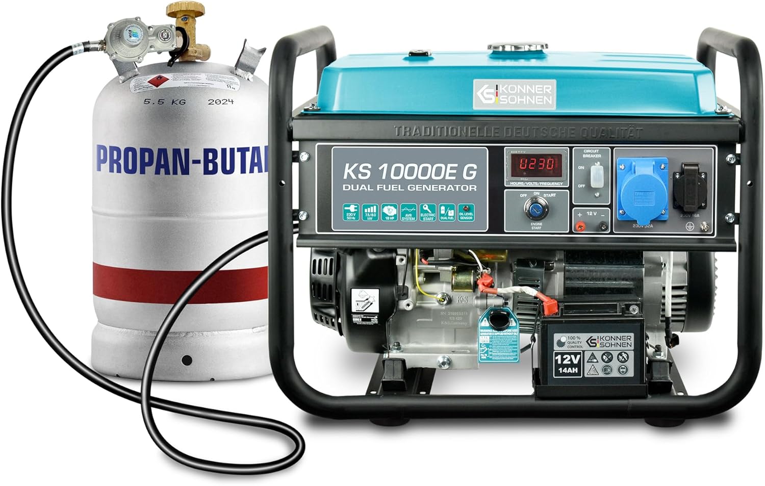 KS 10000E G Dual Fuel Series Petrol and Gas Hybrid Generator Maximum Power 8000W, 1x16A, 1х32 (230V), 12V, Automatic Voltage Regulator (AVR), Overload Protection and Short Circuit Protection …