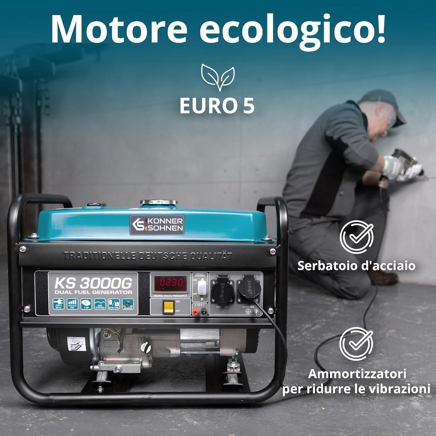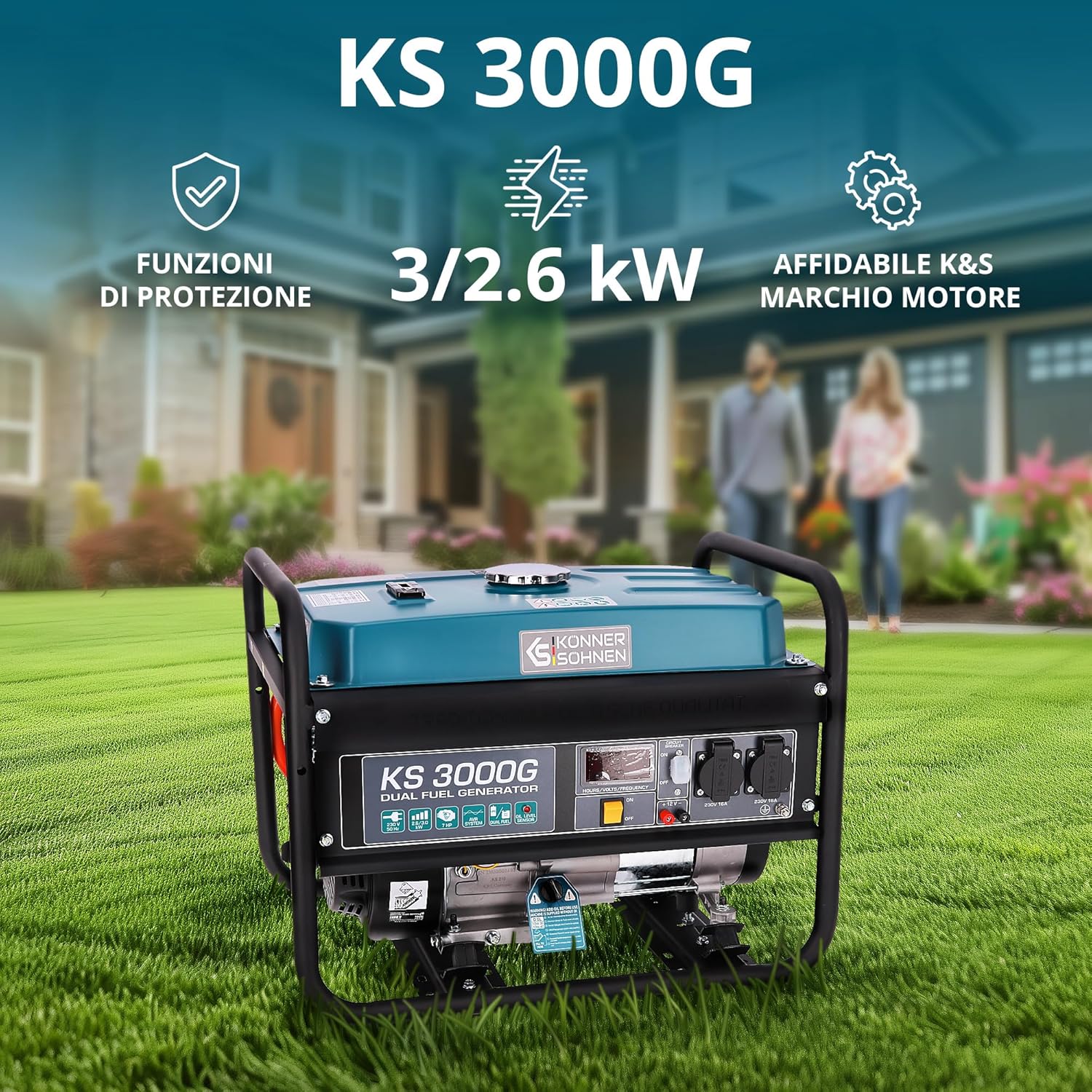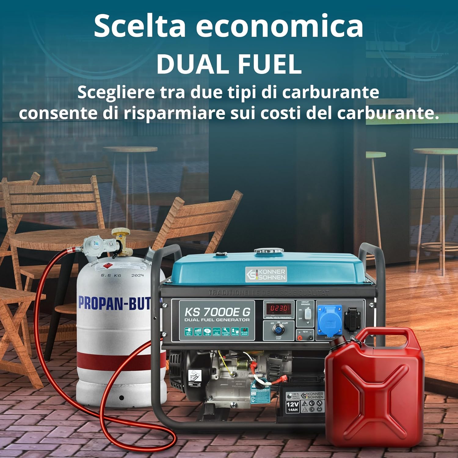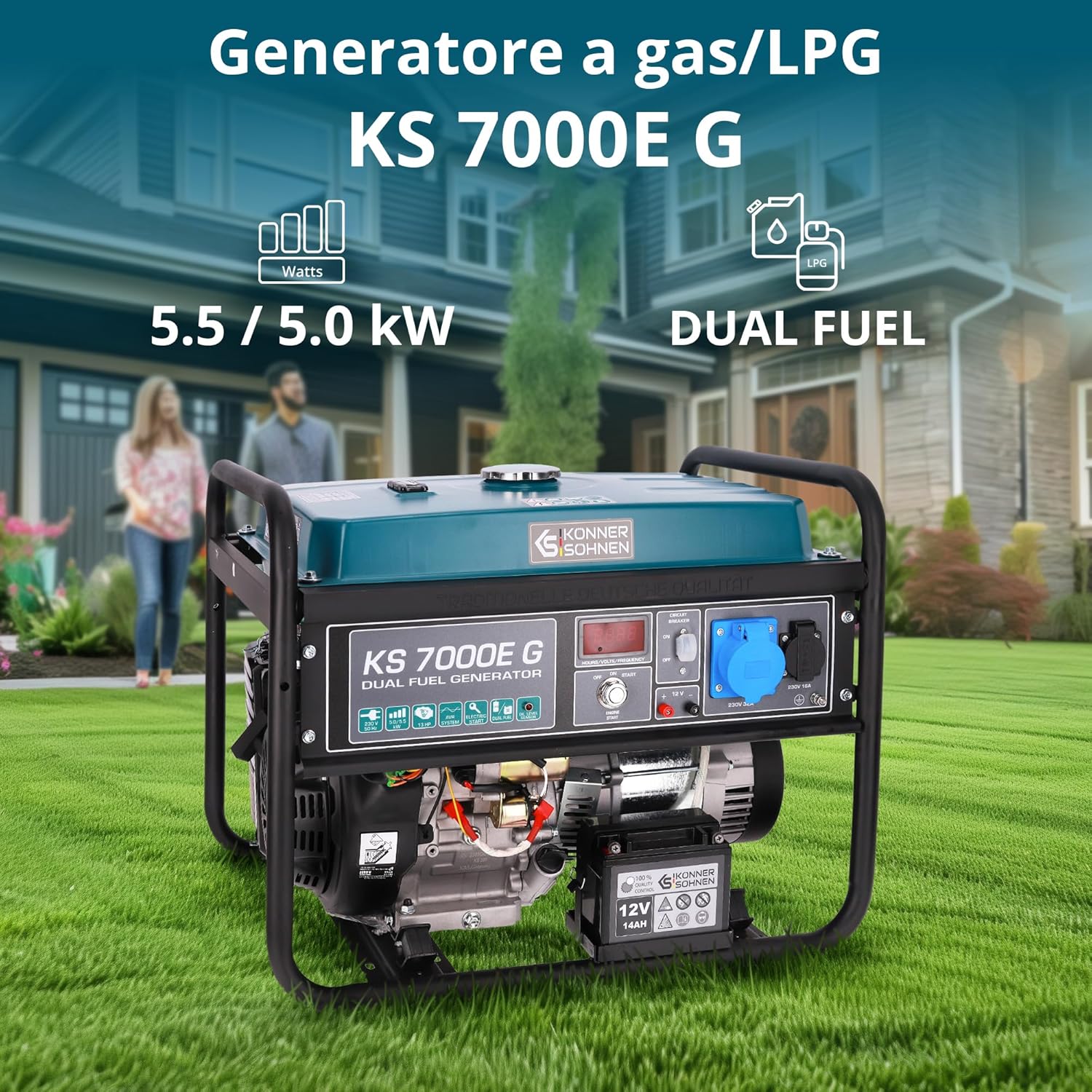 KS 10000E G Dual Fuel Series Petrol and Gas Hybrid Generator Maximum Power 8000W, 1x16A, 1х32 (230V), 12V, Automatic Voltage Regulator (AVR), Overload Protection and Short Circuit Protection …