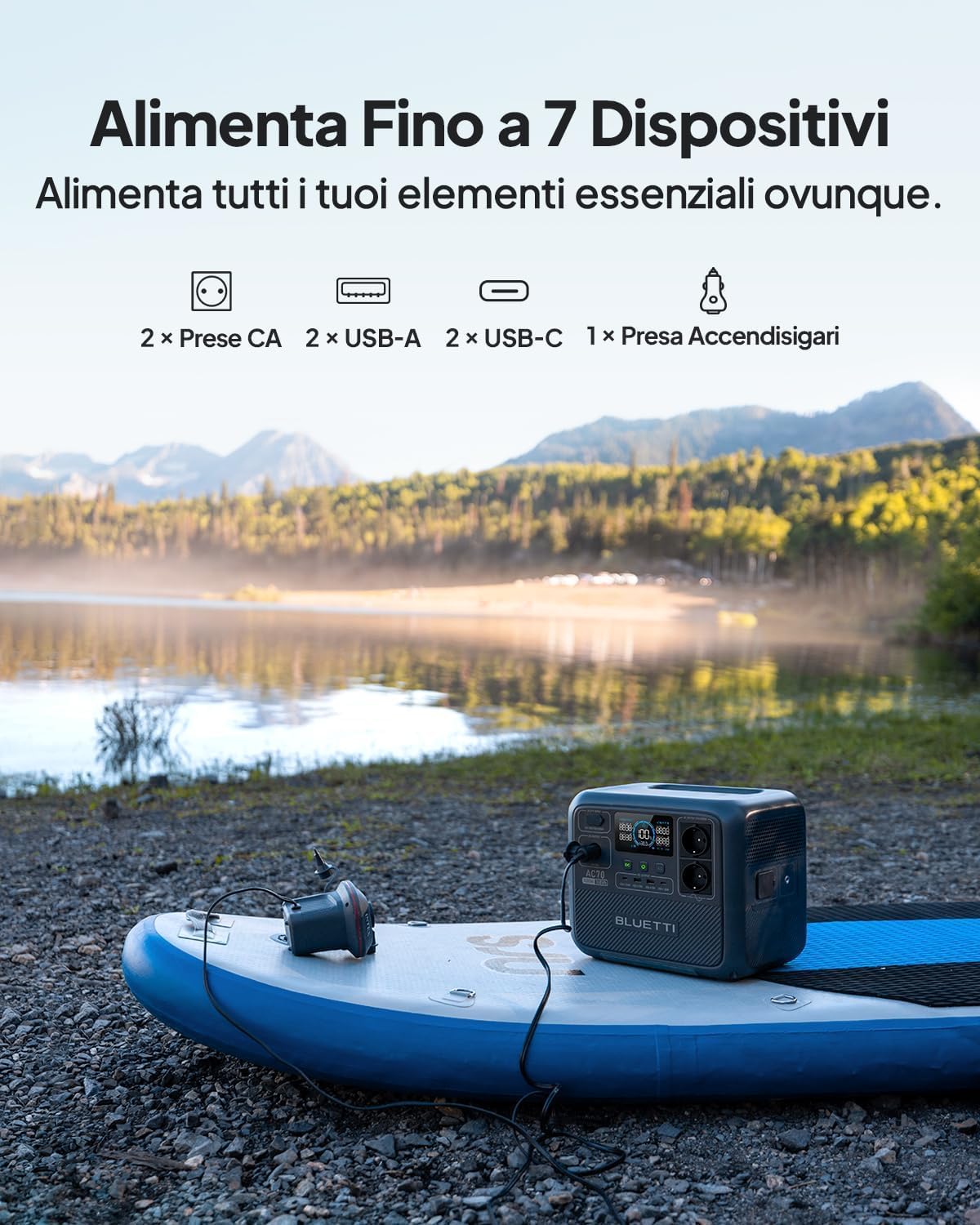 BLUETTI Portable Power Station AC70, 768Wh LiFePO4 Backup Battery, 2 1000W AC Outputs (Power Lifting 2000W) 100W Type-C, 45 minutes from 0 to 80%, Solar Generator for Camping, Travel