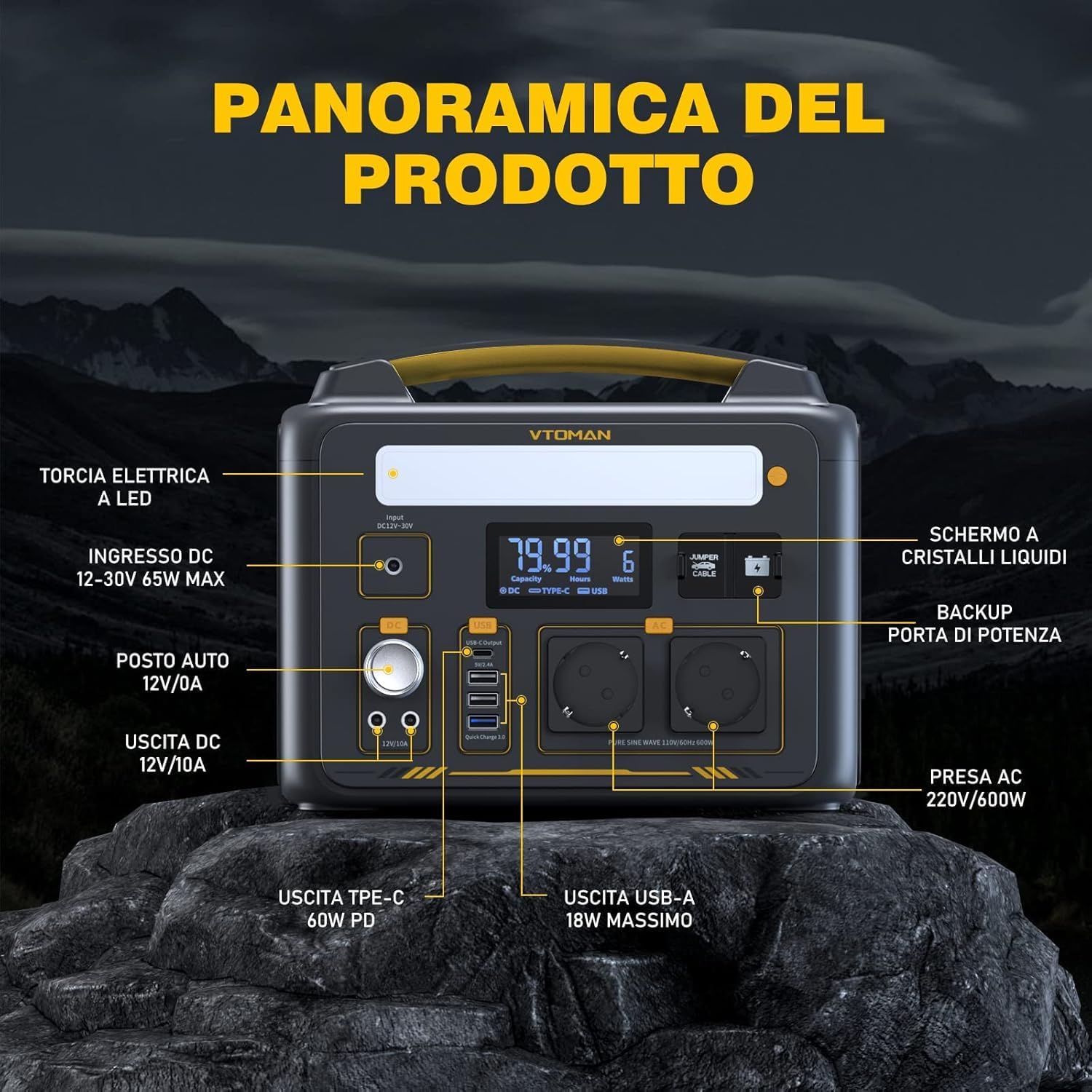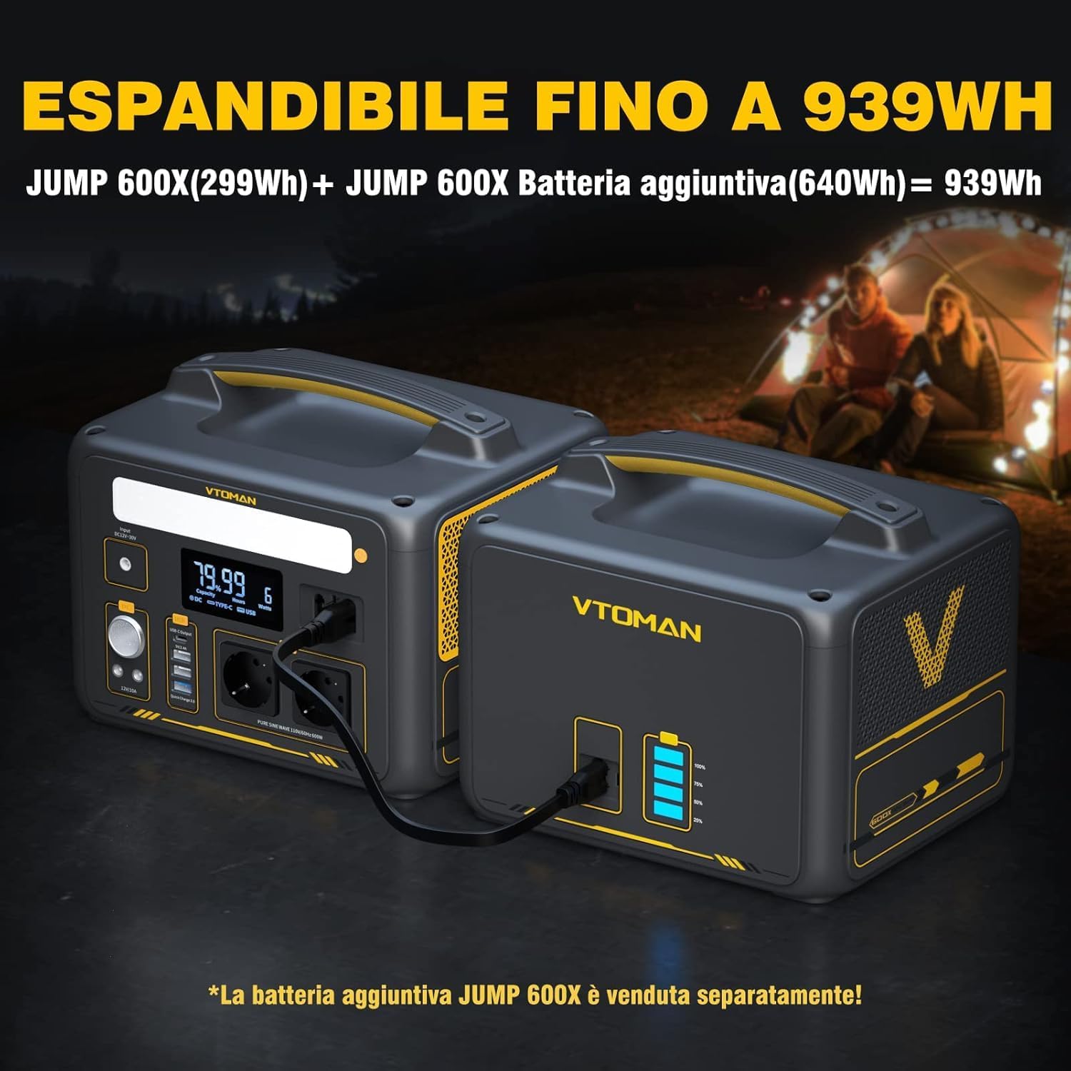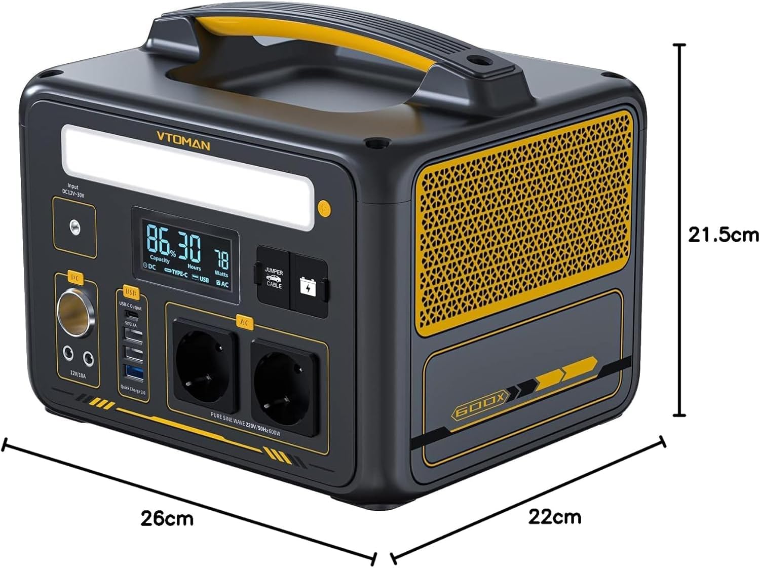 VTOMAN Jump 600X Portable Power Station - 600W/299Wh LiFePO4 Battery Power Station Solar Generator, Expandable Capacity to 939Wh, for Camping, Emergency, Travel