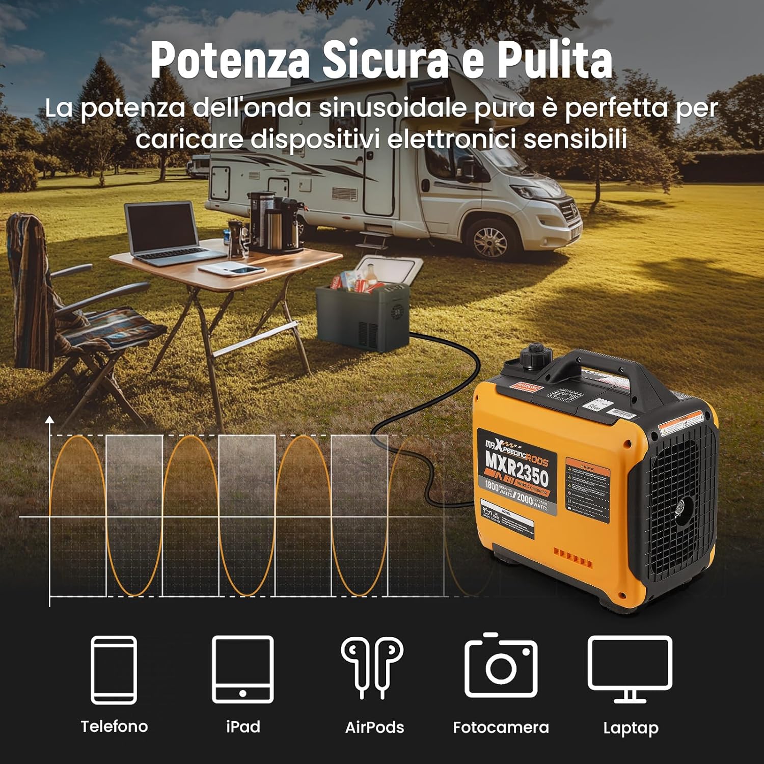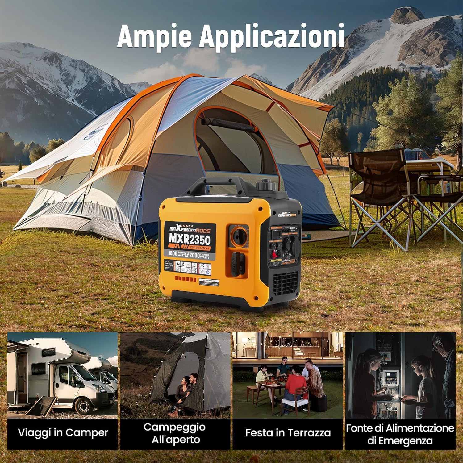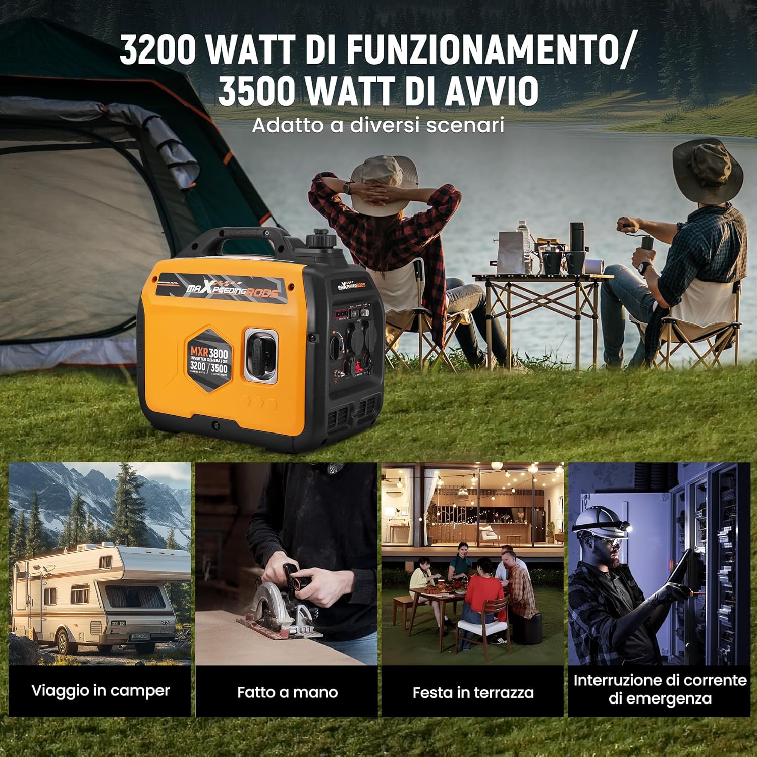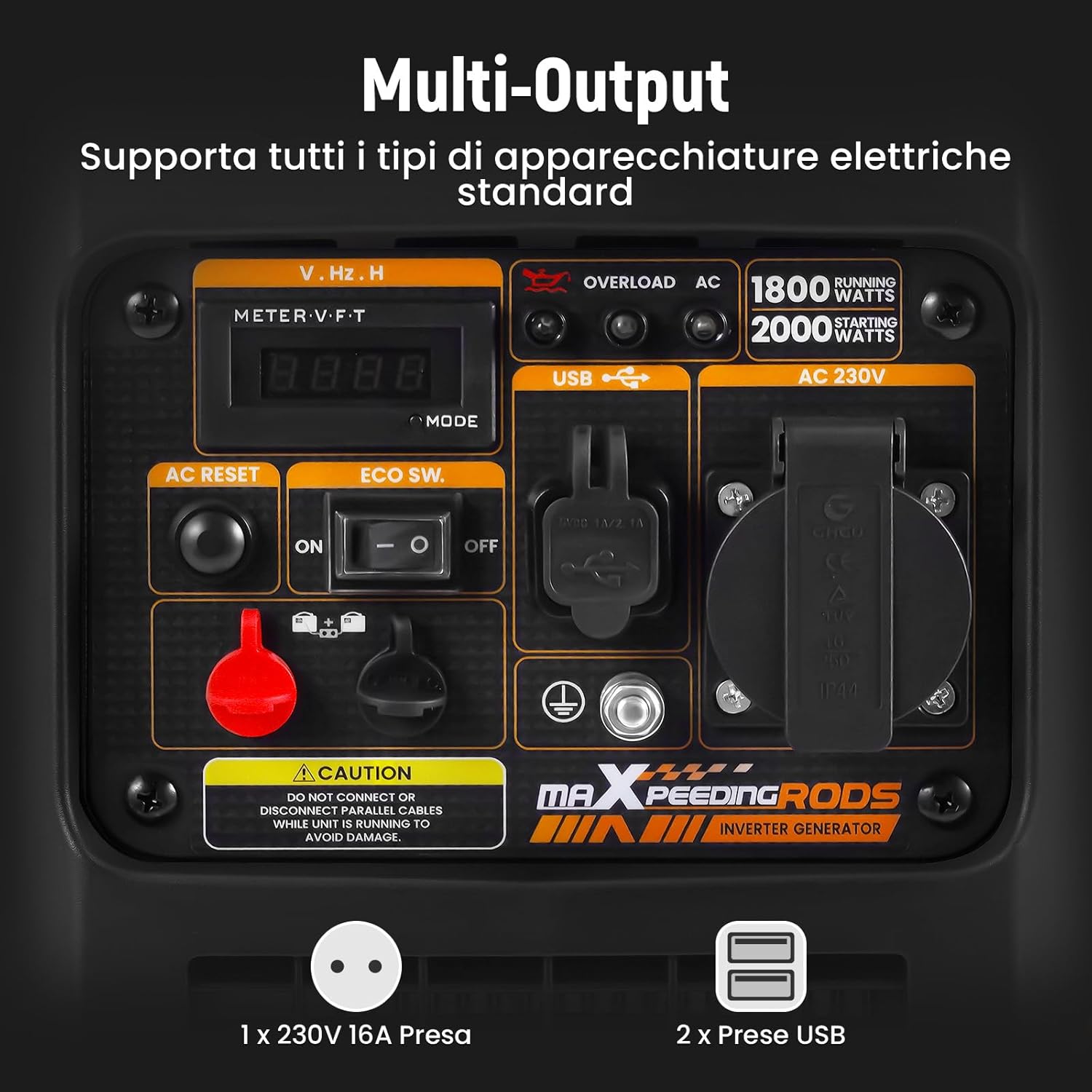 maXpeedingrods 2000W Inverter Power Generator 4 Stroke Petrol Power Generator with USB and 230V Sockets Gigital Display, Compact and Lightweight for Camping, Traveling RV