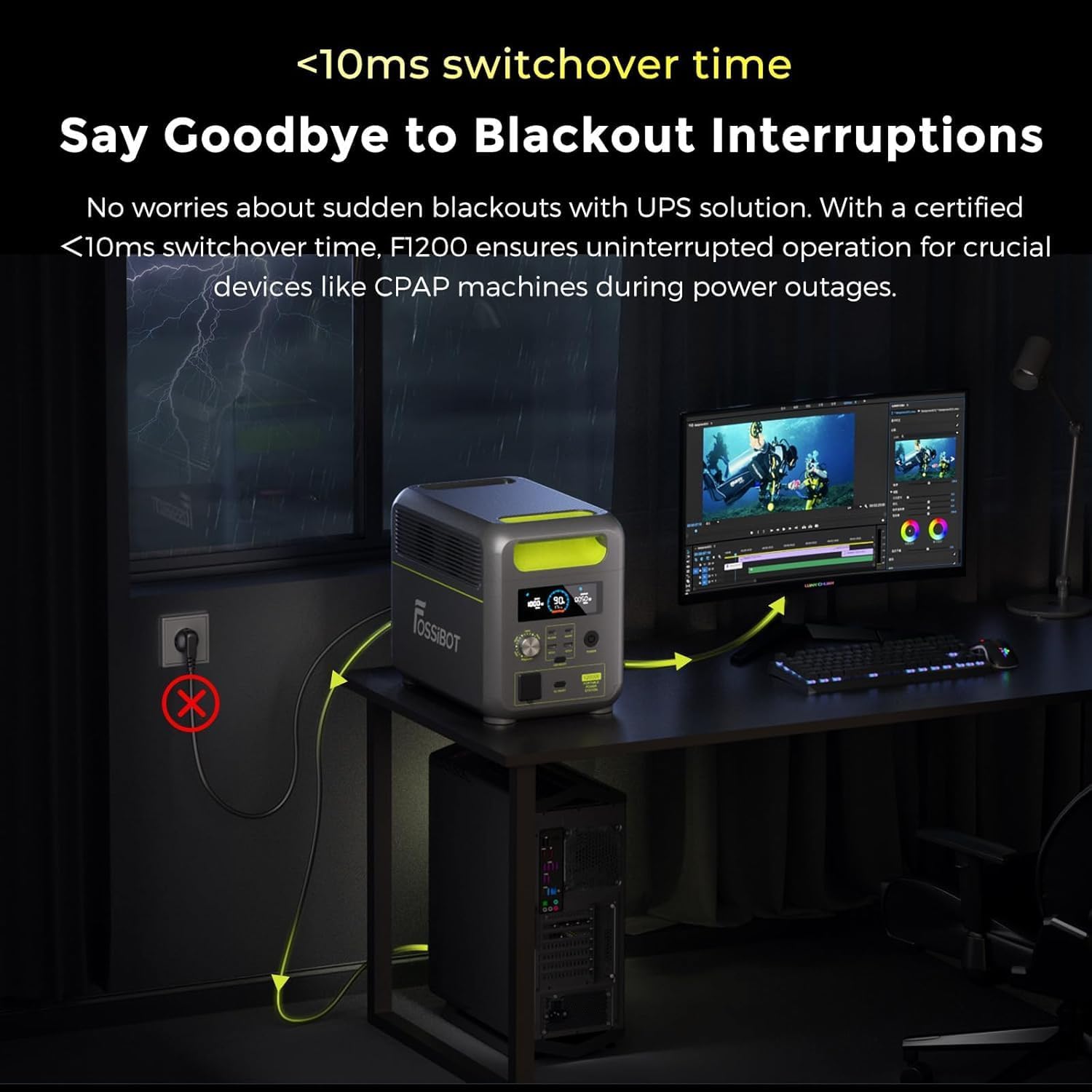 FOSSiBOT F1200 Portable Power Station and Solar Generator, LiFePO4 Backup Battery 1024Wh Power Station, AC 1200W, Suitable for Camper and Outdoor Travel