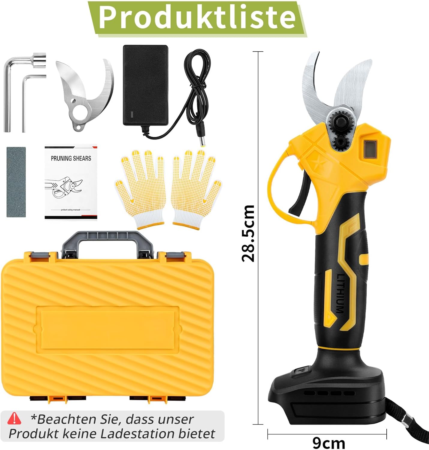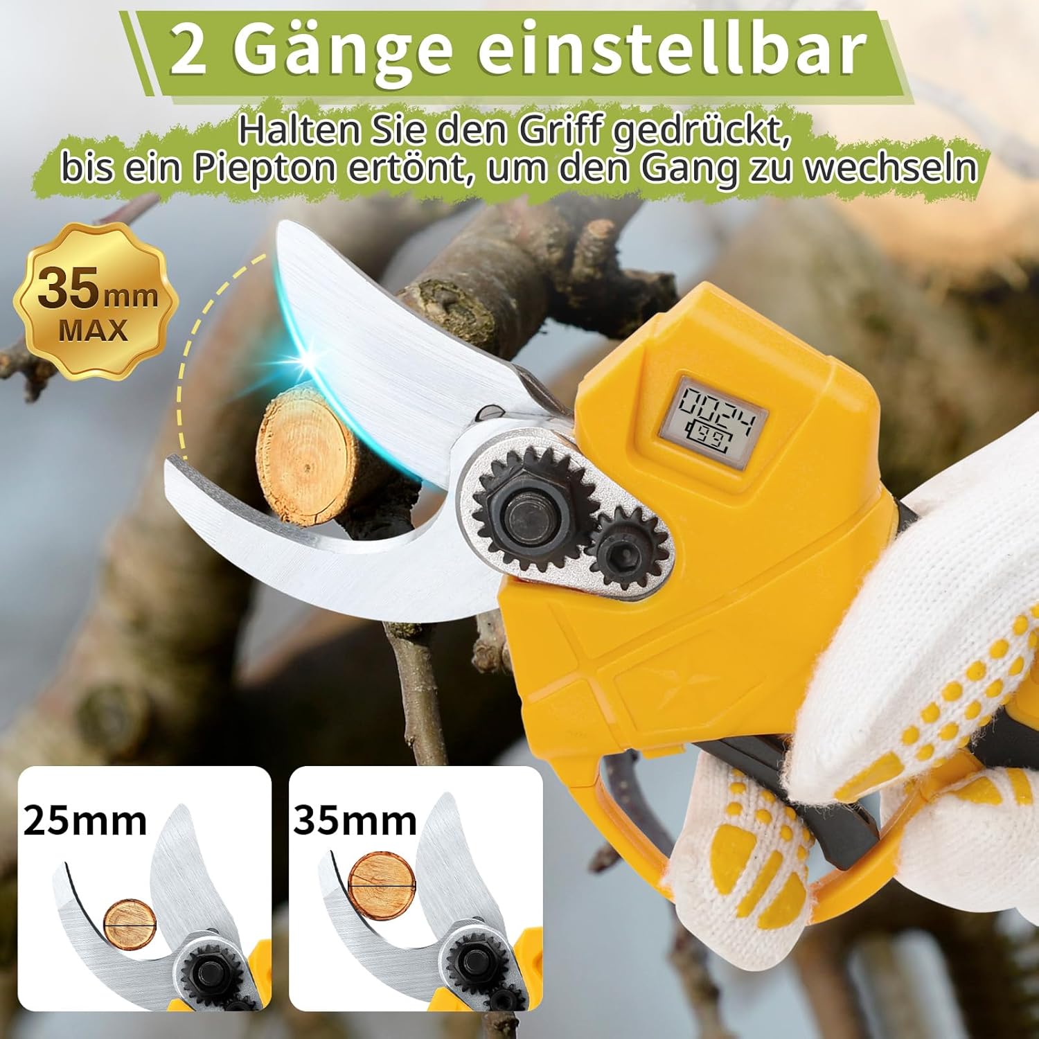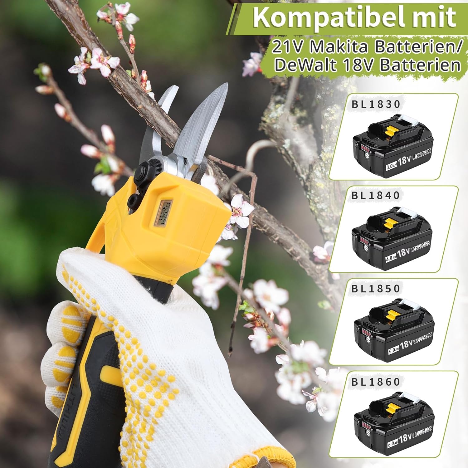 Electric Garden Shears with Battery, 2000mAh Brushless Motor, Bypass + LED Counter as Gift for Women and Men, Electric Pruners, Garden Shears with Battery