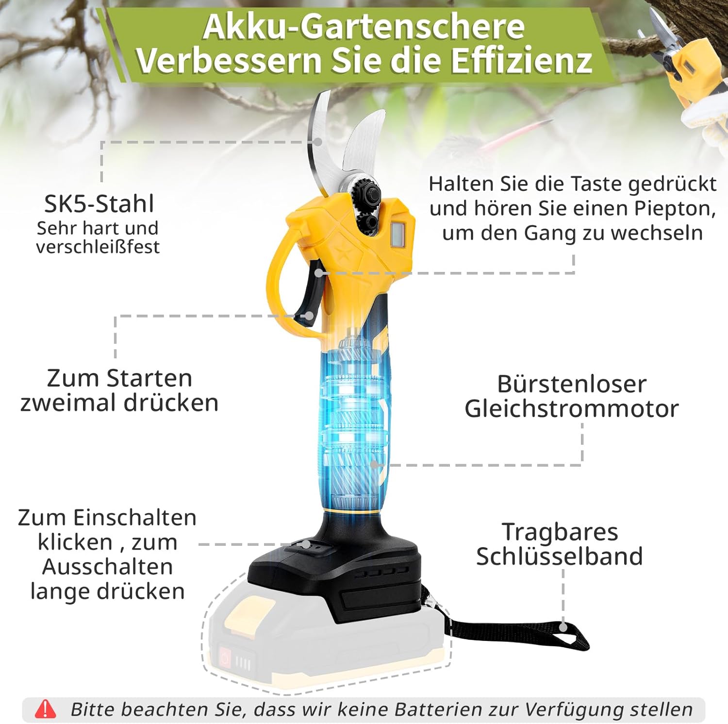 Sentasi Battery Pruning Scissors, Battery Powered Pruning Shears 2000 Mah*2, Cordless Pruning Shears for Pruning 25 mm Cutting Diameter, 500 W Electric Scissors 1-2 Hours Working Time