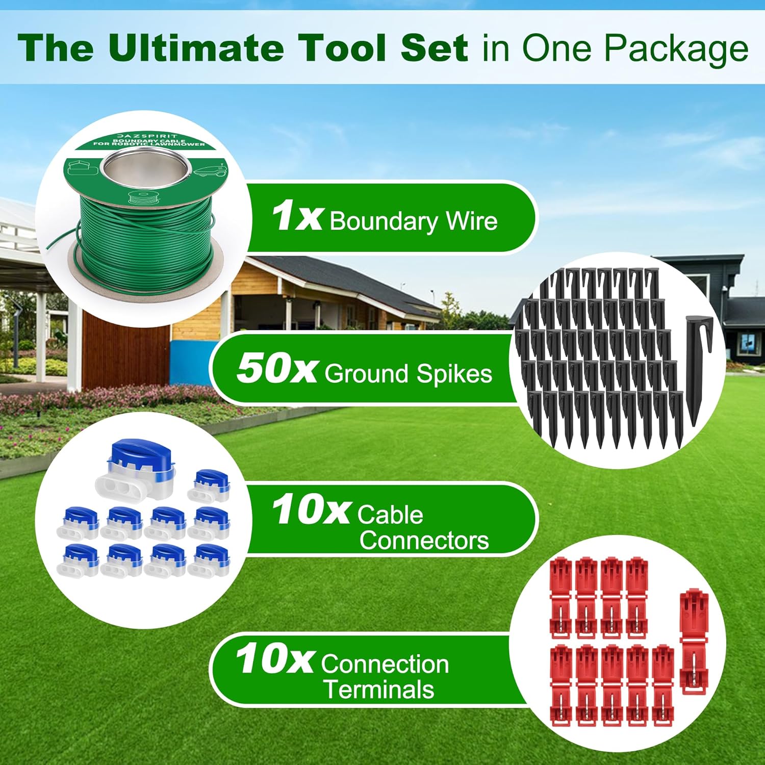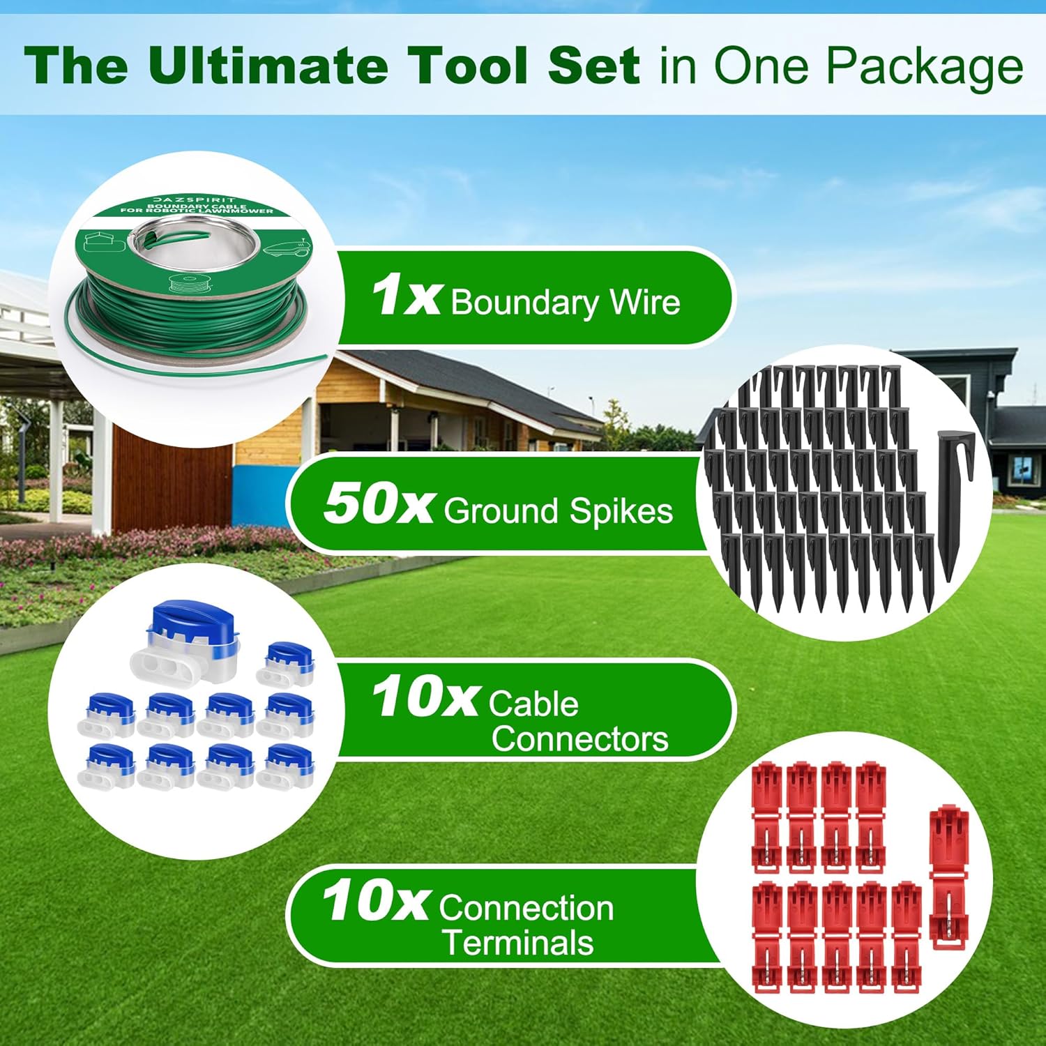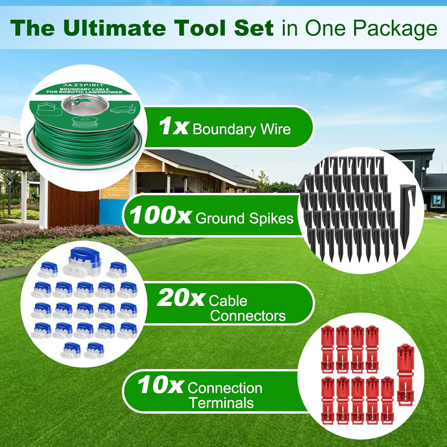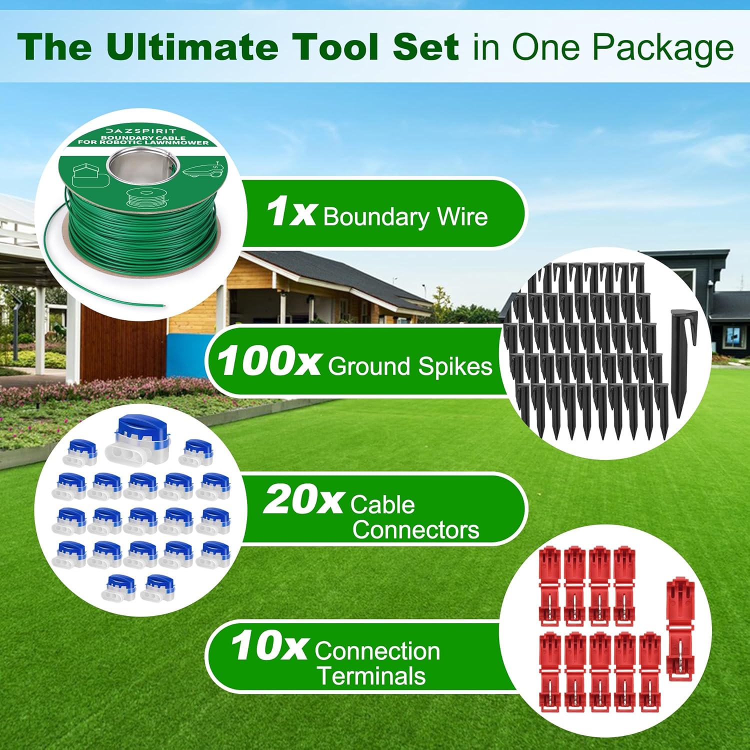 DazSpirit 100 m Perimeter Cable for Robot Lawnmower + 50 Pegs + 10 Connectors, 10 Connection Terminals, Accessory Kit for Electric Lawnmower, Compatible with Gardena Bosch Husqvarna USW
