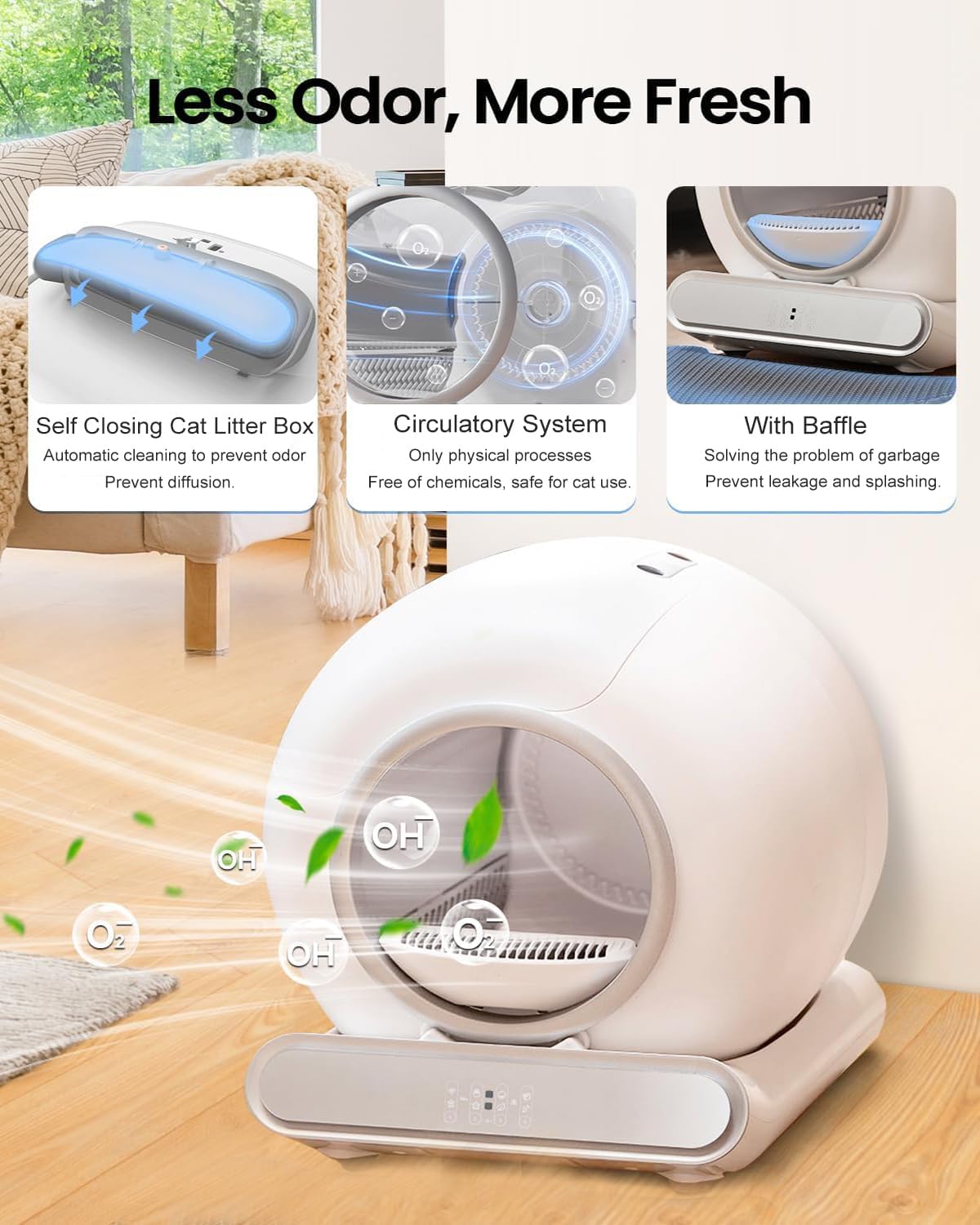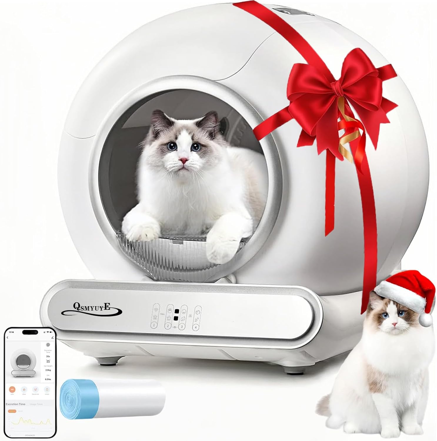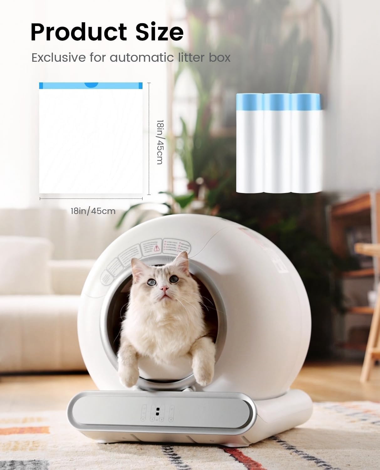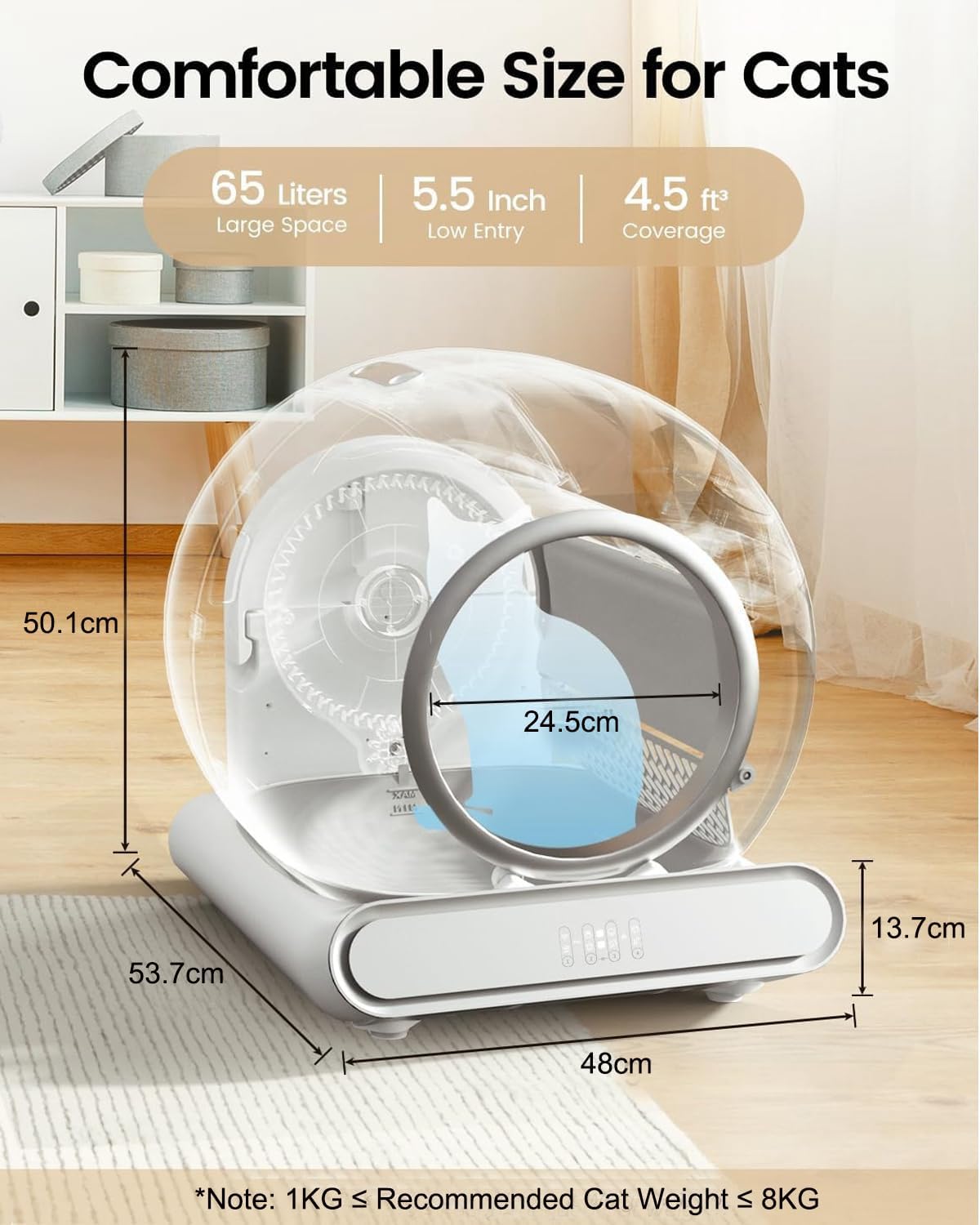 Self Cleaning Cat Litter Box, 65 Litter Box for Smart Cats, Security, App Control, Wi-Fi-Enabled Cat Box, with Garbage Bags, Easy Cleaning