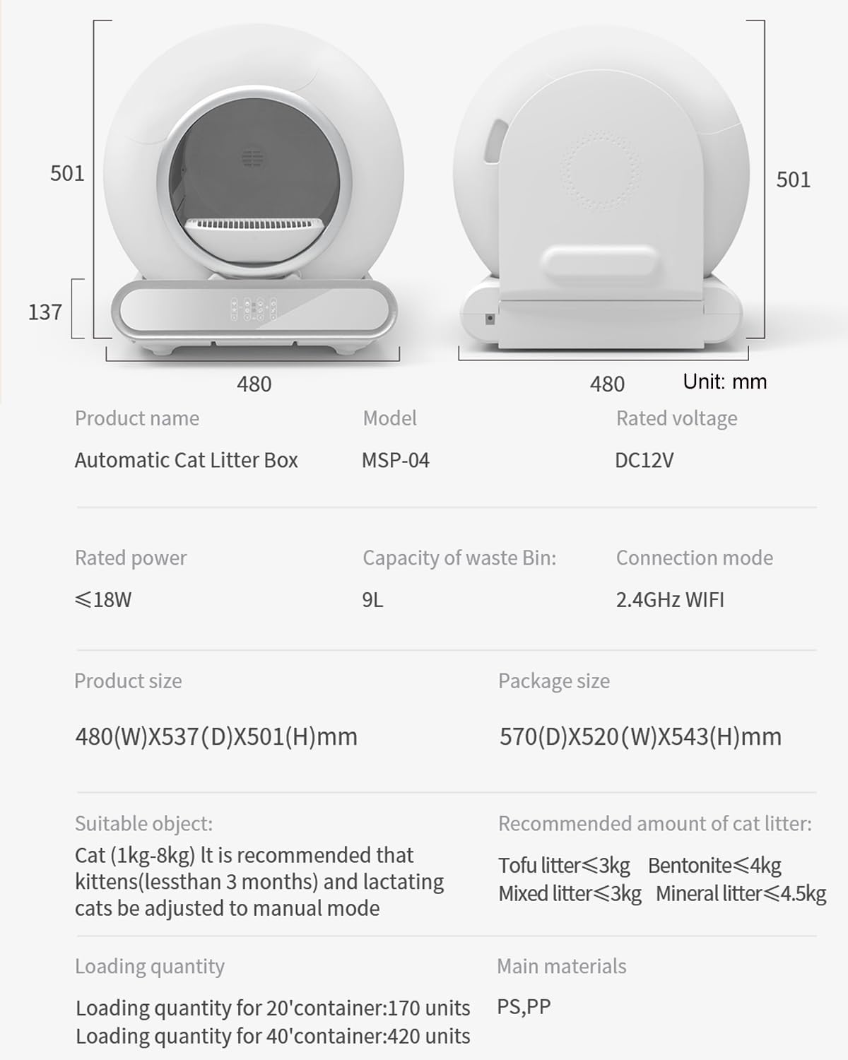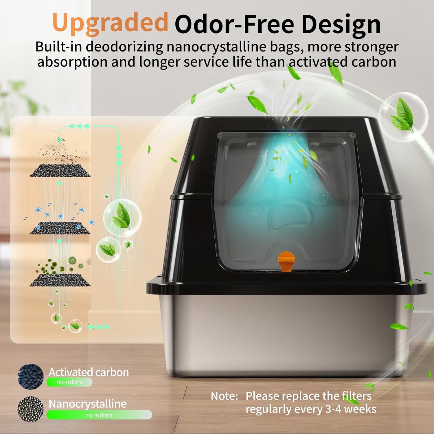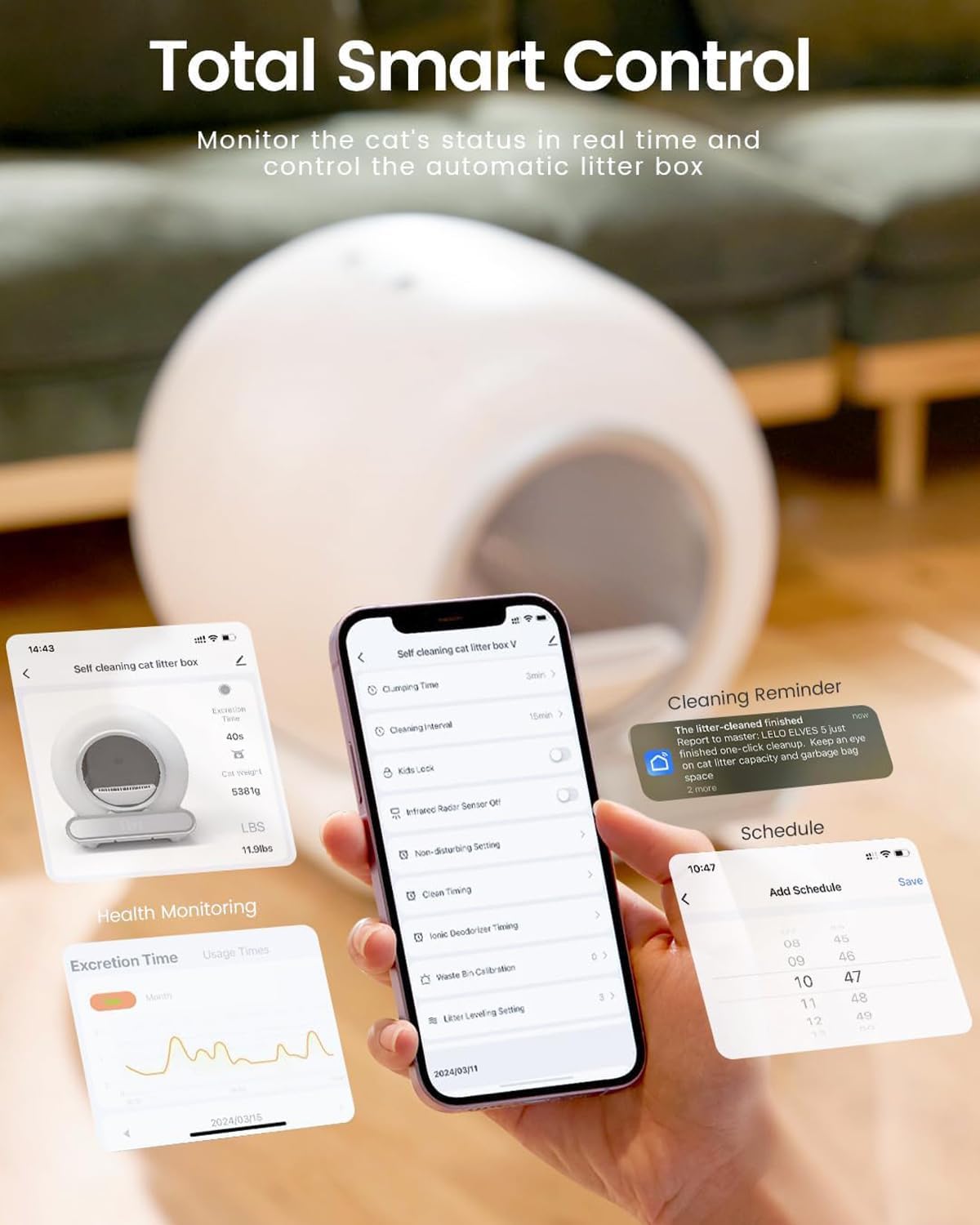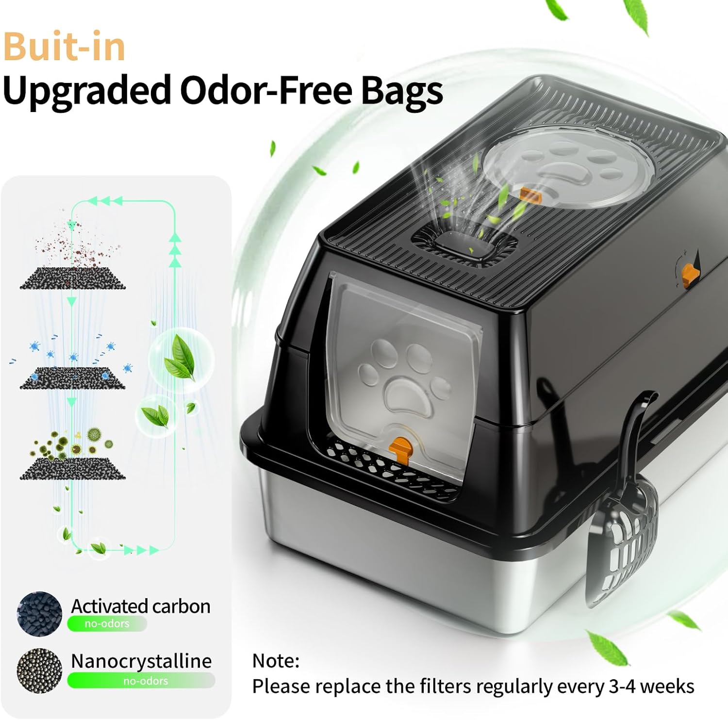 Self Cleaning Cat Litter Box, 65 Litter Box for Smart Cats, Security, App Control, Wi-Fi-Enabled Cat Box, with Garbage Bags, Easy Cleaning