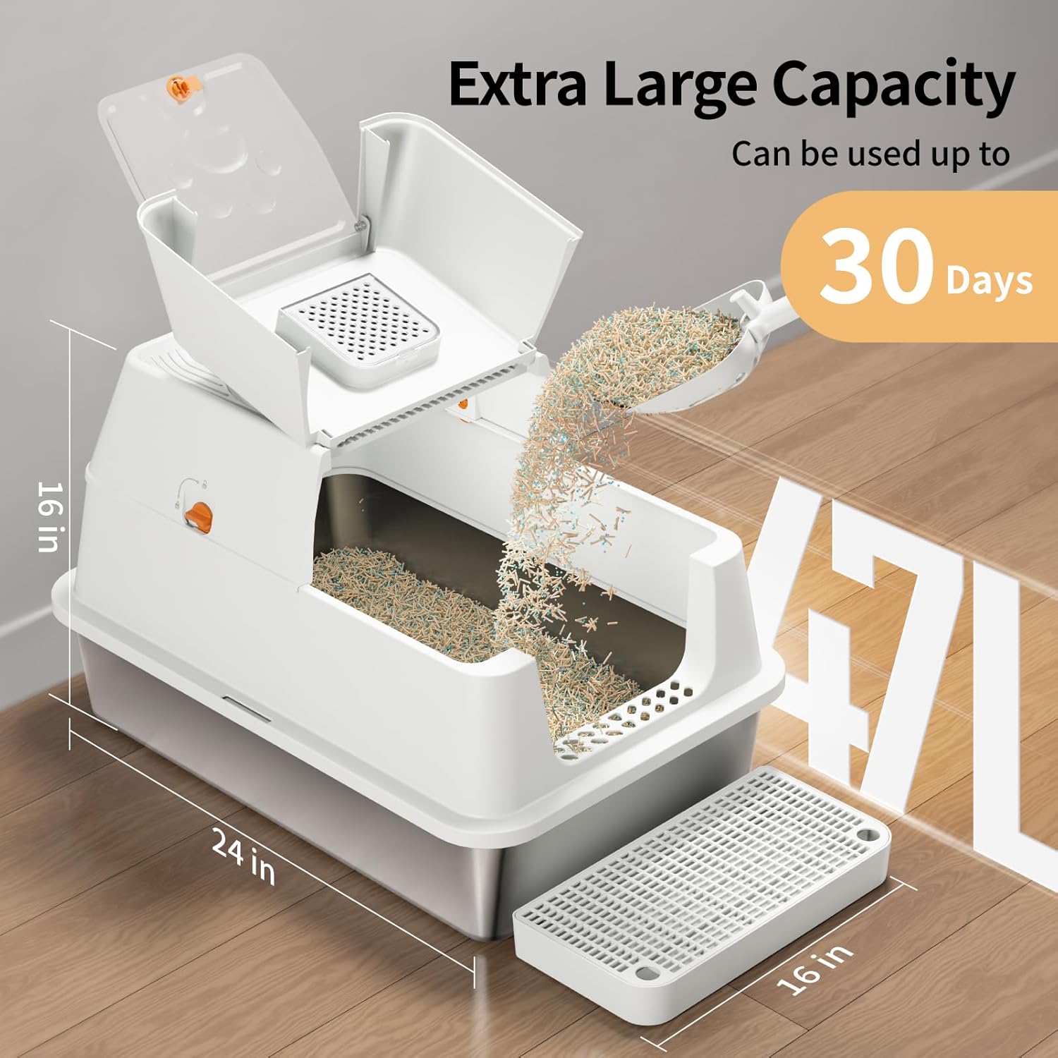 PetPivot Self Cleaning Litter Tray with Open Design, Automatic and Manual Modes, Instant Cleaning and Simple Shovel, Ideal for Large Cats, Suitable for Multi Cat Families