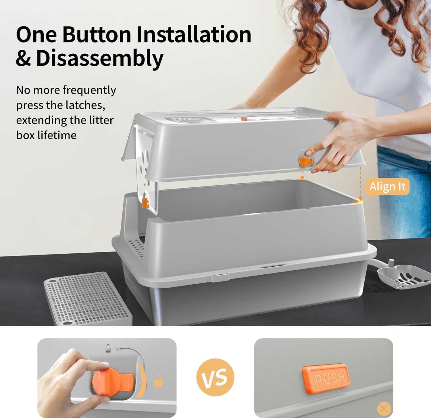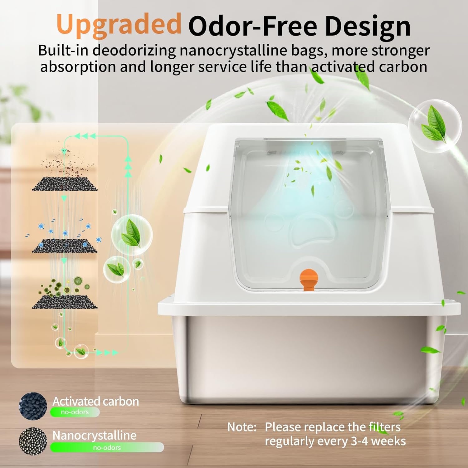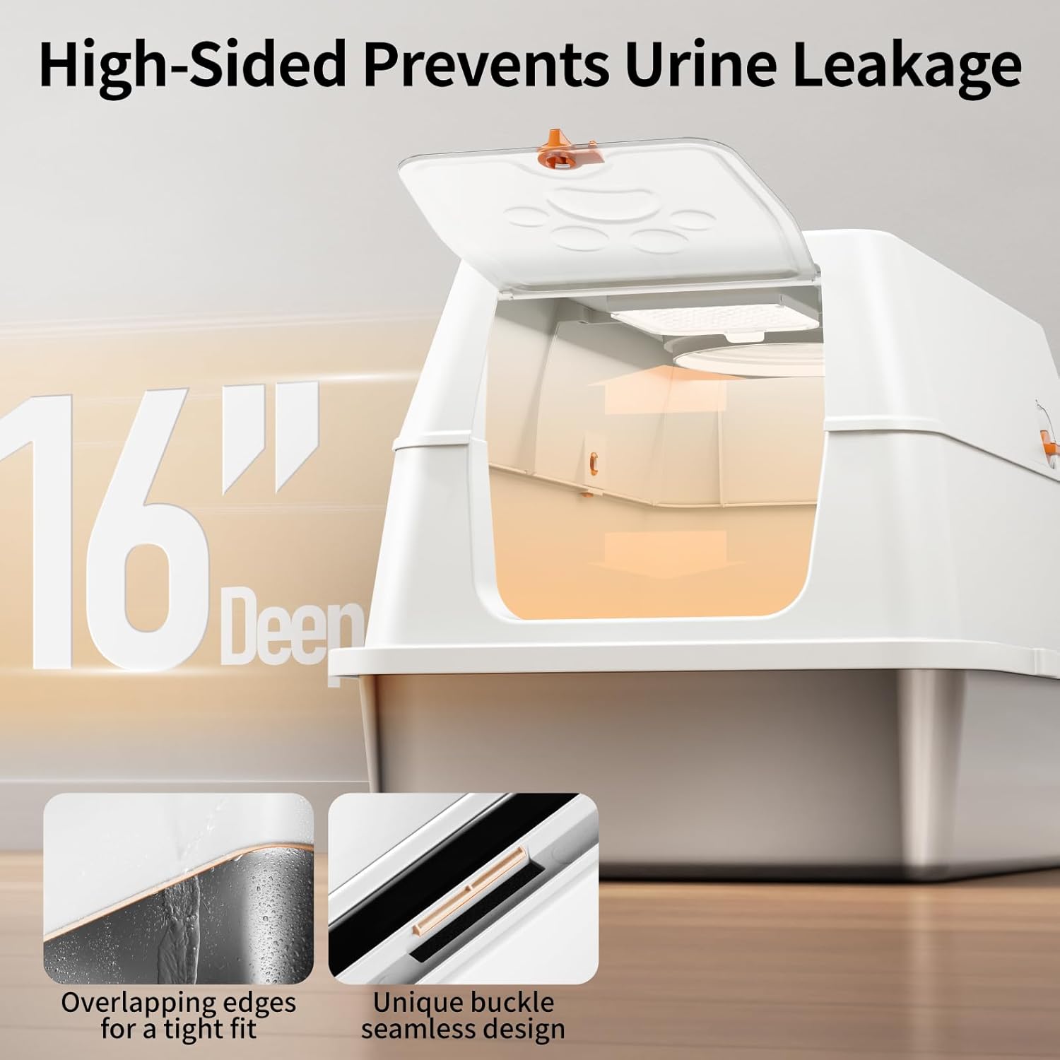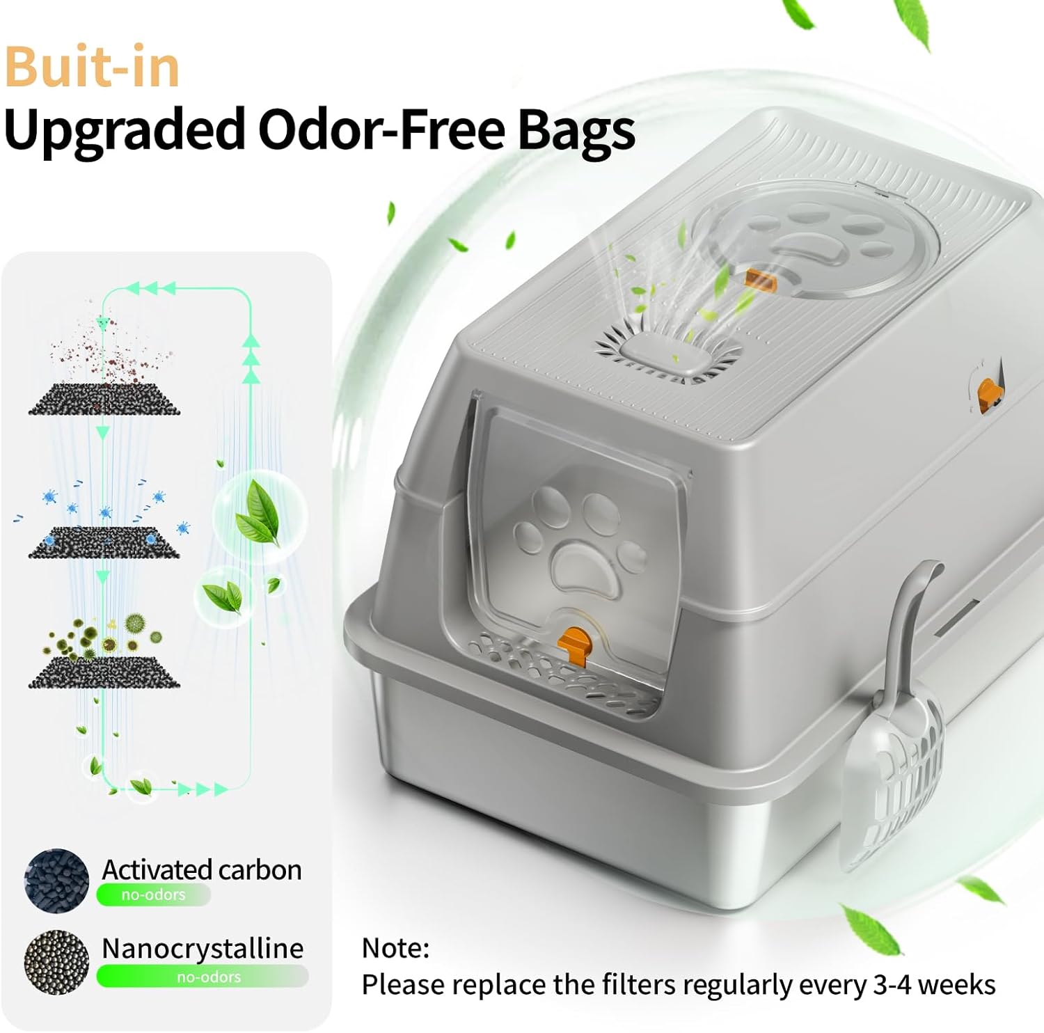 Feandrea Lettiera per Gatti in Acciaio Inossidabile con Coperchio Ribaltabile, Lettiera Chiusa XL Anti Perdite, Paletta, Spazzola, Doppio Ingresso, per Gatti fino a 15 kg, Beige Cappuccino PPT005K01