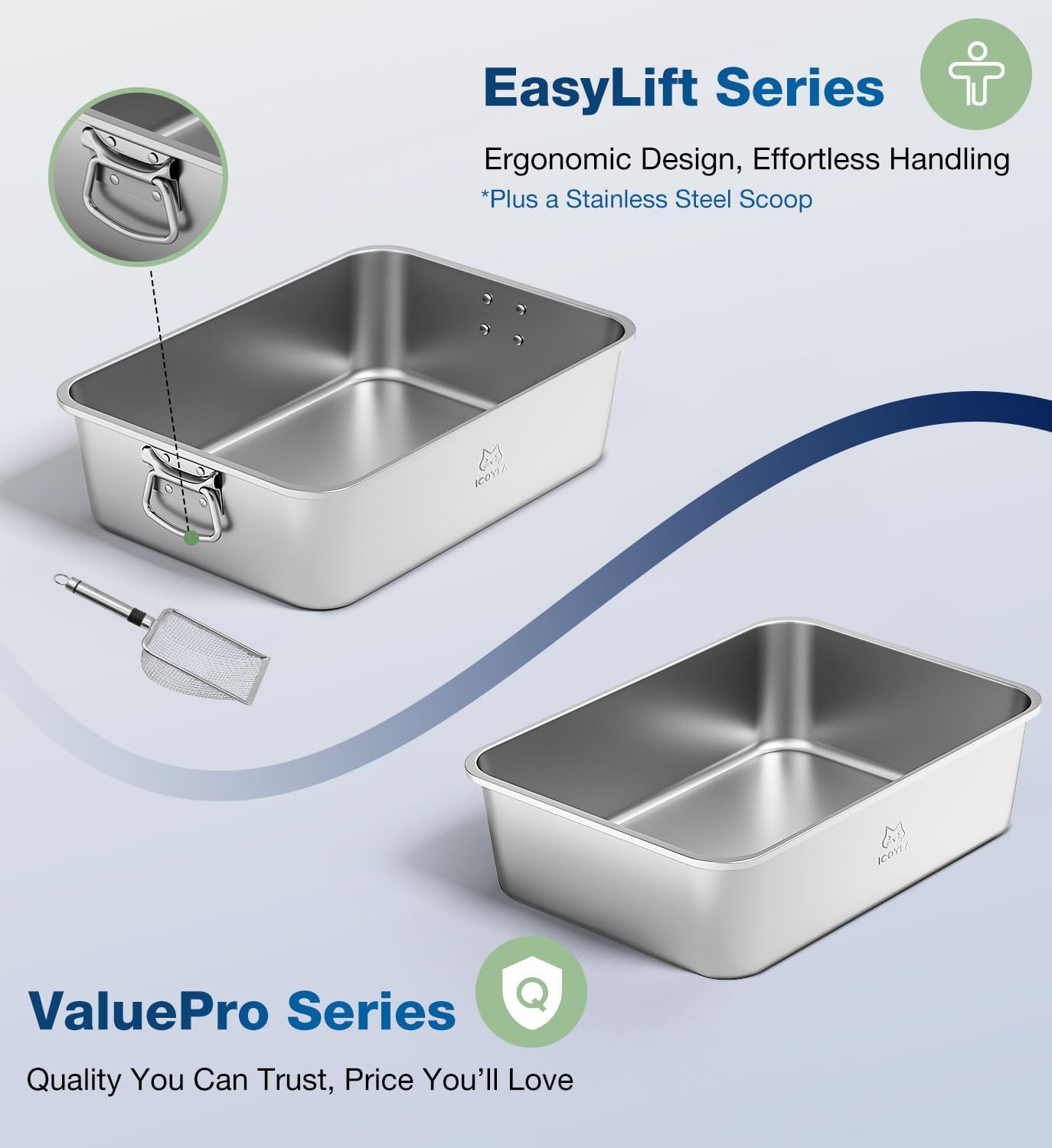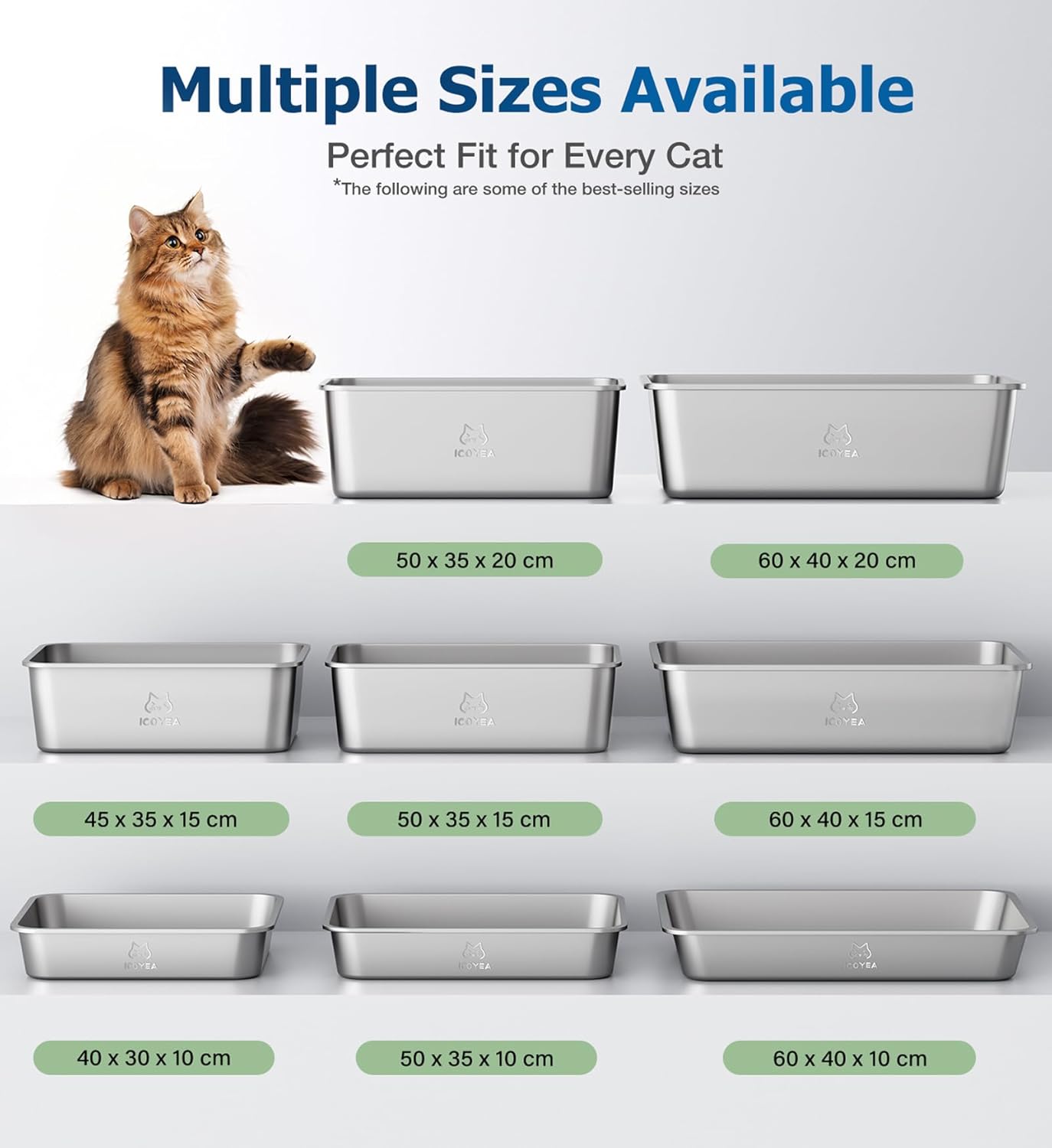 Lettiera Gatto Acciaio Inox, Banaone XL Toilette per Gatti, 20L Paletta Lettiera Gatto con Paletta in Metallo, Lettiera Gatto Aperta per Gatti di Piccola e Media Taglia, Antiaderente, Antiodore (B)