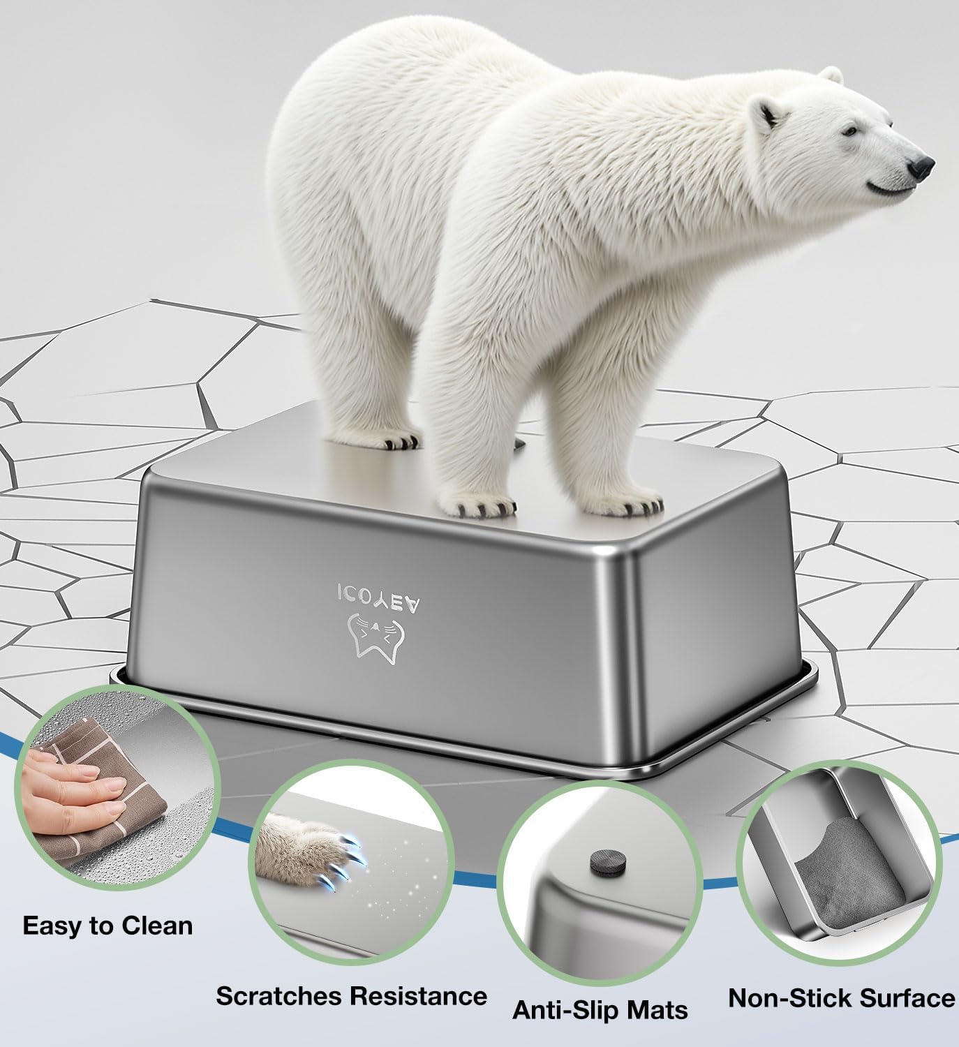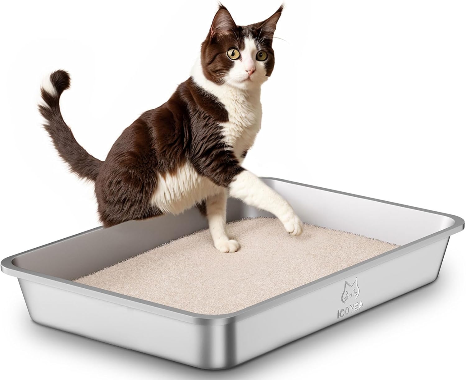 Lettiera per gatti in acciaio inox, lettiera gatto grande per gatti e conigli, non assorbe mai gli odori, antiruggine, superficie liscia antiaderente, fondo in gomma antiscivolo, 19,5"L x 13,5"W x 4"H