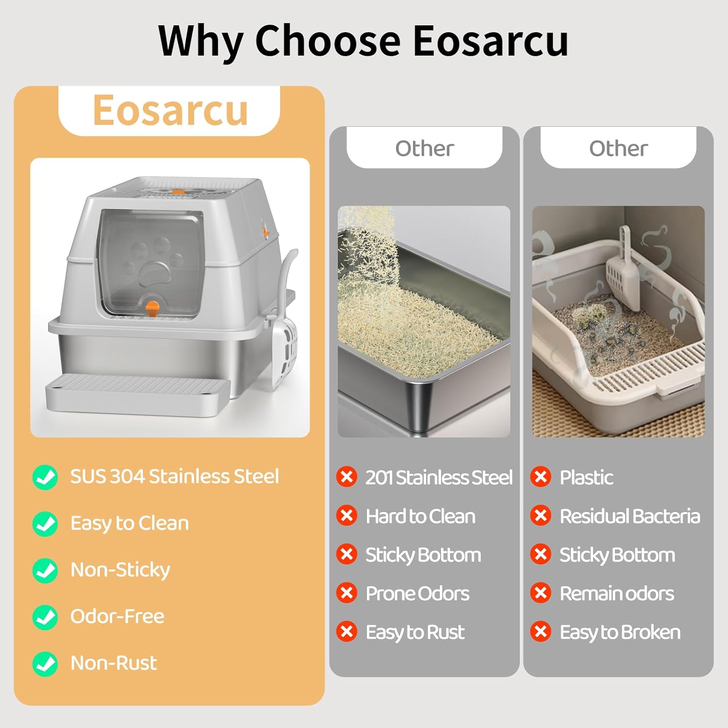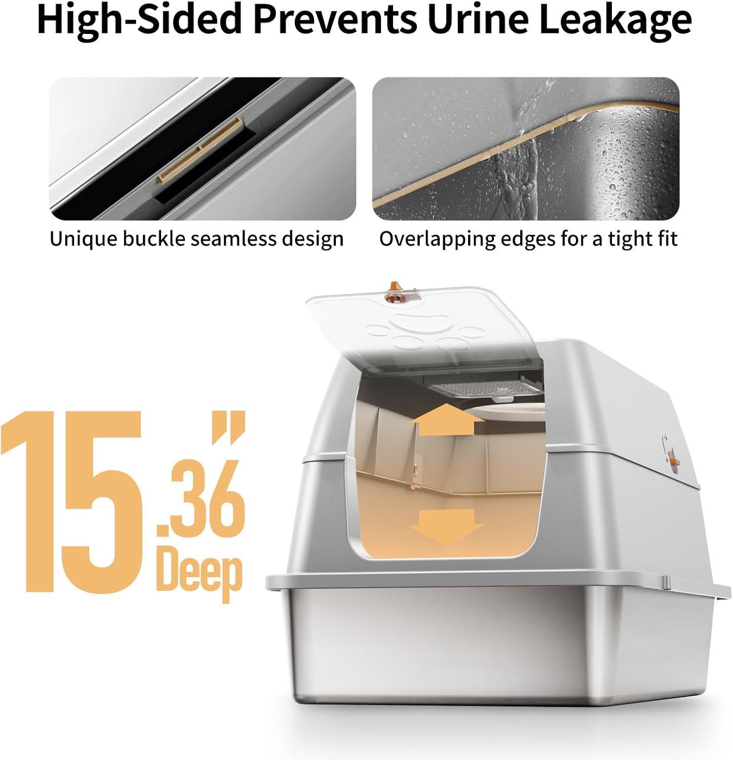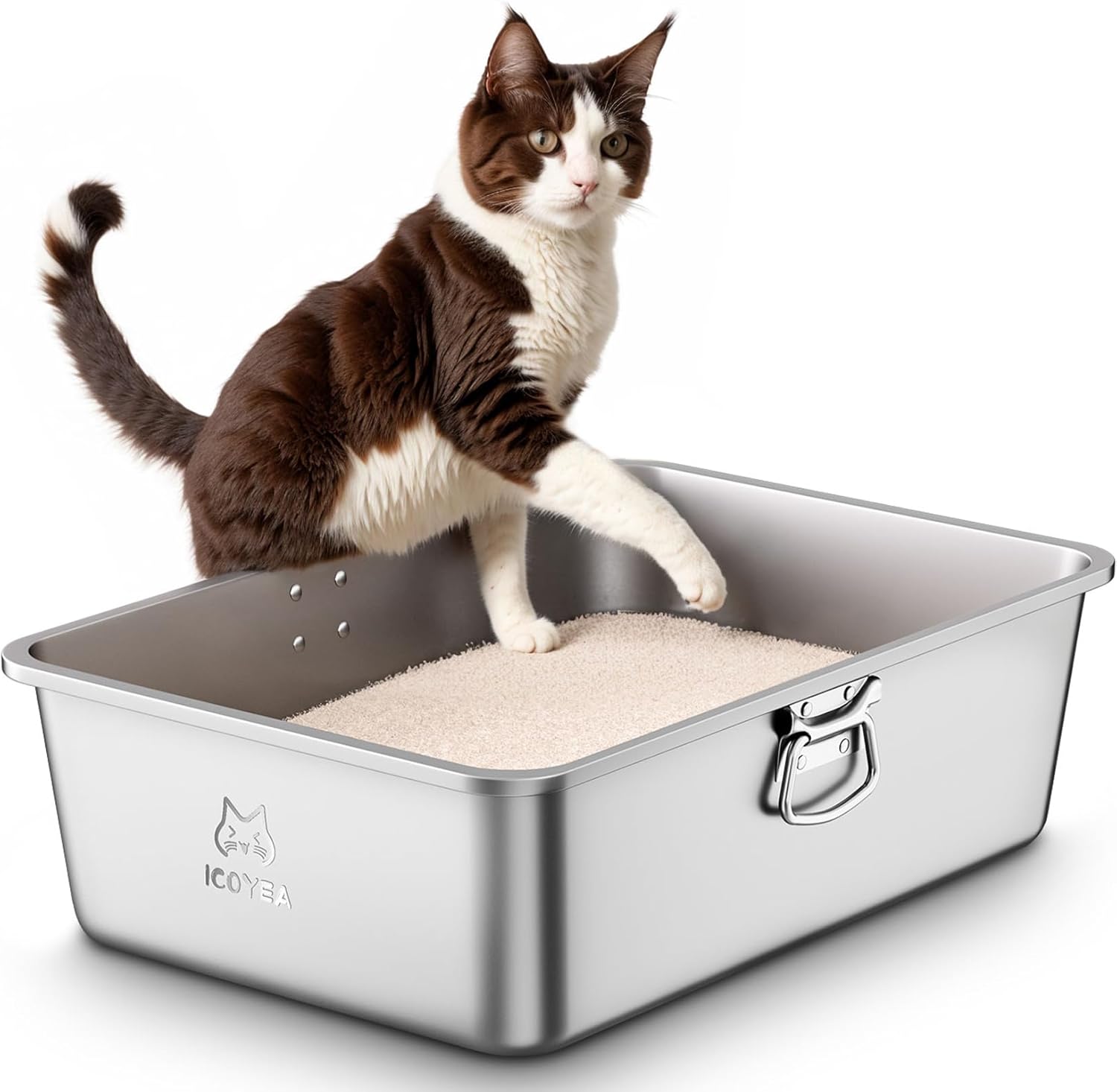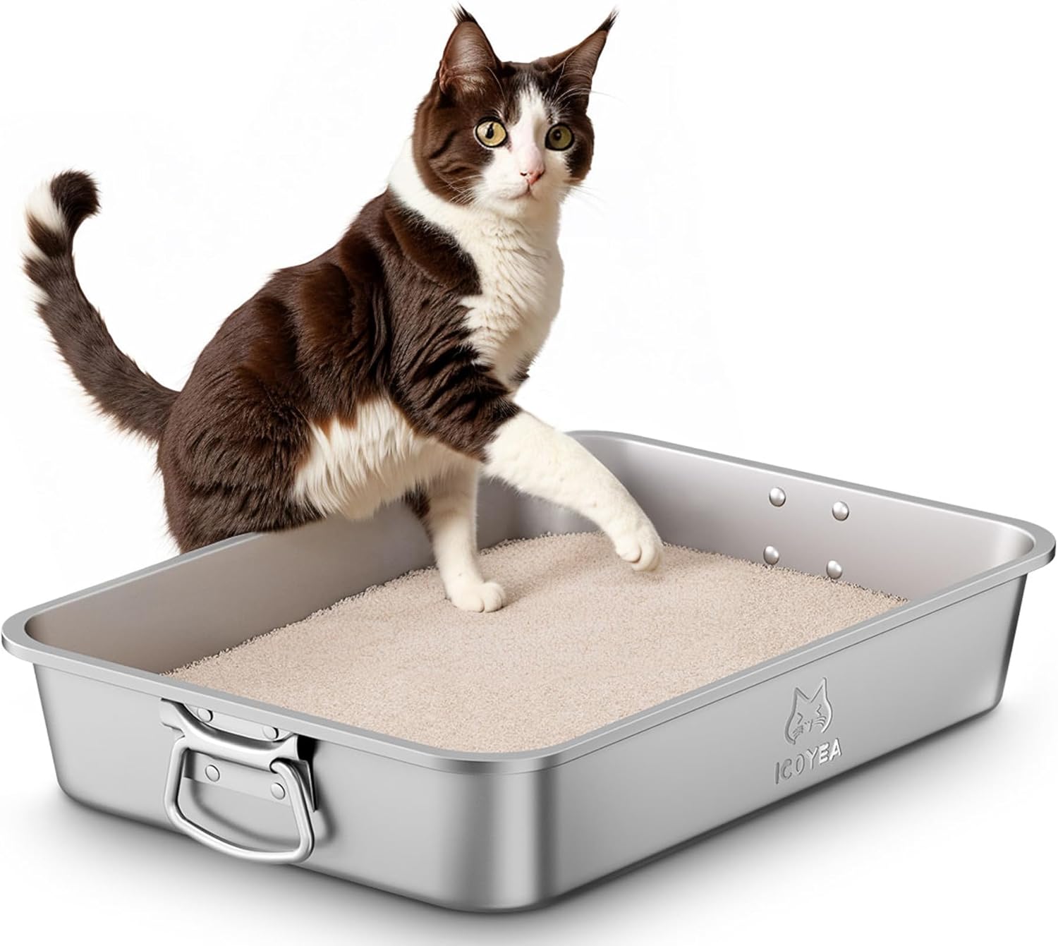 Lettiera Acciaio Inox per Gatti, Lettiera Grande Aperta per Gatto Grandi, Piccoli e Conigli, Lettiera Gatto per Gatti Antiaderente, Facile da Pulire, Sabbiera XXL Alta, Antiodore e Spaziosa