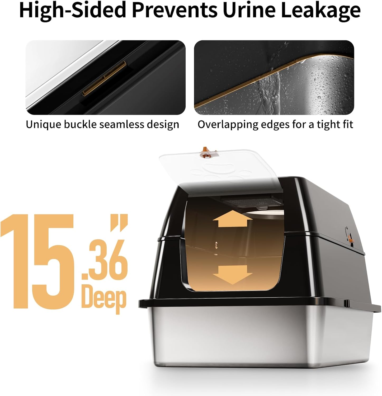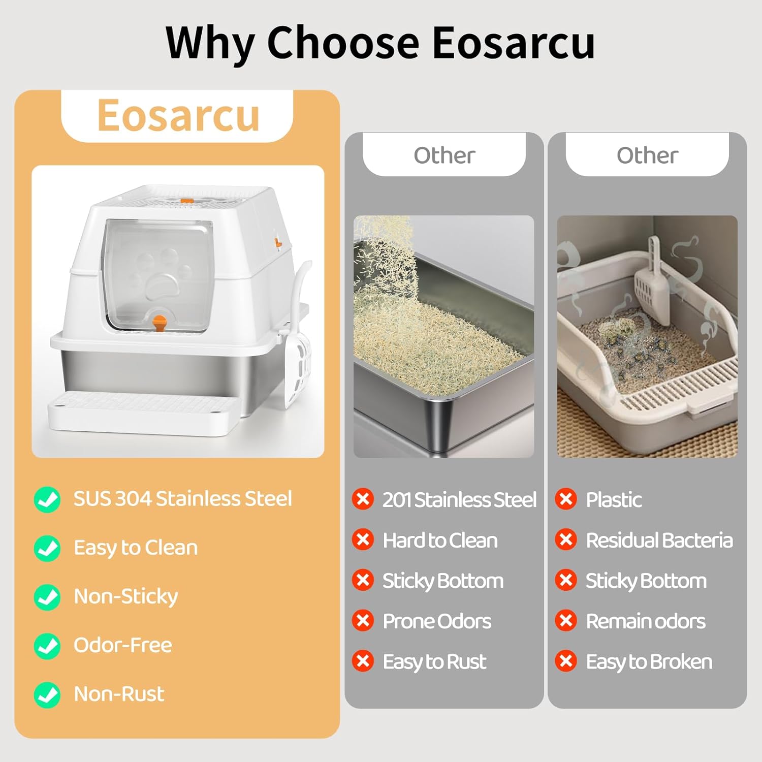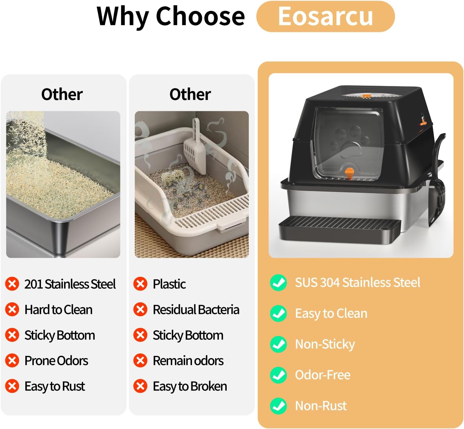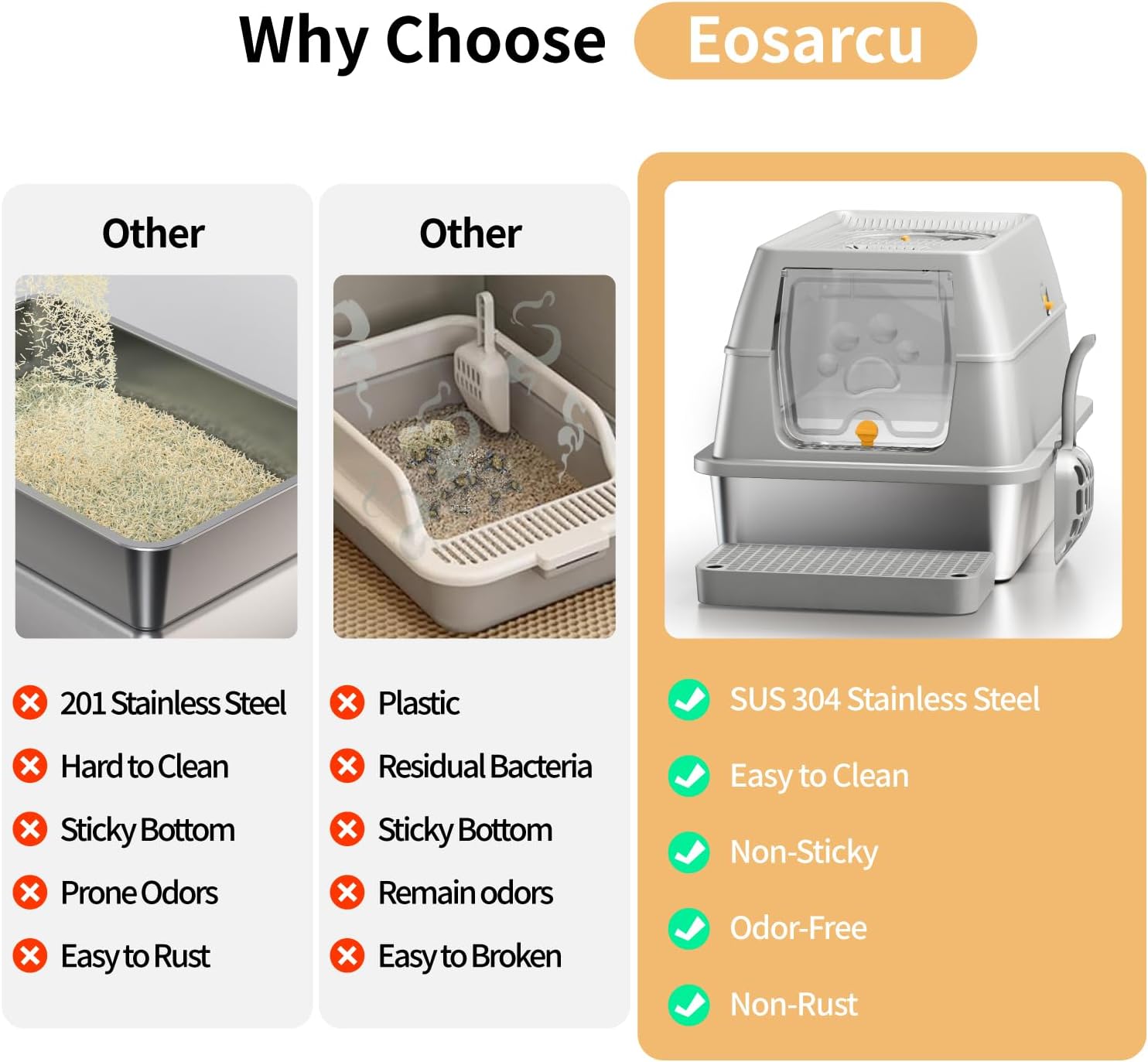 Lettiera Acciaio Inox per Gatti, Lettiera Grande Aperta per Gatto Grandi, Piccoli e Conigli, Lettiera Gatto per Gatti Antiaderente, Facile da Pulire, Sabbiera XXL Alta, Antiodore e Spaziosa