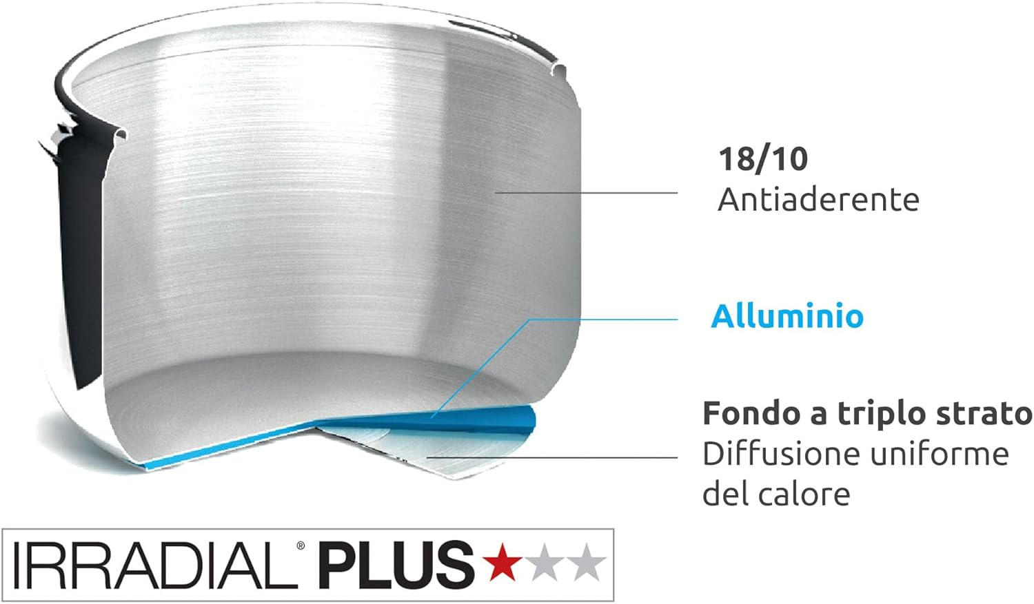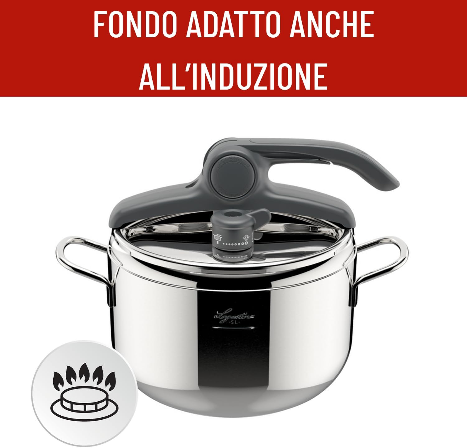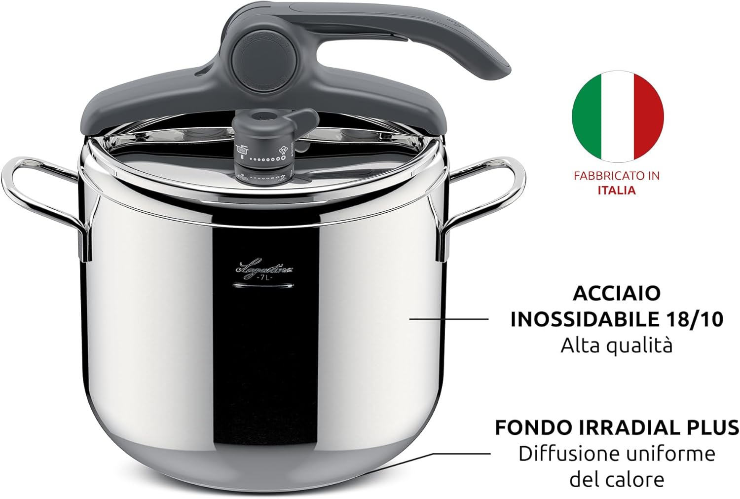 Lagostina Irradial Control Pressure Cooker 5 L Stainless Steel 18/10 Diameter 22 cm, Induction and Gas Pot, Lid with Easy Opening, Irradial Plus Triple Layer Bottom