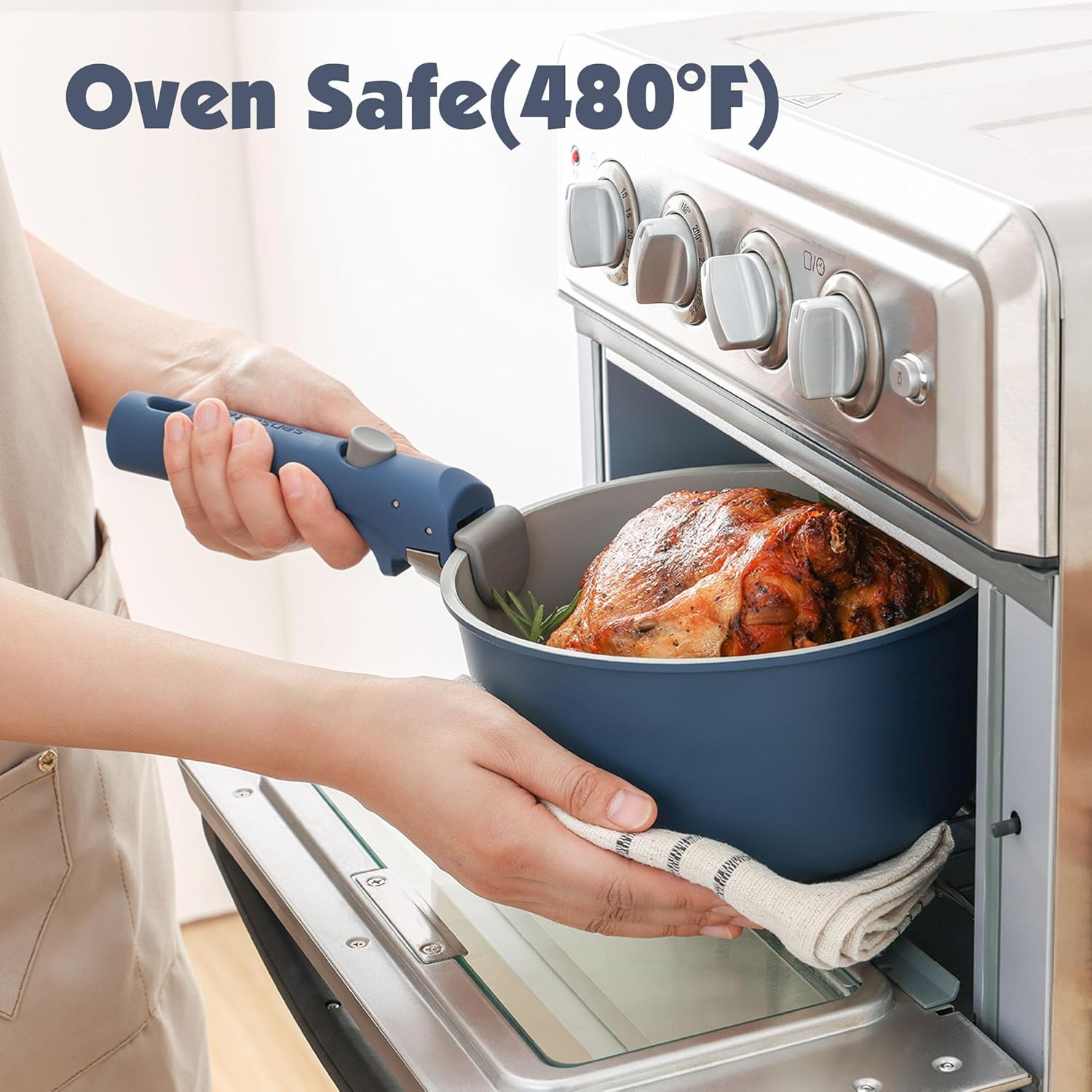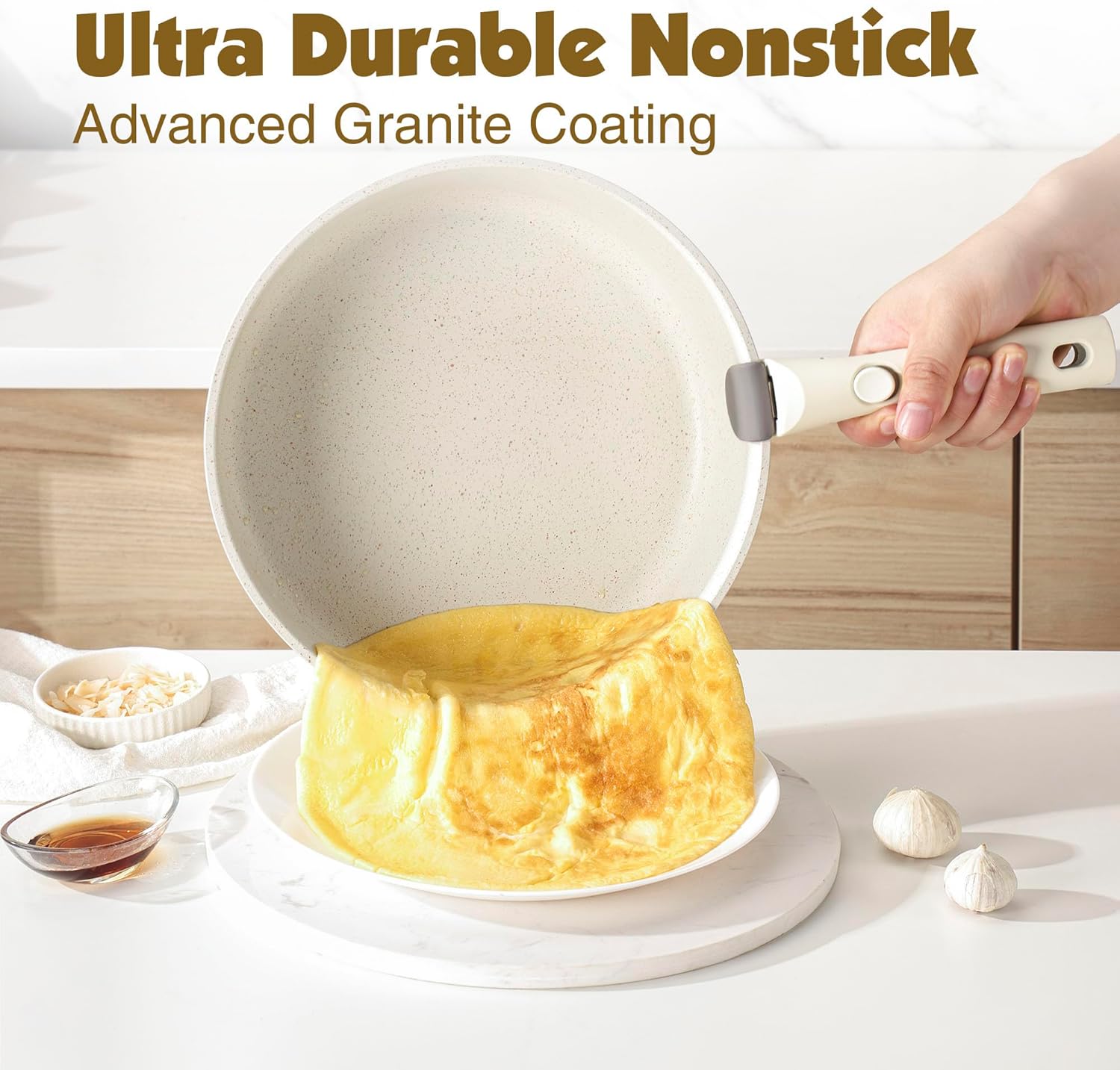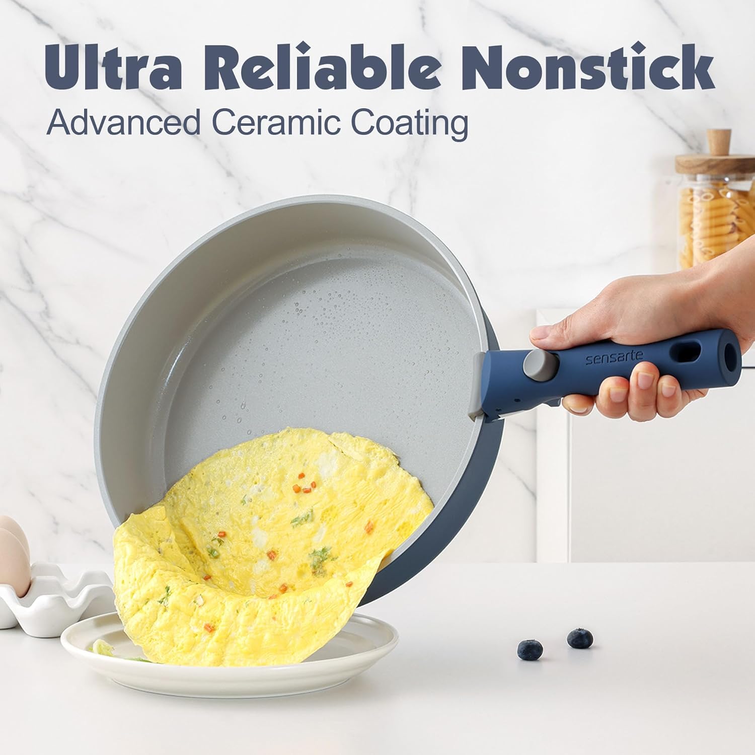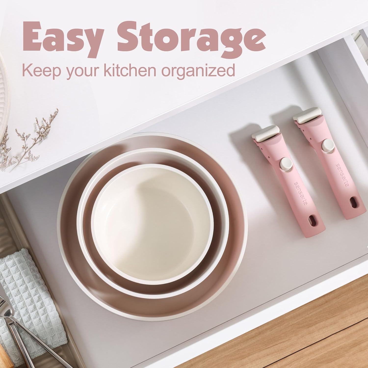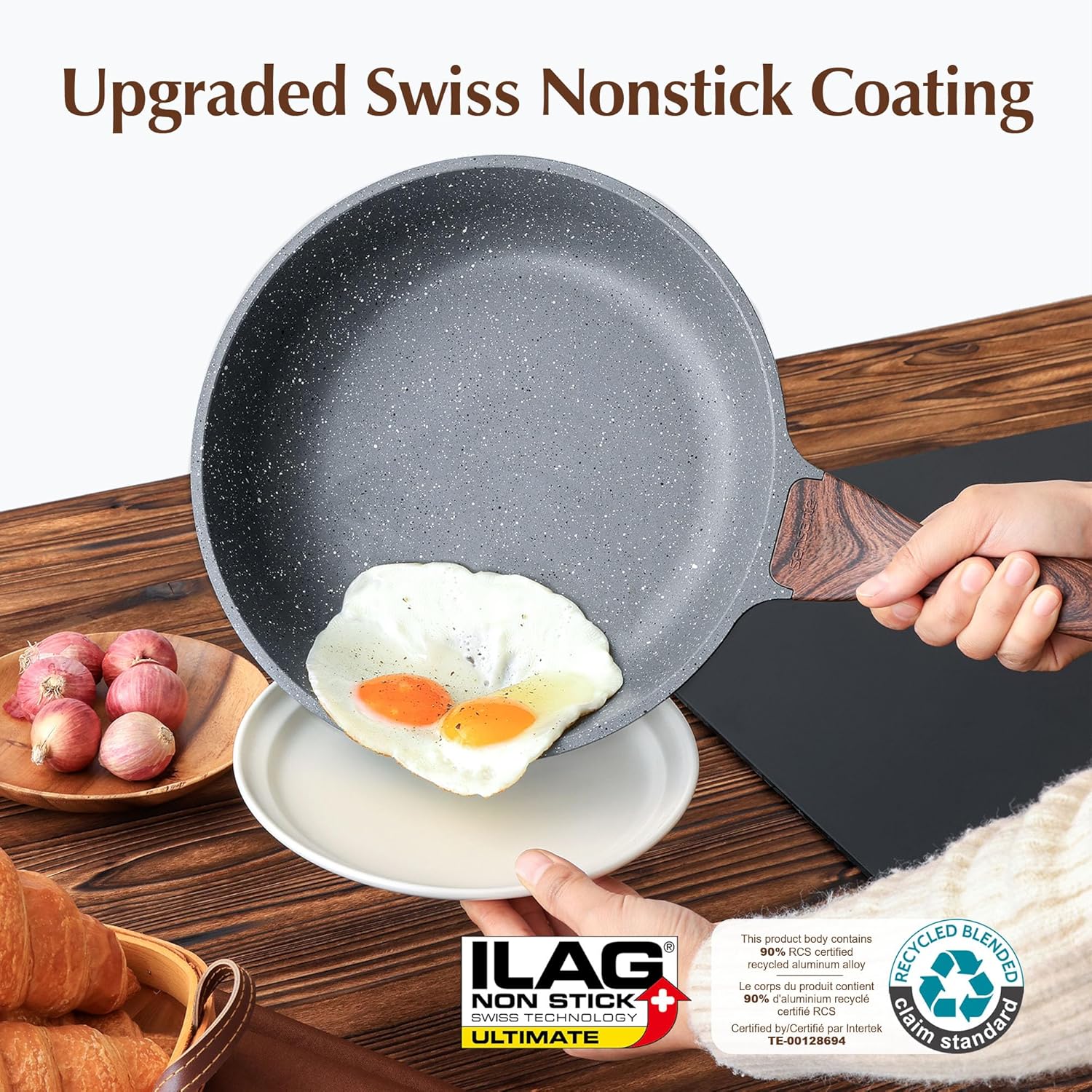 SENSARTE 17 Piece Non-Stick Granite Pan Set with Removable Handles Induction Frying Pan 20/26cm Saucepans 16.5/20cm Wok 26cm Grill Pans 26cm Stackable