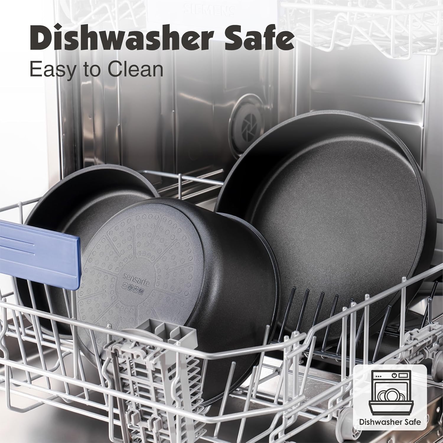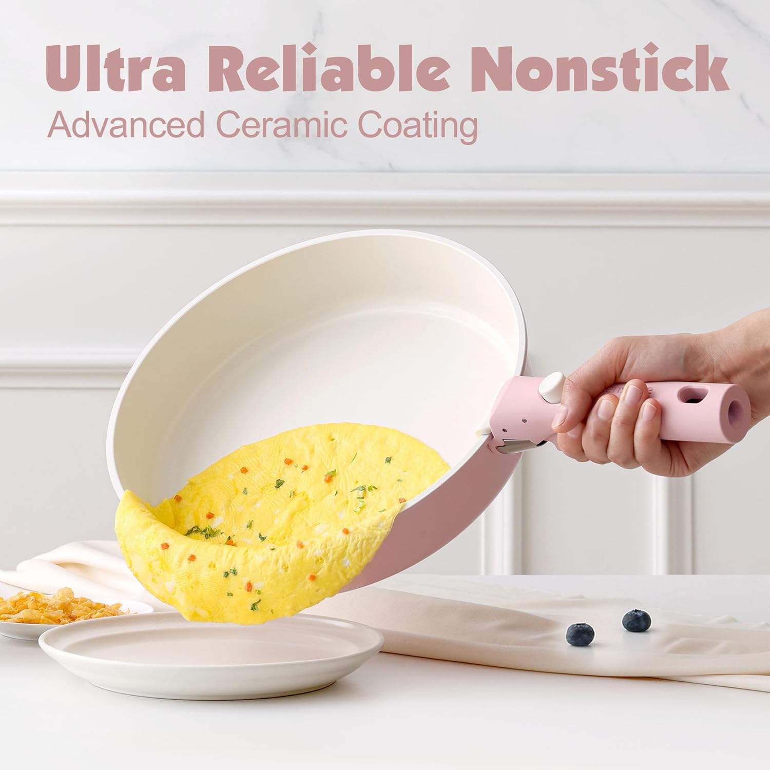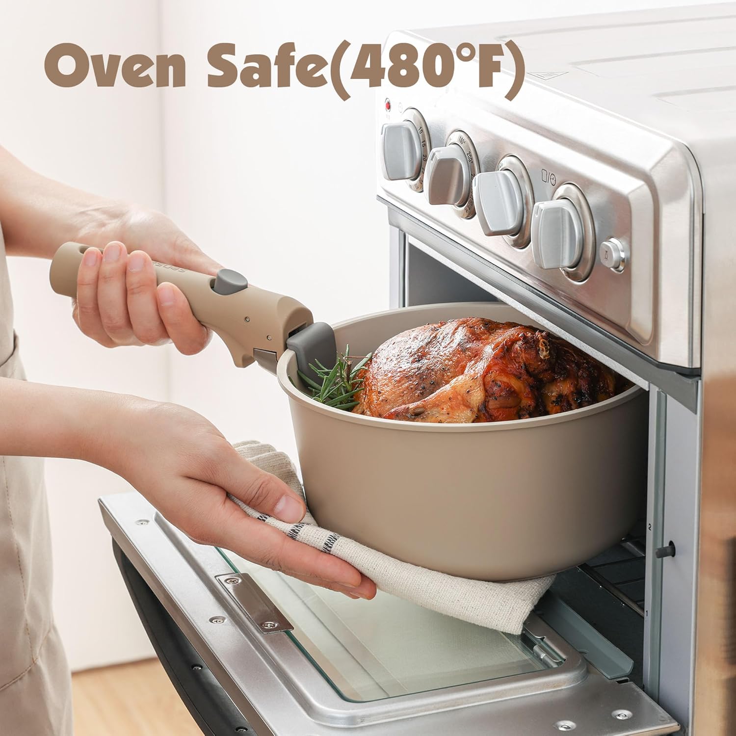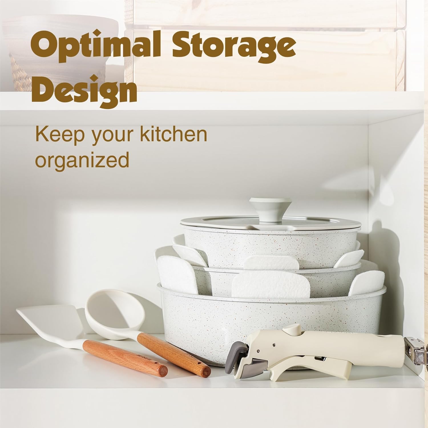SENSARTE 17 Piece Non-Stick Granite Pan Set with Removable Handles Induction Frying Pan 20/26cm Saucepans 16.5/20cm Wok 26cm Grill Pans 26cm Stackable