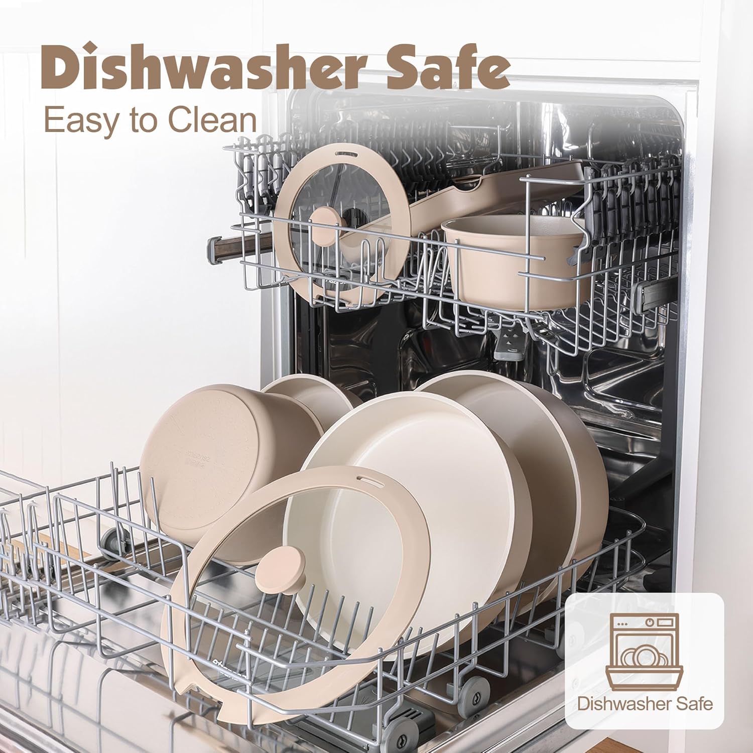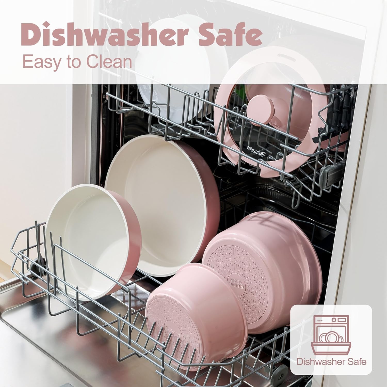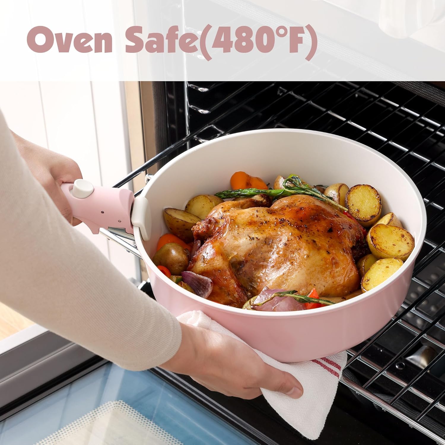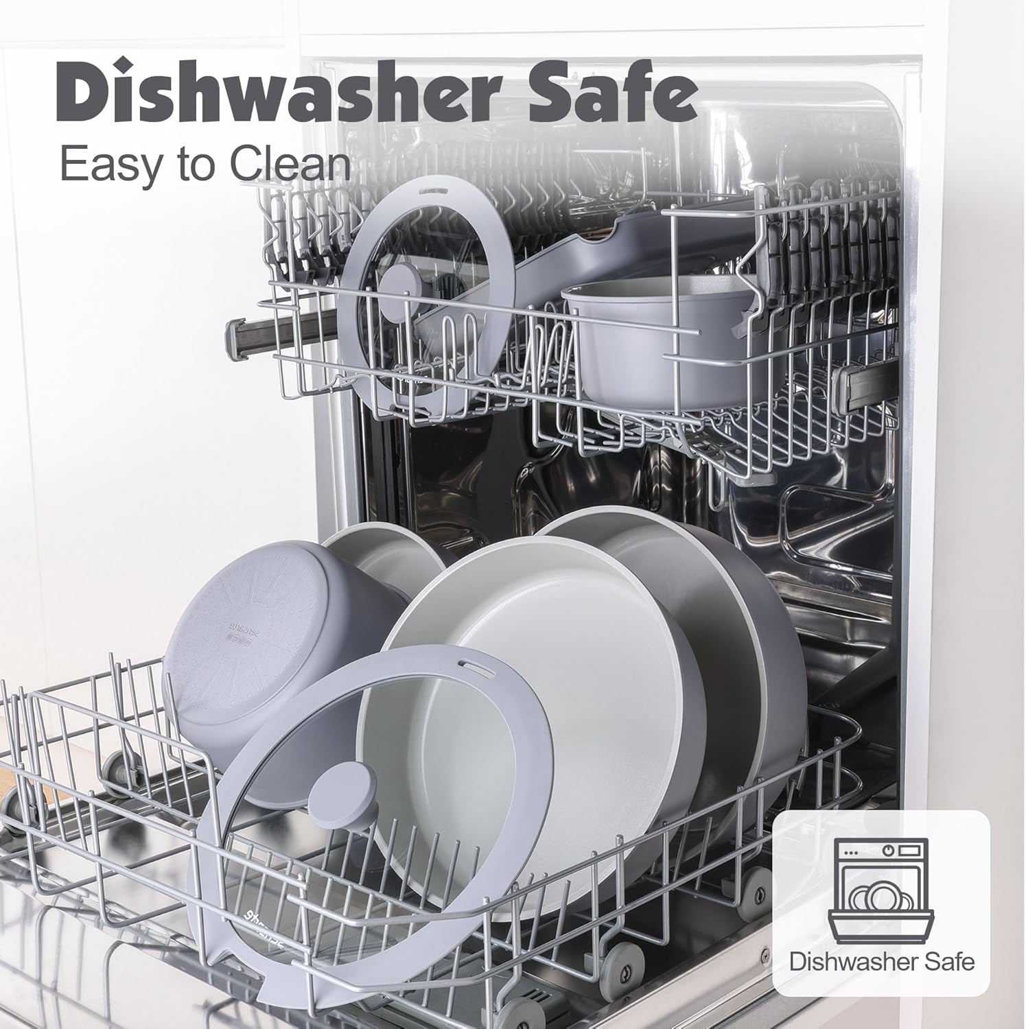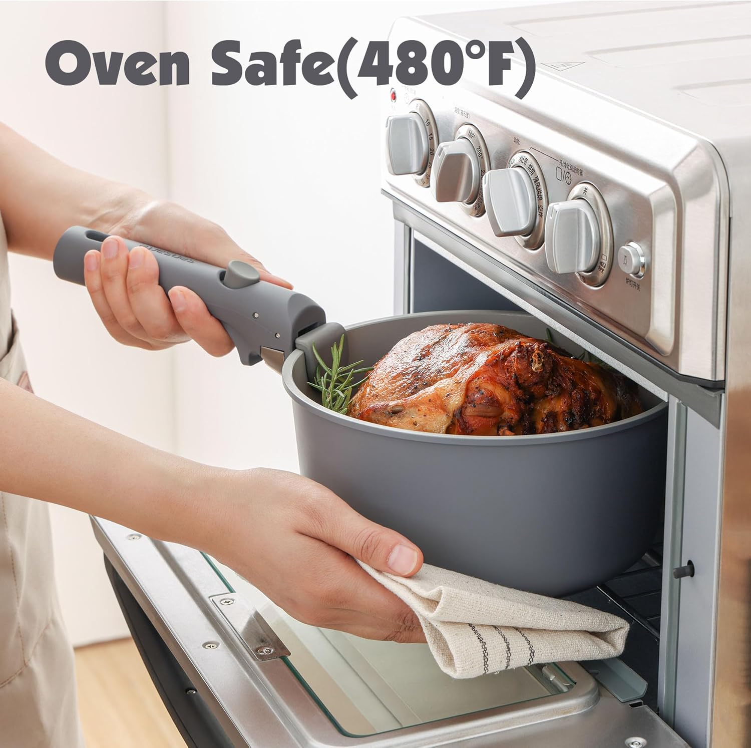 SENSARTE 17 Piece Non-Stick Granite Pan Set with Removable Handles Induction Frying Pan 20/26cm Saucepans 16.5/20cm Wok 26cm Grill Pans 26cm Stackable