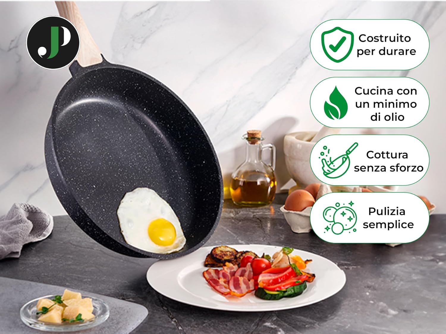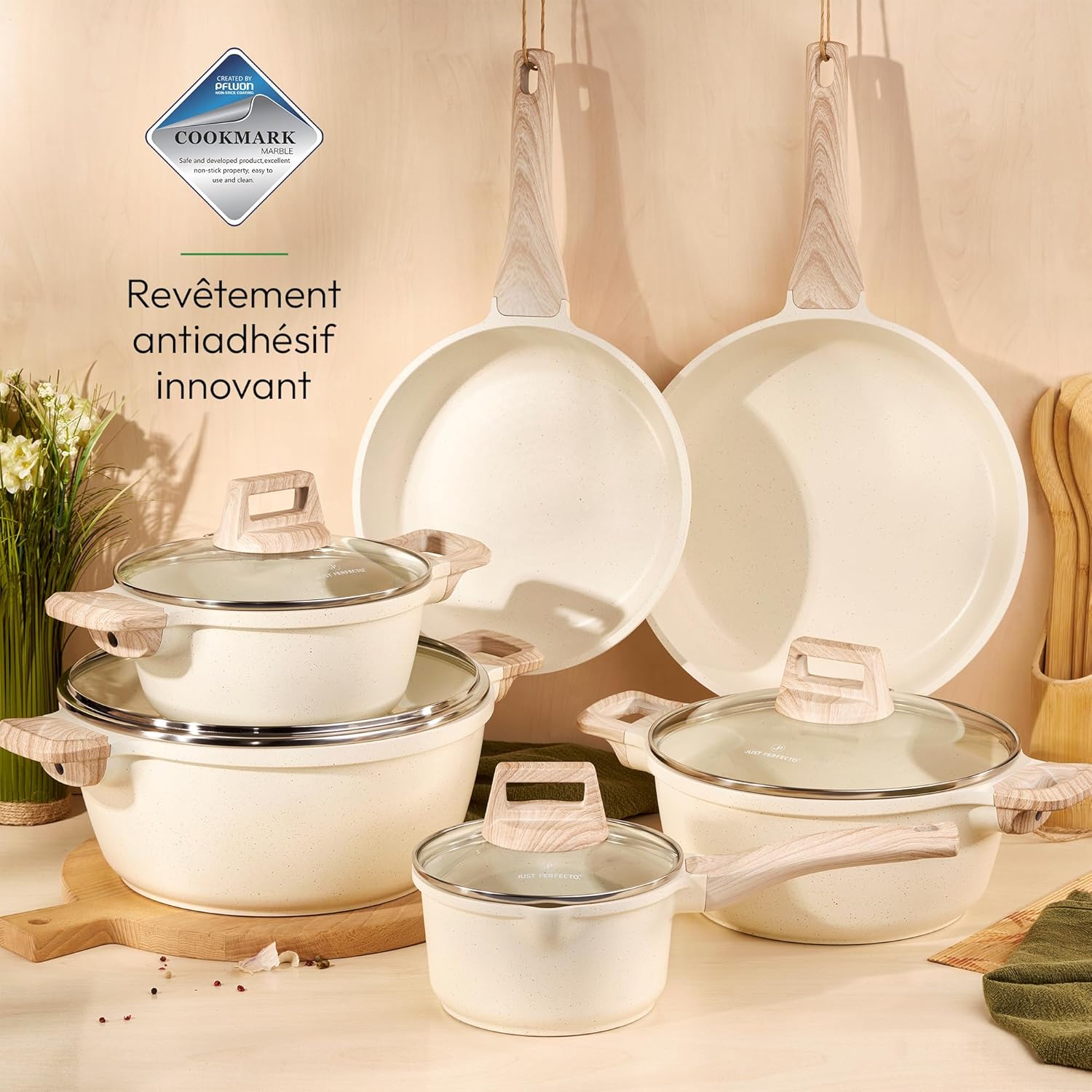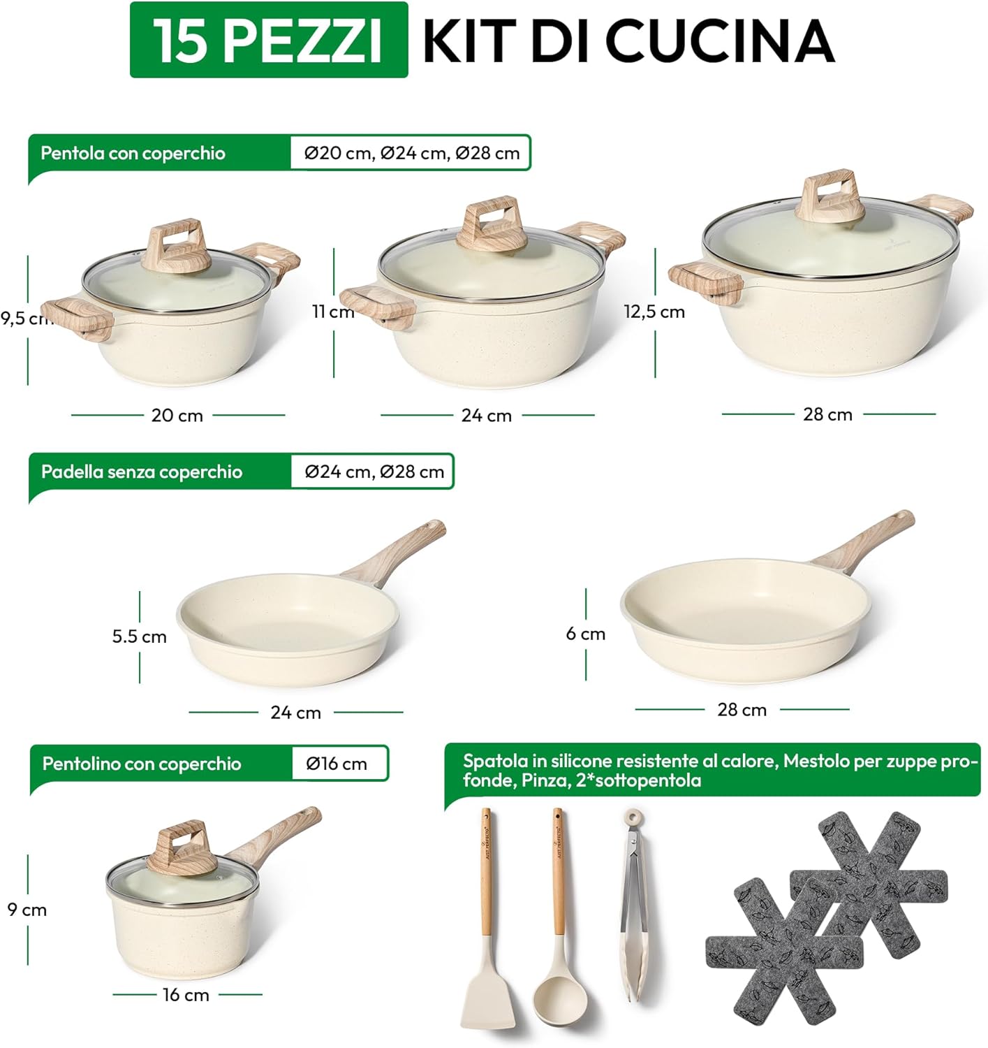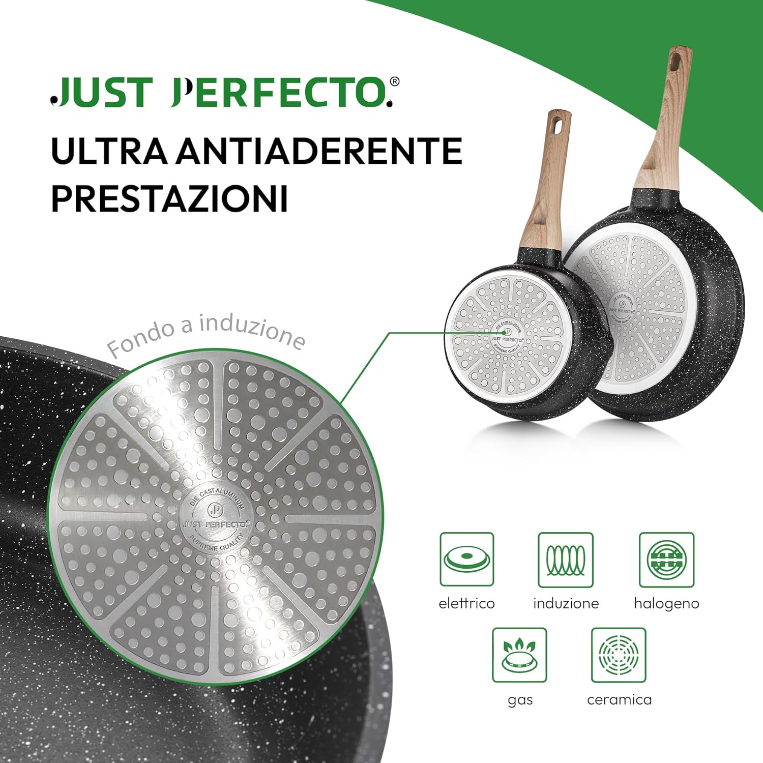 Just Perfect 15 Induction Cookware Set of Pans and Pans Non-Stick for All Hobs Non-Stick Cookware Set 24/28 cm with Lids Set of Induction PFOA and PTFE Free