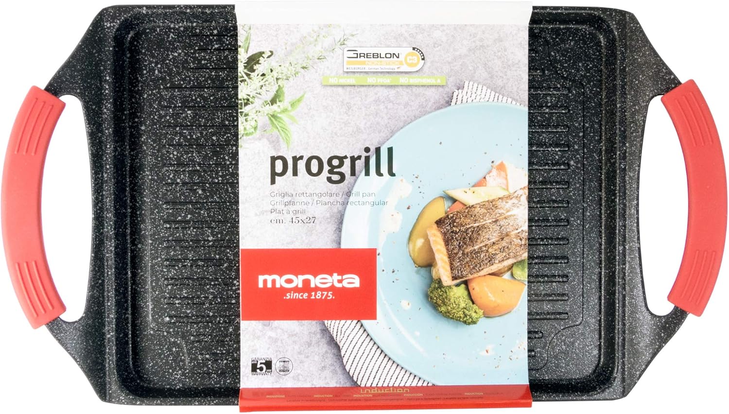 Moneta Rectangular Non-Stick Grill 45 x 27 cm Pro Grill Also for Induction