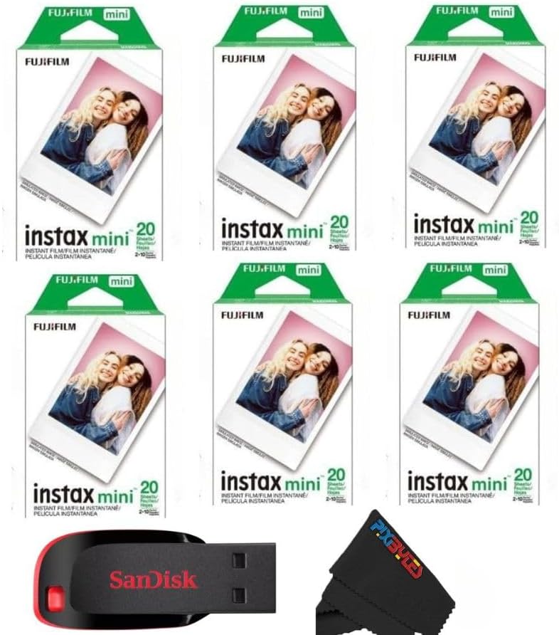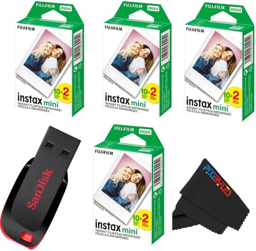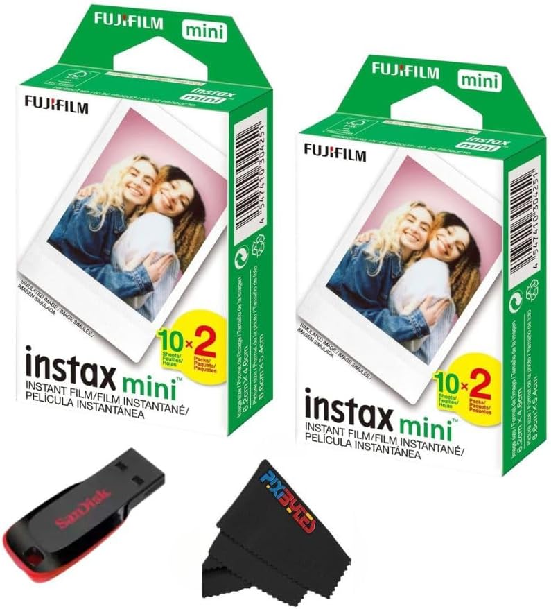 Fujifilm Instax Mini Instant Daylight Film for Instant Camera with USB and PixiBytes Microfiber Cleaning Cloth... (2 x Twin Packs + USB)