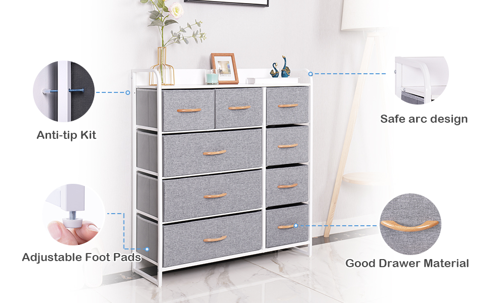 LYNCOHOME Cassettiera in tessuto cationico con 9 cassetti, per camera da letto, soggiorno, armadio, contenitori in tessuto facile da tirare e parte superiore in legno, comò in tessuto (grigio neve) : Amazon.it: Casa e cucina