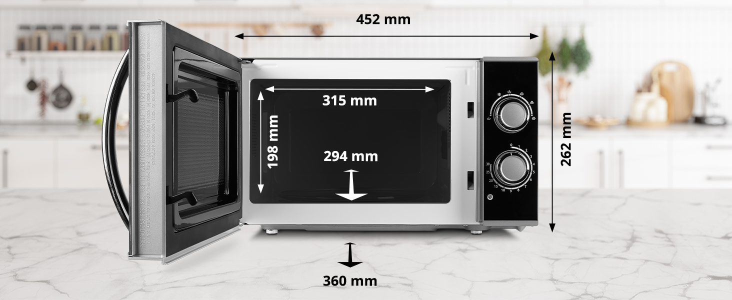 Con 700 watt, riscalda cibi o bevande in pochi secondi. I pasti vengono riscaldati da tutti i lati in pochi minuti.