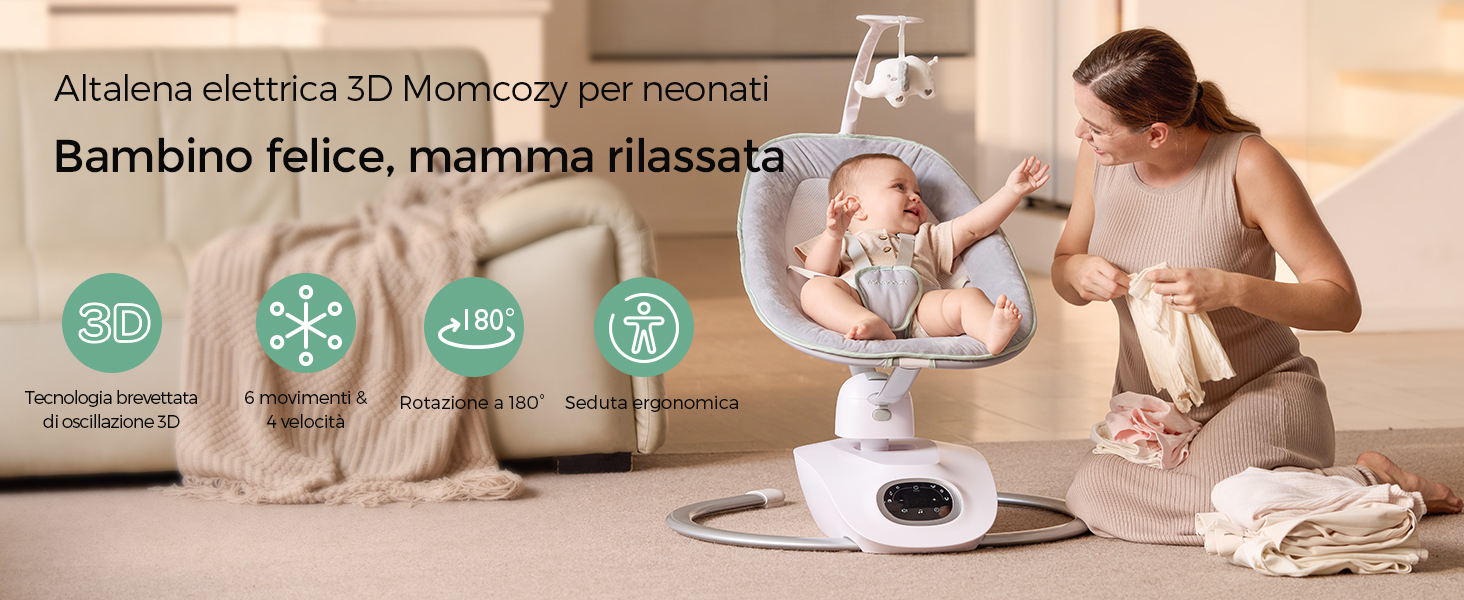 Momcozy CocoSway Altalena Elettrica per Neonati e Bambini, Movimento 3D con 6 Modalità e 4 Velocità, Telecomando, 8 Ninne Nanne Preimpostate, Fino a 9 kg : Amazon.it: Prima infanzia