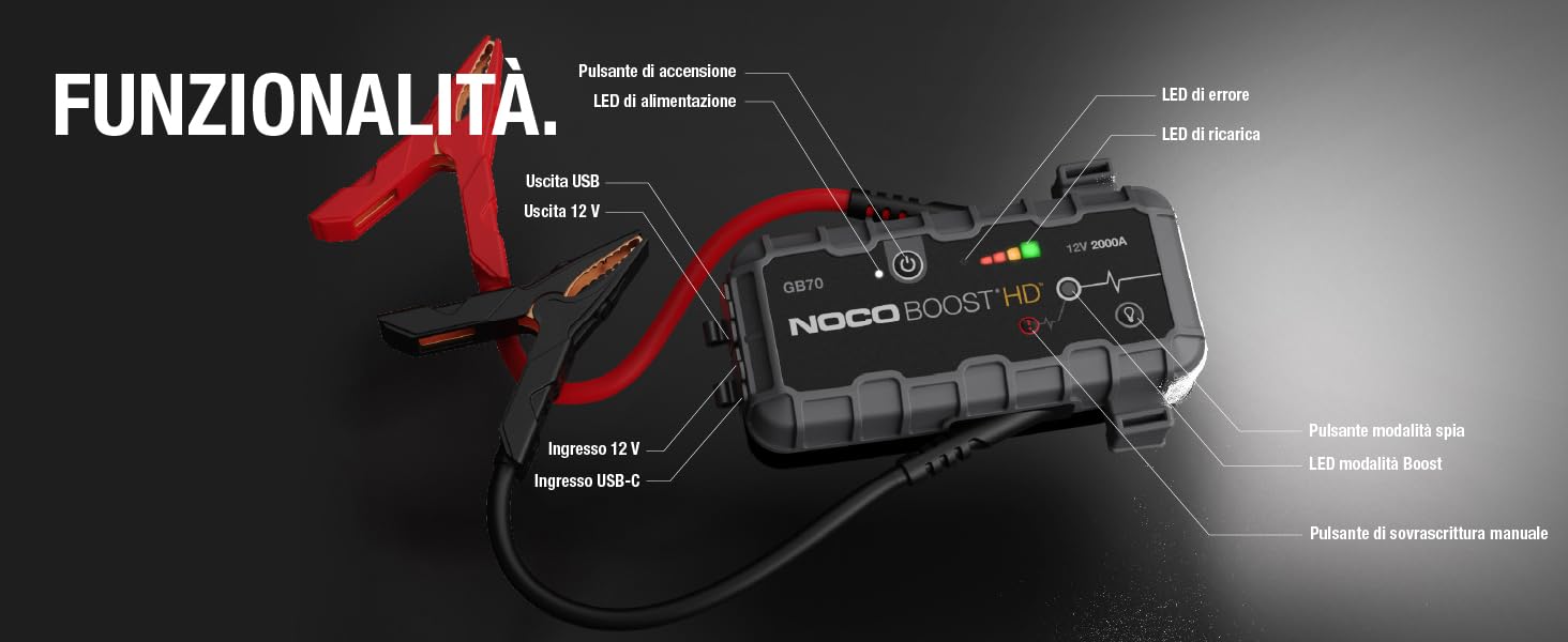 NOCO Boost GB70: Avviatore di Emergenza al Litio UltraSafe da 2000A 12V per Veicoli con Motori a Benzina fino a 8,0 Litri e Diesel fino a 6,0 Litri : Amazon.it: Auto e Moto